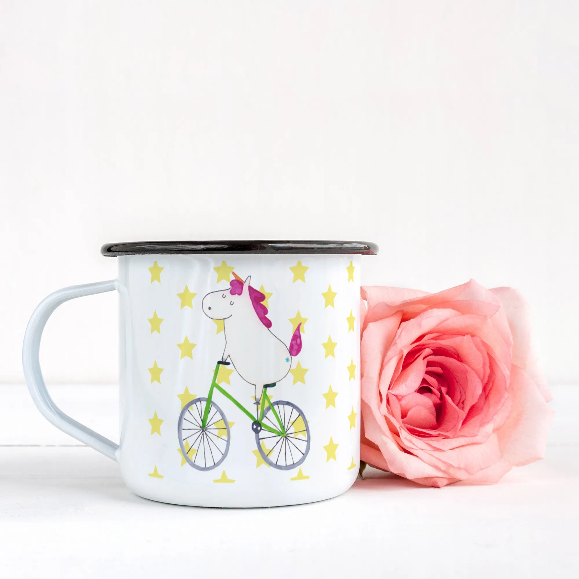 Ideal for lovers of unicorns, cycling enthusiasts, or anyone who appreciates a little sparkle and joy in their day, this cup is a charming addition to anyone's collection. Crafted from durable enamel, this coffee cup is both lightweight and sturdy, making it a fantastic companion for camping trips, outdoor adventures, or even cozy evenings at home.