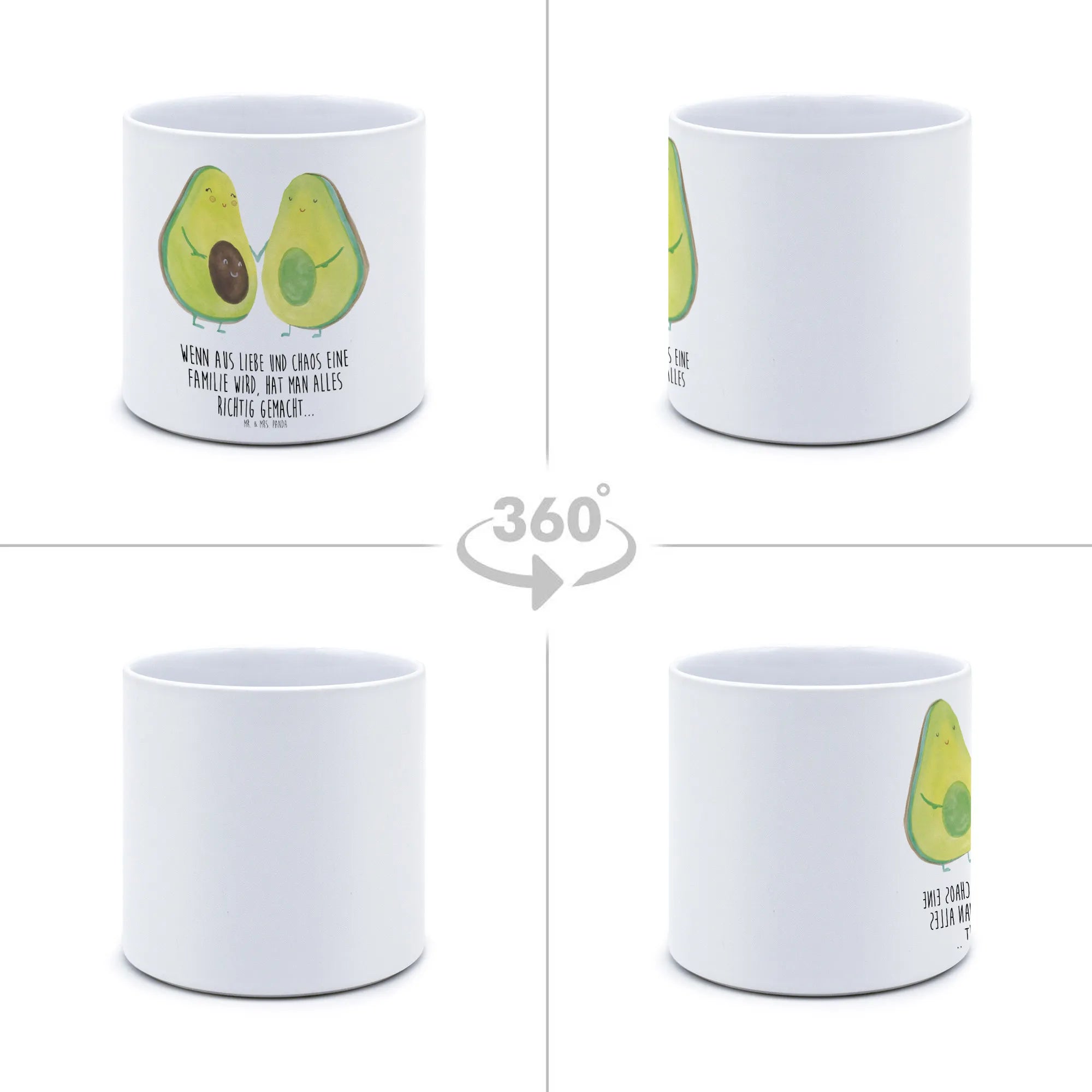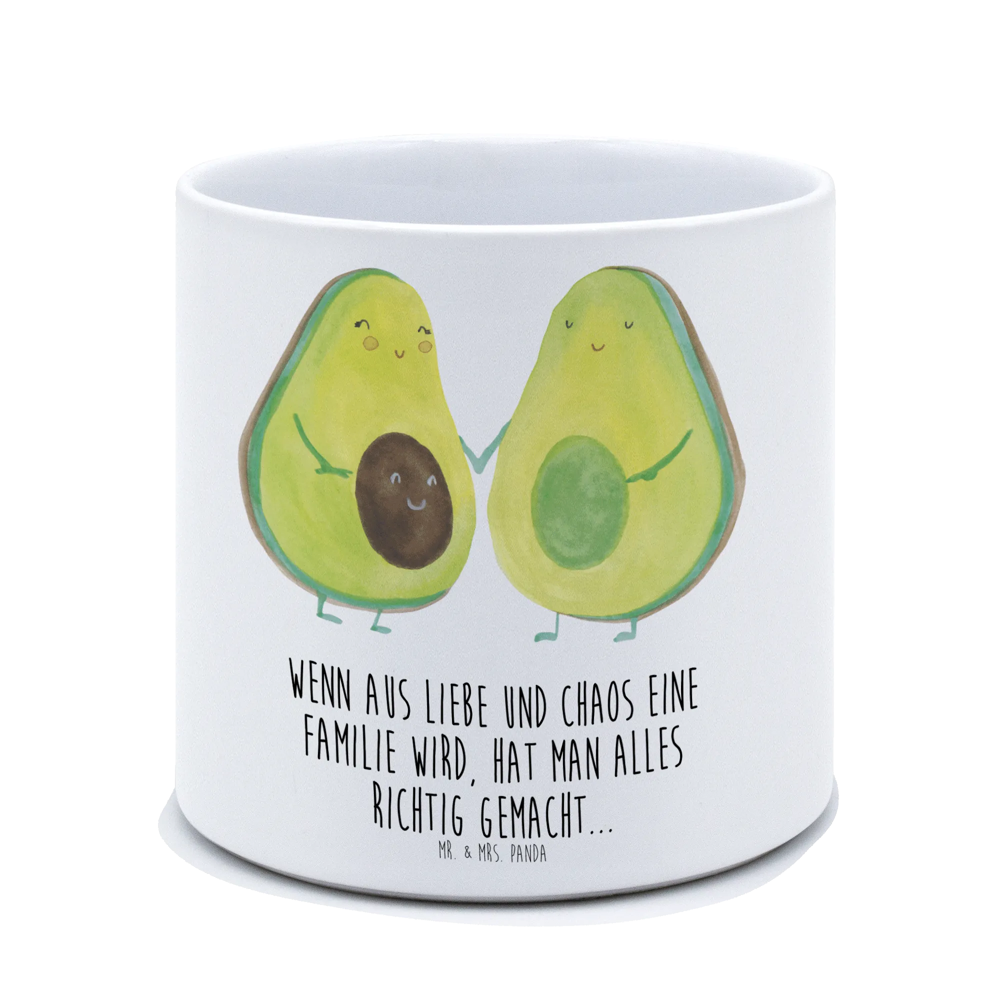The Avocado collection by Mr. & Mrs. Panda is filled with optimism and charm, perfect for adding vibrant touches to any living space. With the quote "This family is built on chaos and love. That's why it’s perfect." you can express the essence of family life in a beautiful way. Each product in the collection is hand-drawn with love, ensuring a unique item that resonates from the moment it arrives in your home. Don’t miss out on the chance to spread joy and nurture growth, both in plants and in hearts! Celebrate life, love, and laughter with the Avocado Couple XL Flower Pot today!