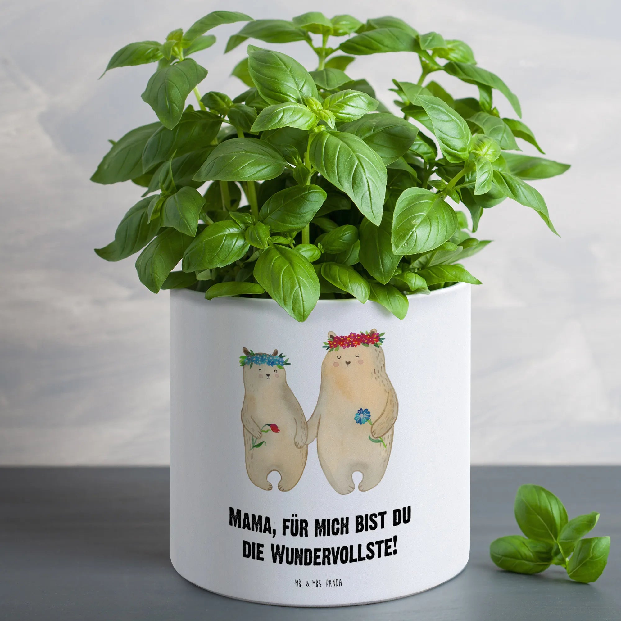Entdecke den zauberhaften XL Blumentopf "Bären mit Blumenkranz" aus der liebevollen Familie Kollektion von Mr. & Mrs. Panda! Dieser beeindruckende Blumentopf ist nicht nur ein echter Hingucker, sondern auch das perfekte Geschenk für Mama und all deine Lieben an besonderen Anlässen wie dem Muttertag oder einfach nur, um Danke zu sagen. Die liebevoll gestalteten Bären, die fröhlich mit bunten Blumenkränzen geschmückt sind, stehen für die Wärme und Verbundenheit innerhalb deiner Familie.
