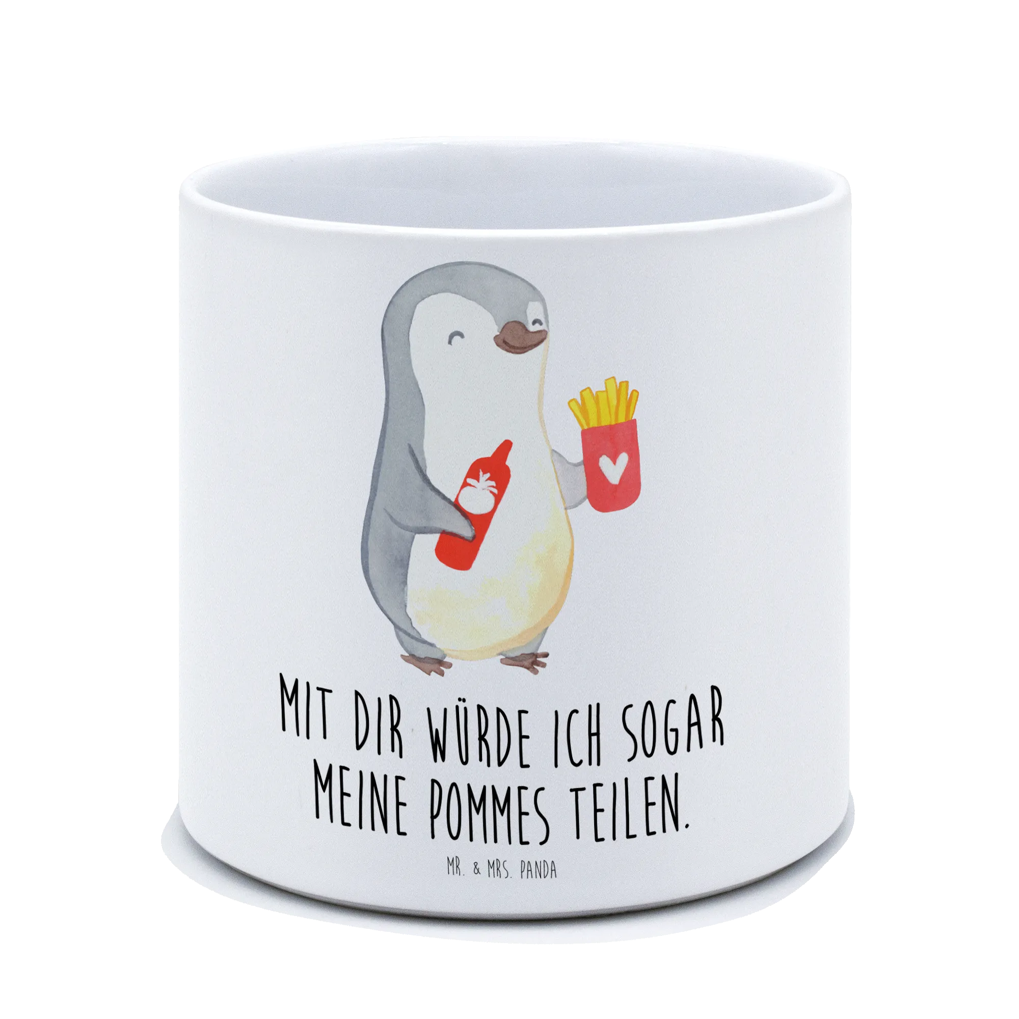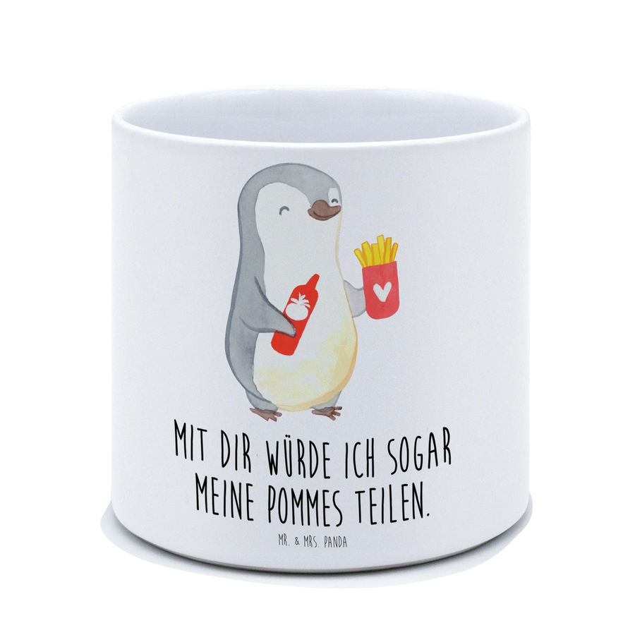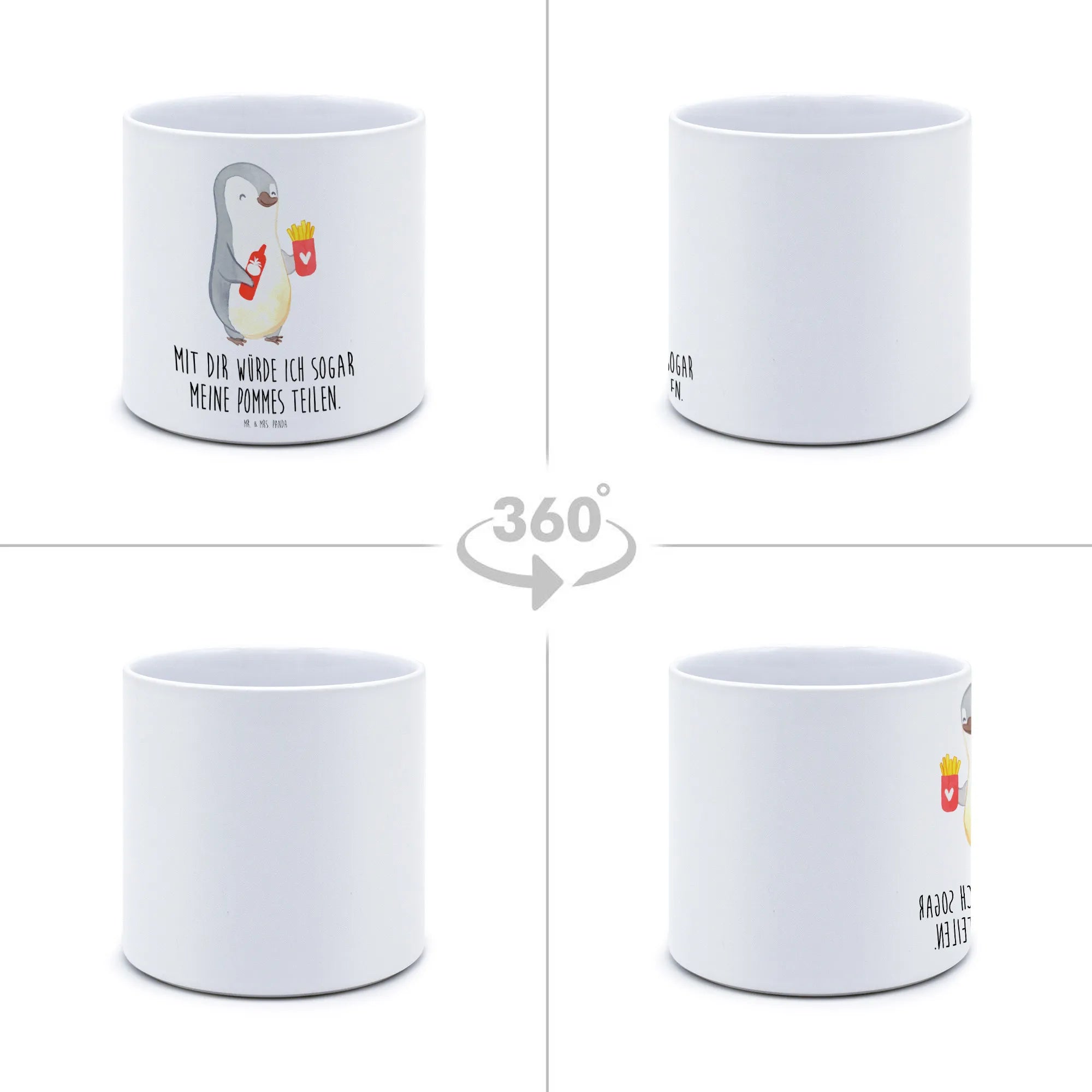Meet our charming penguin, the ultimate ambassador of sharing joy! With a joyful heart, he clutches a cup of fries while balancing a ketchup bottle, bringing a cheerful vibe to any space. The slogan 'Mit dir würde ich sogar meine Pommes teilen' encapsulates the spirit of love and togetherness in the most whimsical way. This lovely motif makes a terrific gift for Valentine’s Day or an anniversary celebration, reminding us how special those small, shared moments can be. Each glance at this penguin will warm your heart and evoke the happiness of serving fries together on cozy date nights. It’s an adorable way to show appreciation for your partner, bringing a smile with every reminder of sweet connections.