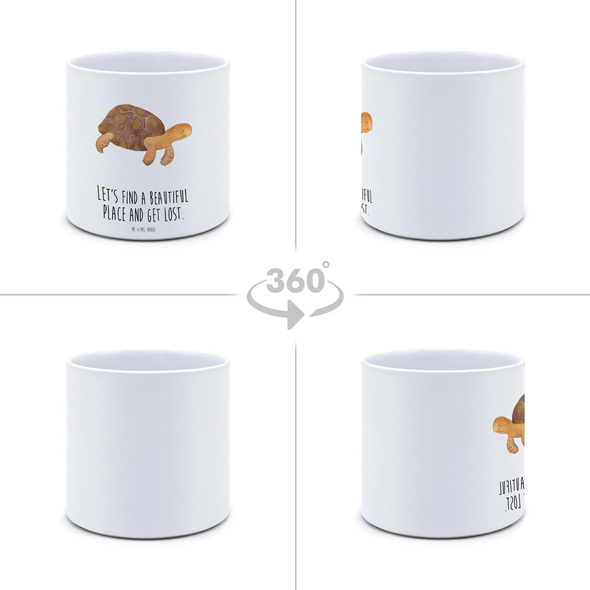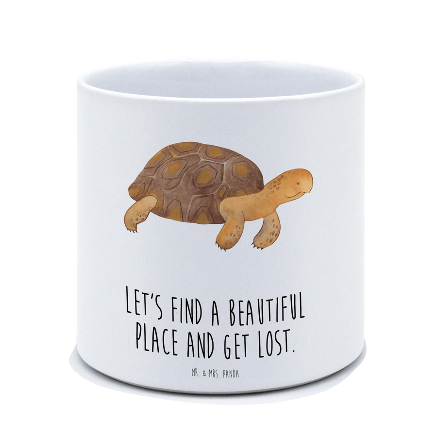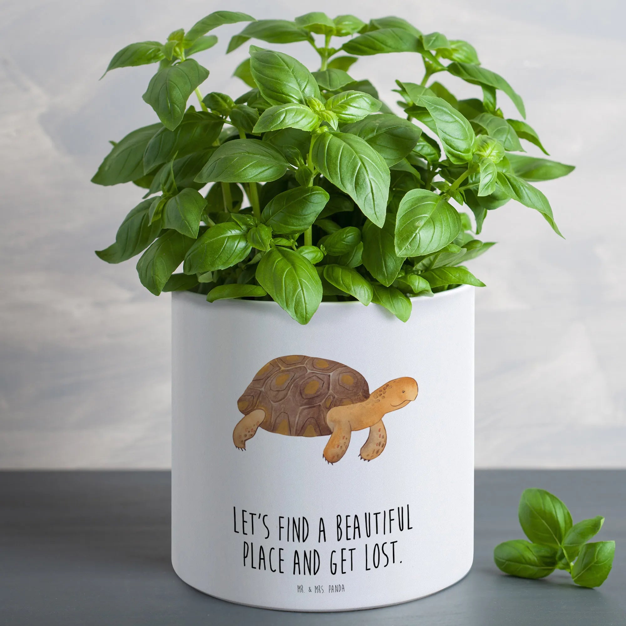 The design showcases a sweet turtle marching through life with grace and style. With its vibrant brown shell embellished with cheerful yellow patterns, it's sure to catch the eye of any sea creature lover. This pot embodies the spirit of adventure and wanderlust—just like our friendly turtle who invites you to "Let's find a beautiful place and get lost," making it a wonderful conversation starter for guests!