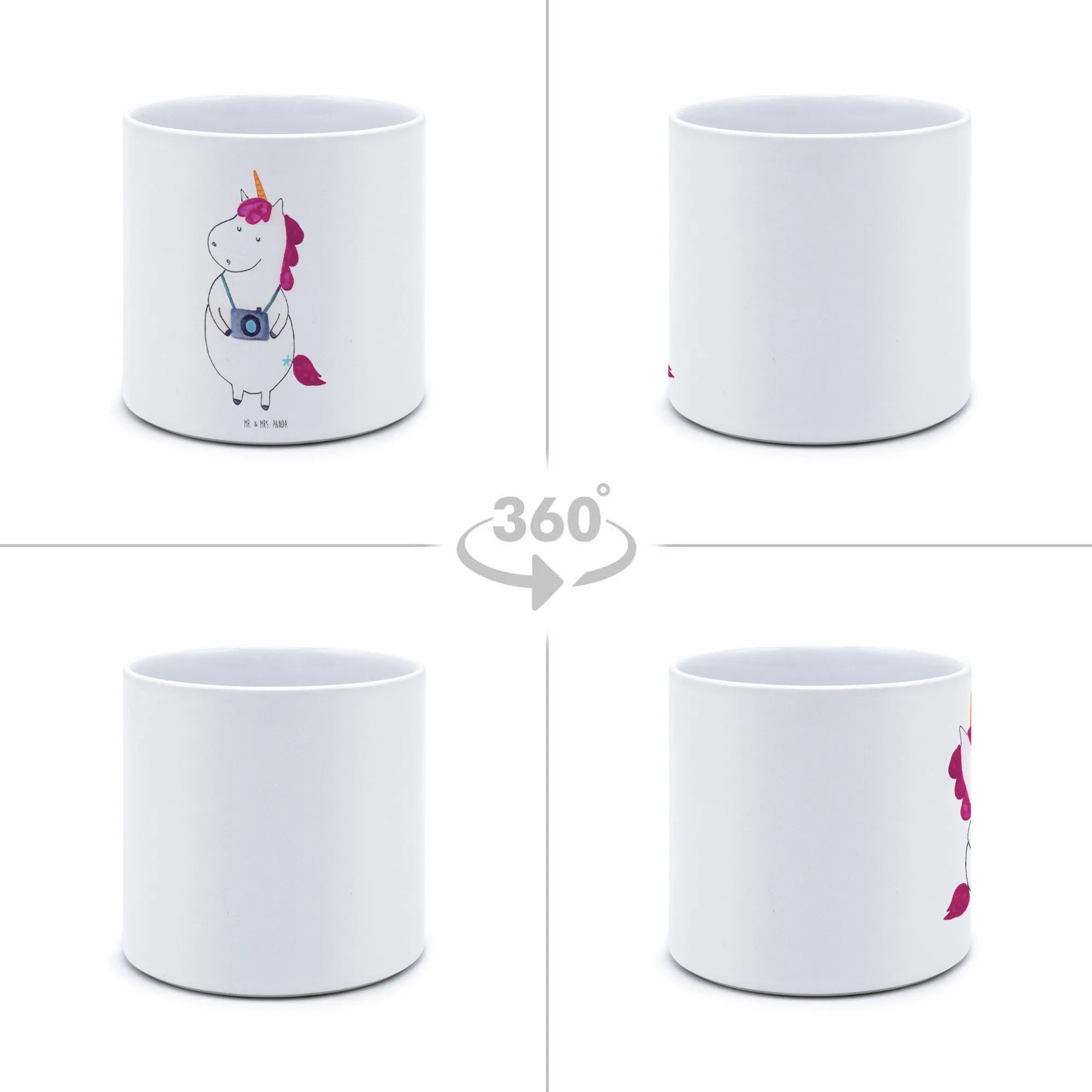 If you’re in search of a delightful gift for the photography enthusiast in your life, look no further than the XL flower pot featuring the enchanting Unicorn Photographer design from the beloved Unicorn Collection by Mr. & Mrs. Panda. This charming ceramic pot is not just a standard planter; it’s a heartfelt nod to those who live for adventure, capturing beautiful moments across the globe.