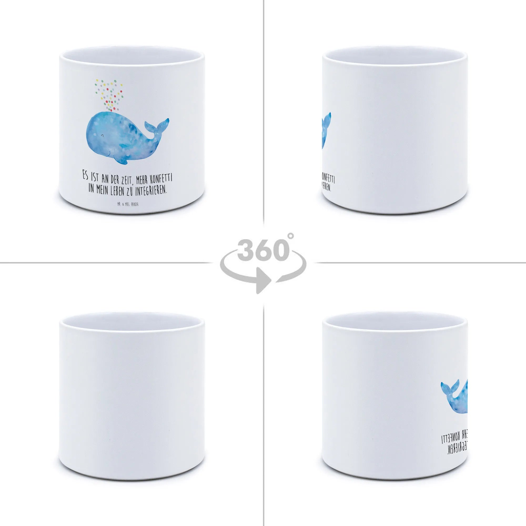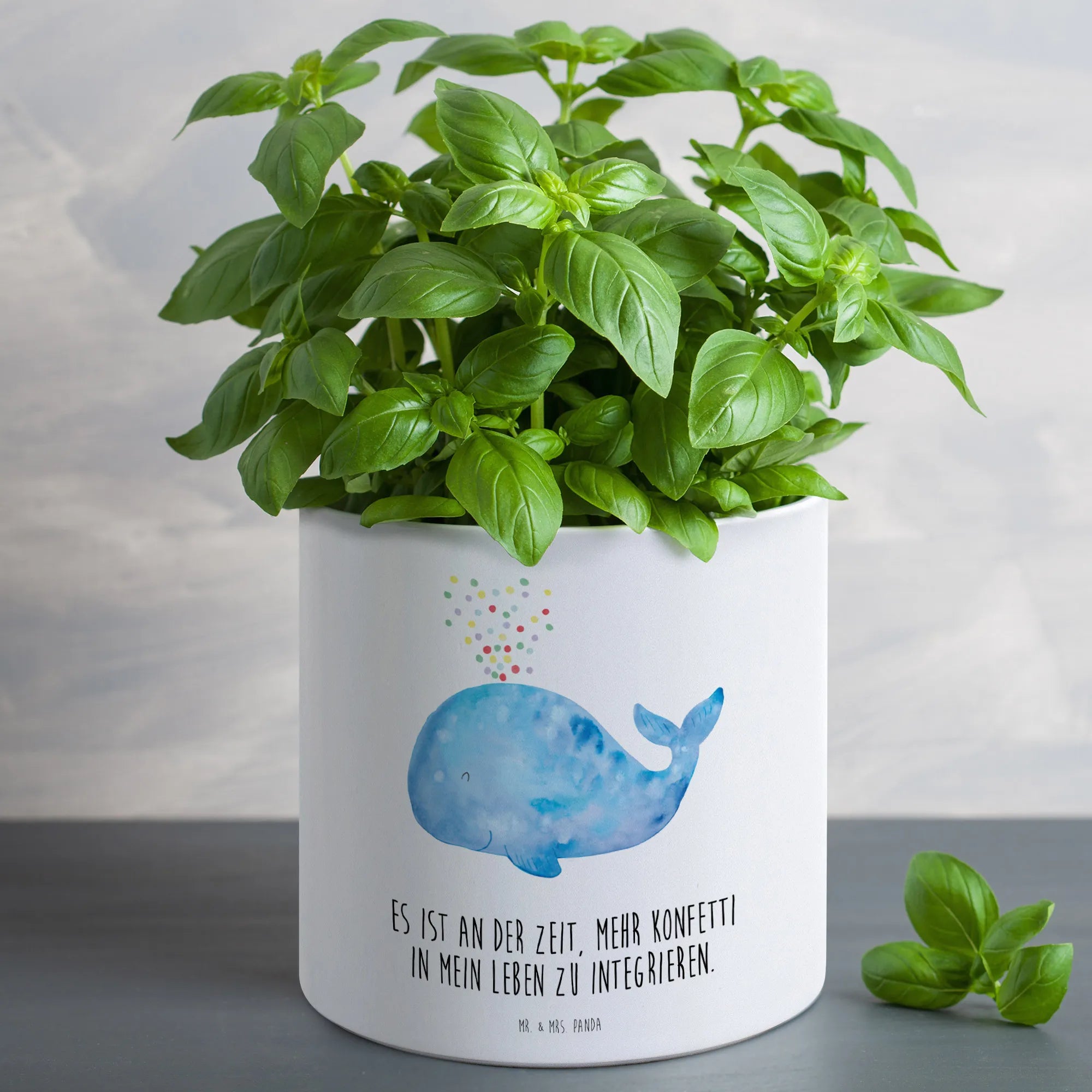 In a world brimming with stress, give yourself or a loved one the gift of joy—a gift that reminds us of the beauty of nature and the importance of nurturing our passions. So go ahead, add a splash of color and a dash of fun to your home with our whale confetti XL flower pot from Mr. & Mrs. Panda's Marine Animals collection! Because it's time to integrate more confetti into our lives!