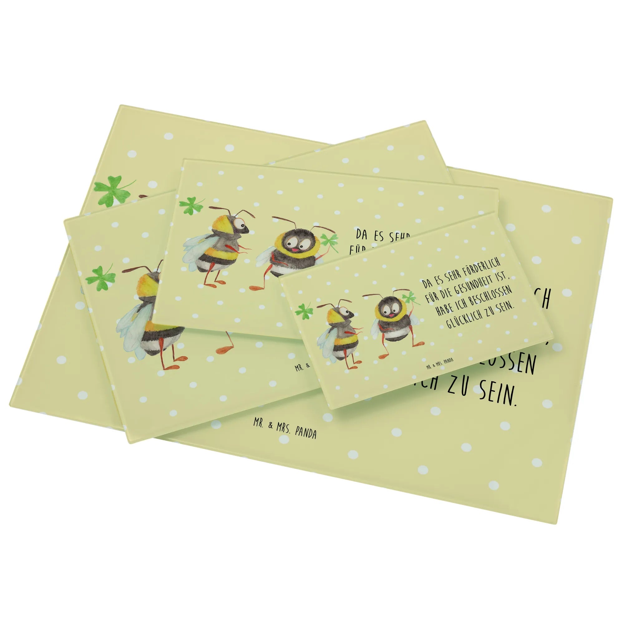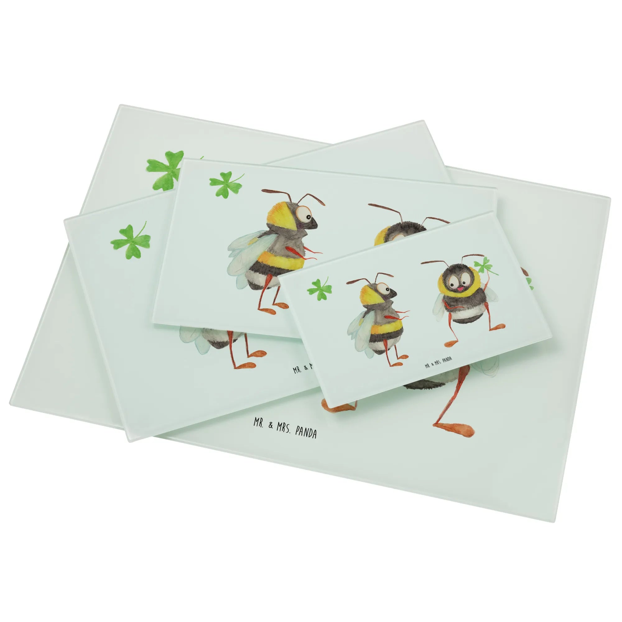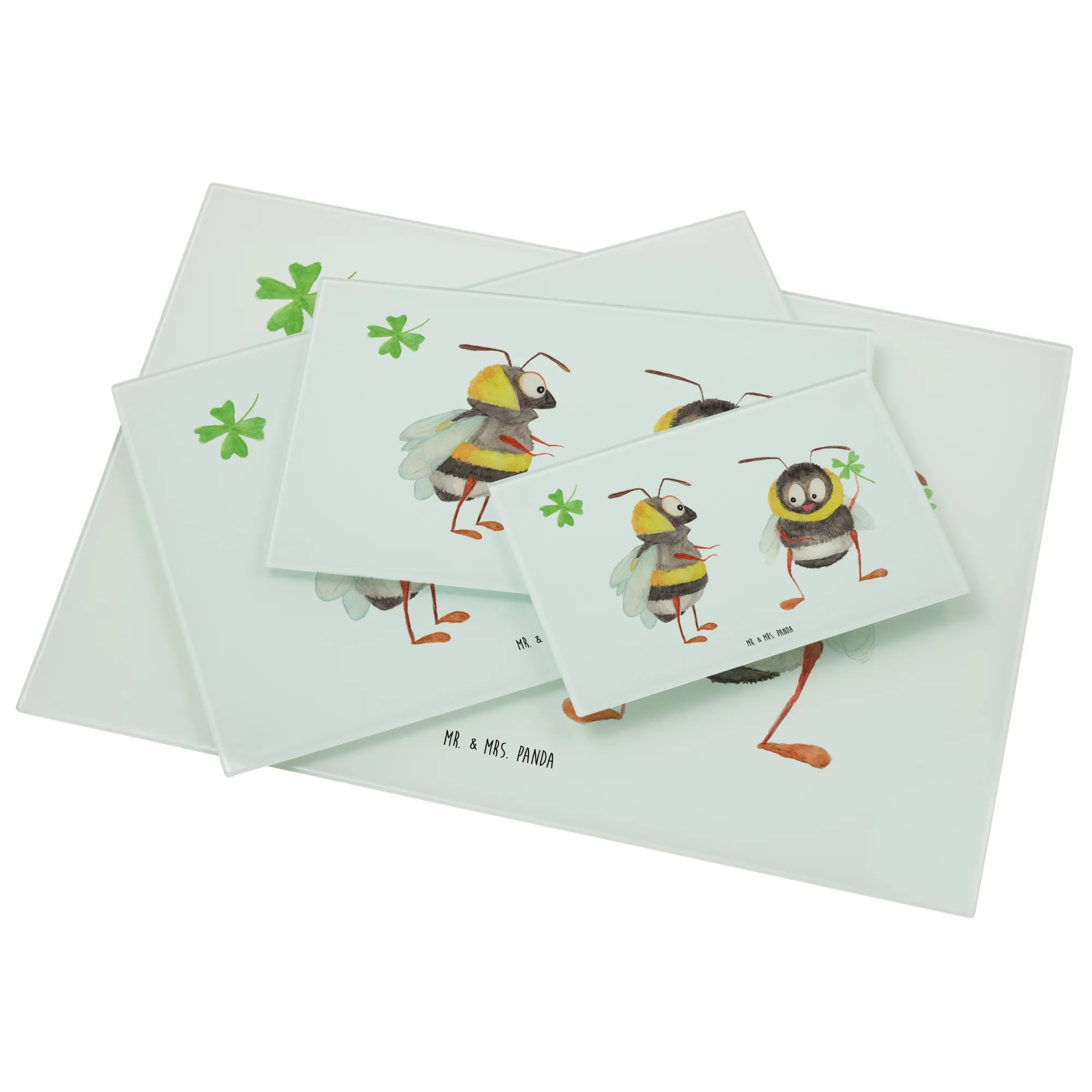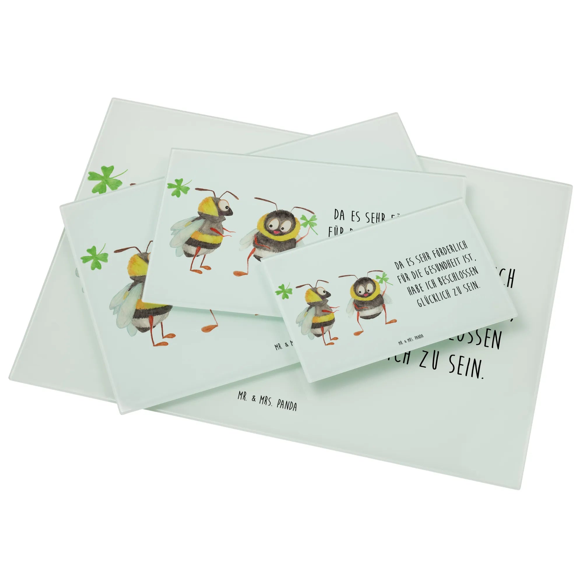 XL glass chopping board bumblebees shamrock - Medium Glass Cutting Board - with saying - White