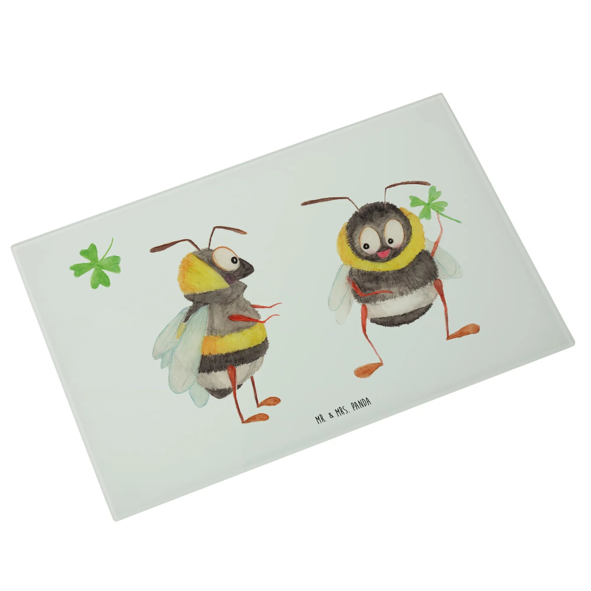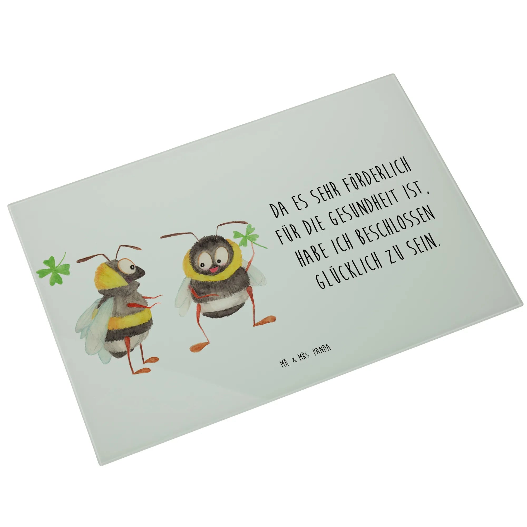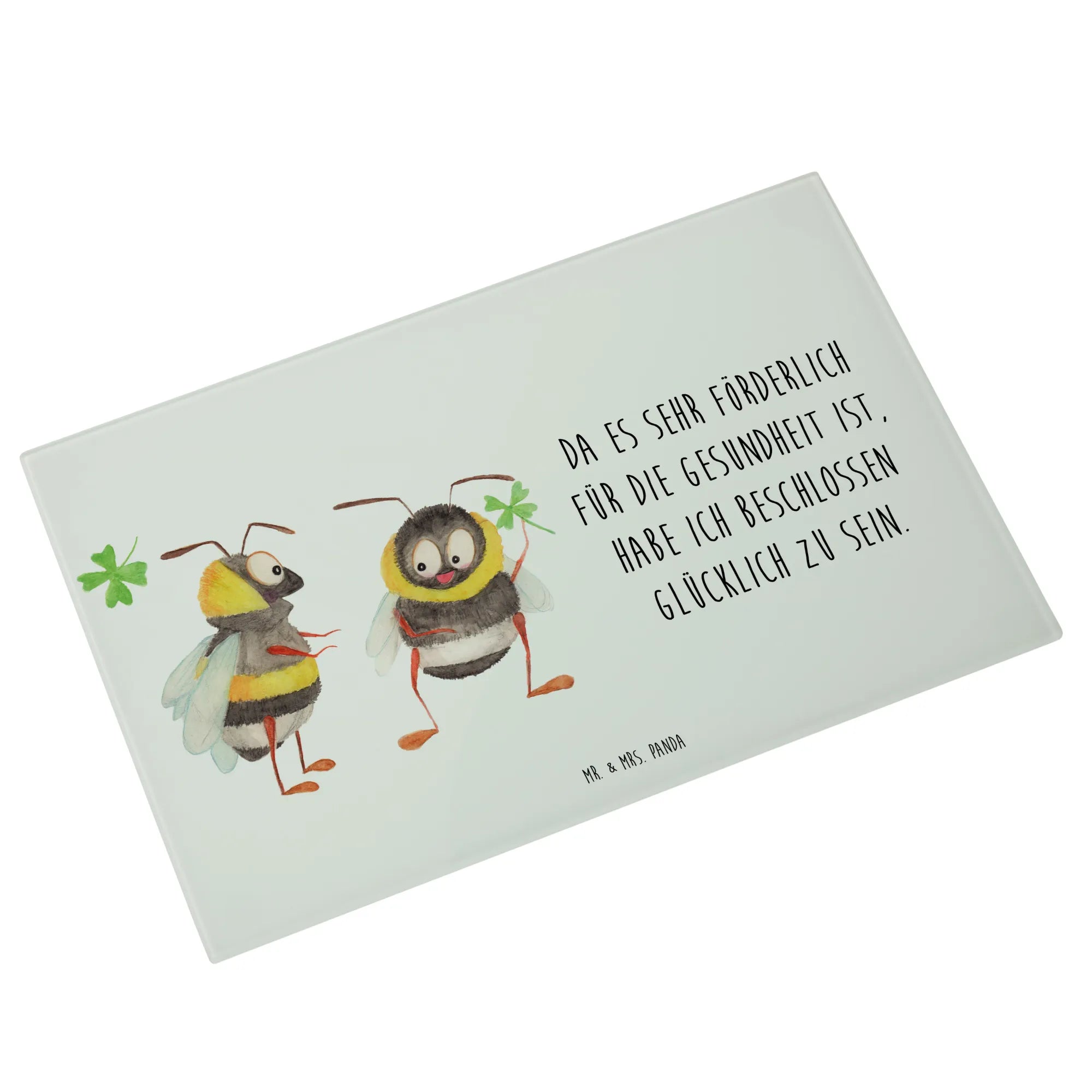 Crafted from premium, durable glass, this cutting board measures 11 inches by 8 inches, making it suitable for a variety of food prep tasks, from chopping vegetables to assembling charcuterie boards. Its striking illustration of two cute bumblebees cheerfully standing next to a clover adds a whimsical touch to your kitchen, serving as both a functional tool and a splendid decoration. The vibrant and cheerful colors of the design create a good mood atmosphere, perfect for those who resonate with positive sayings and the beauty of nature.
