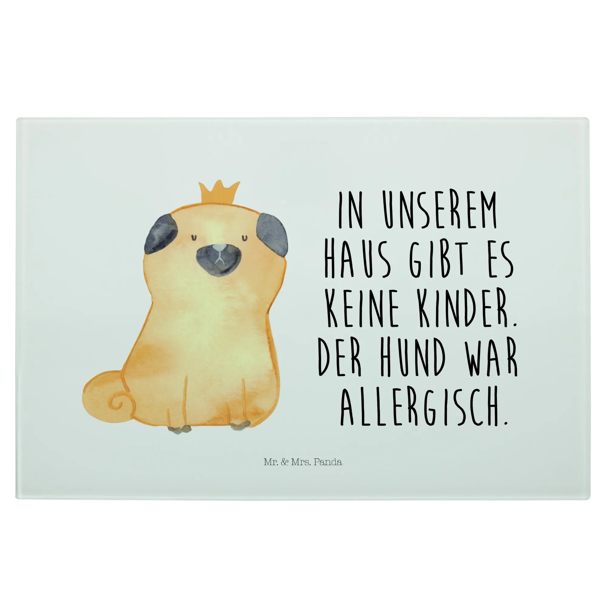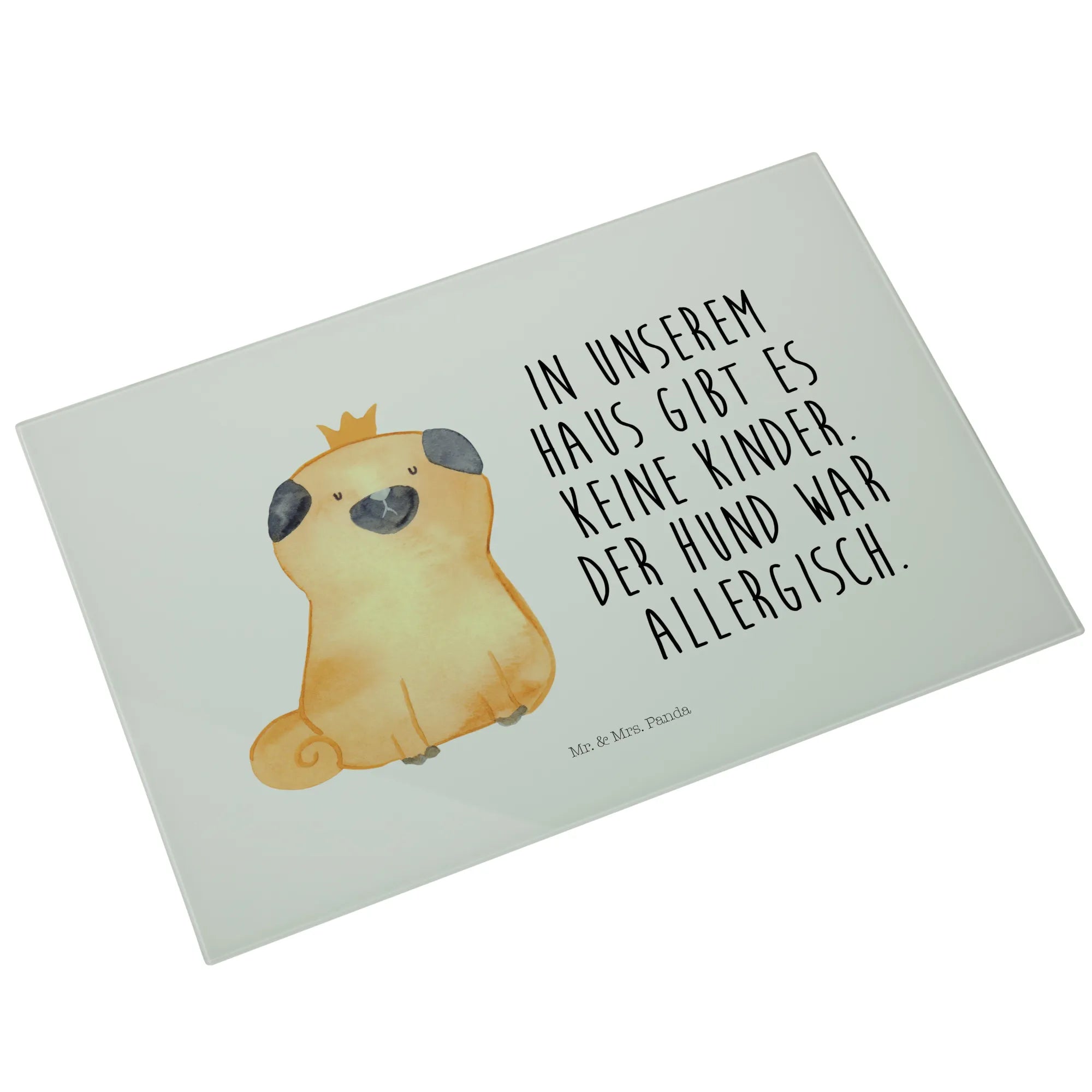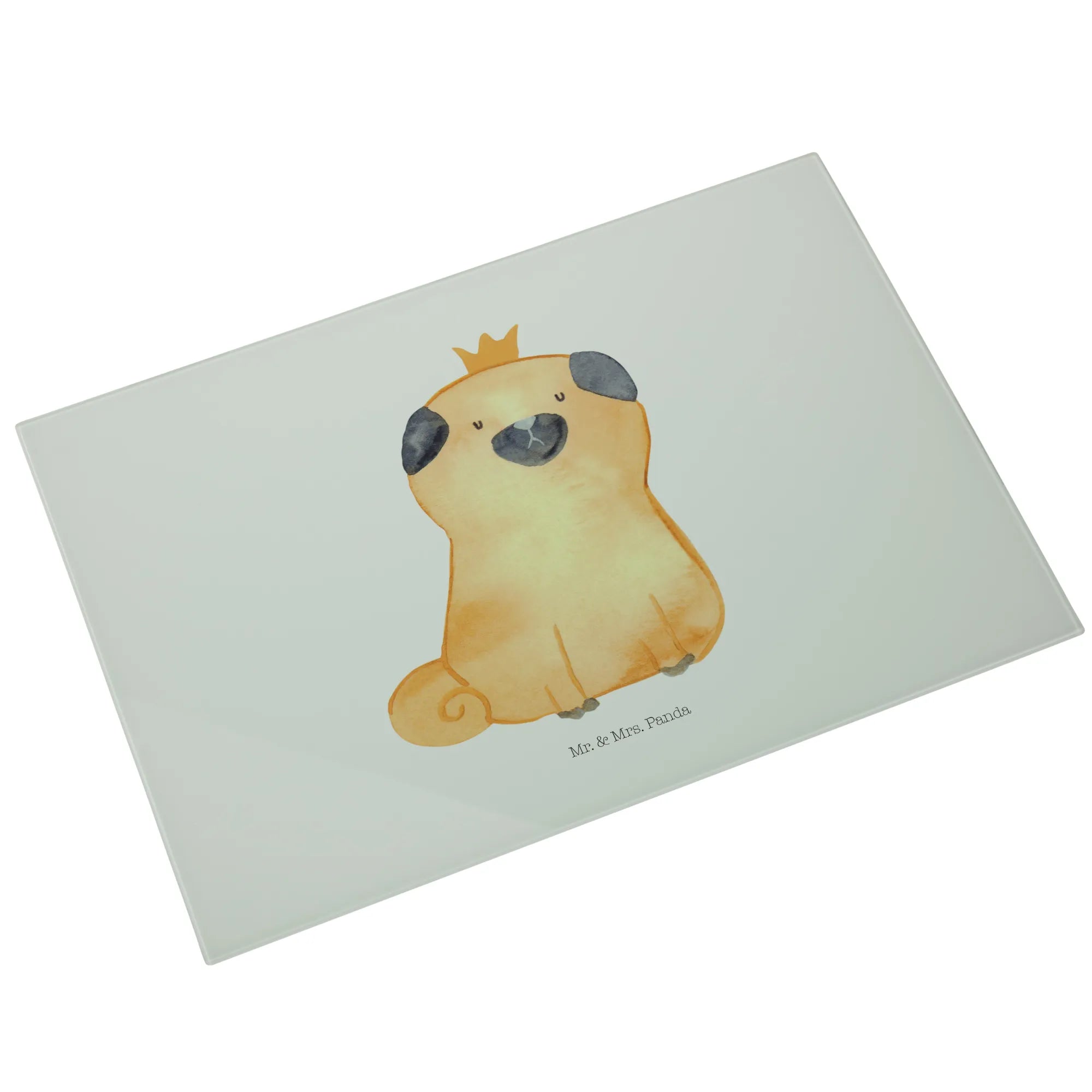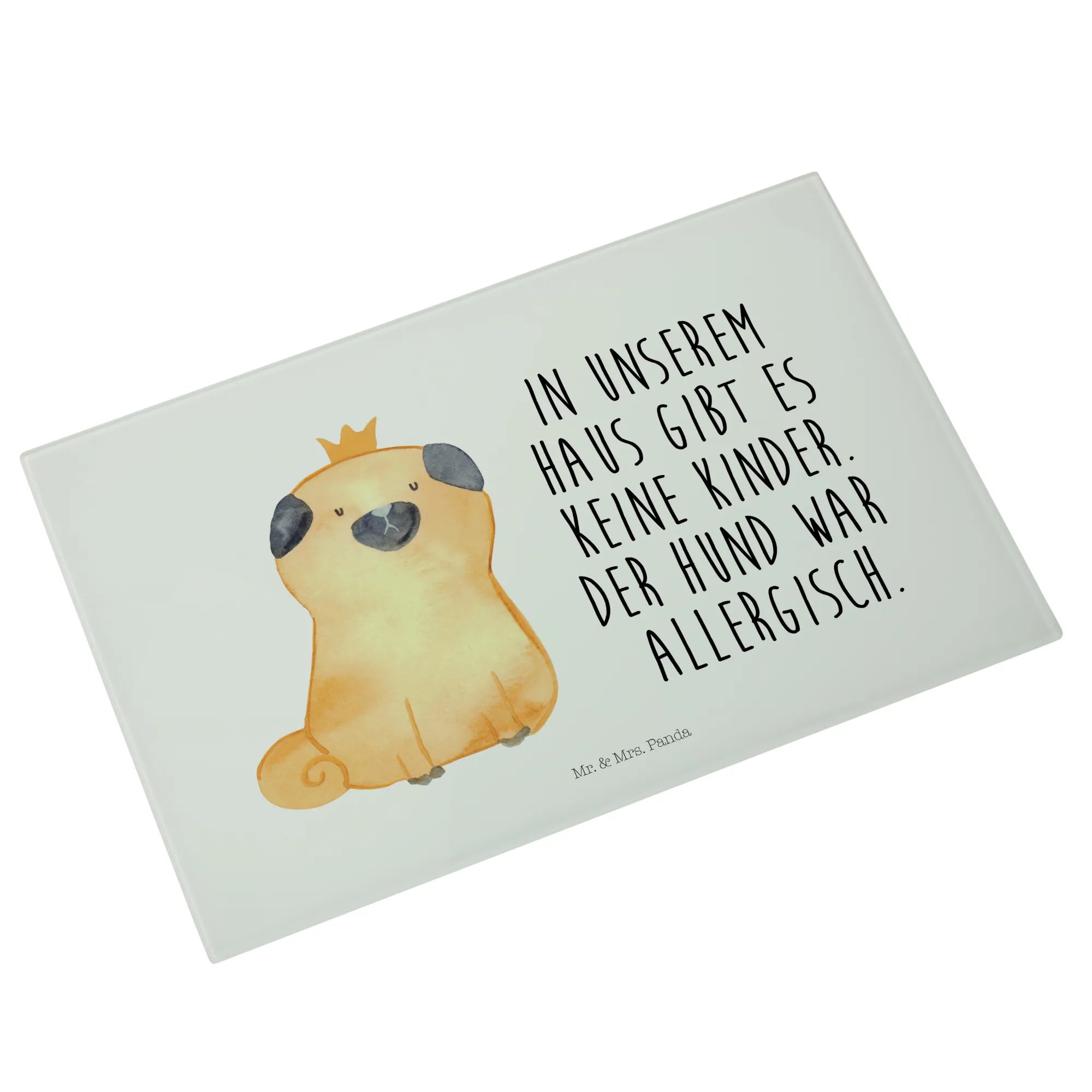 XL glass chopping board pug Crown - Medium Glass Cutting Board - with saying - White