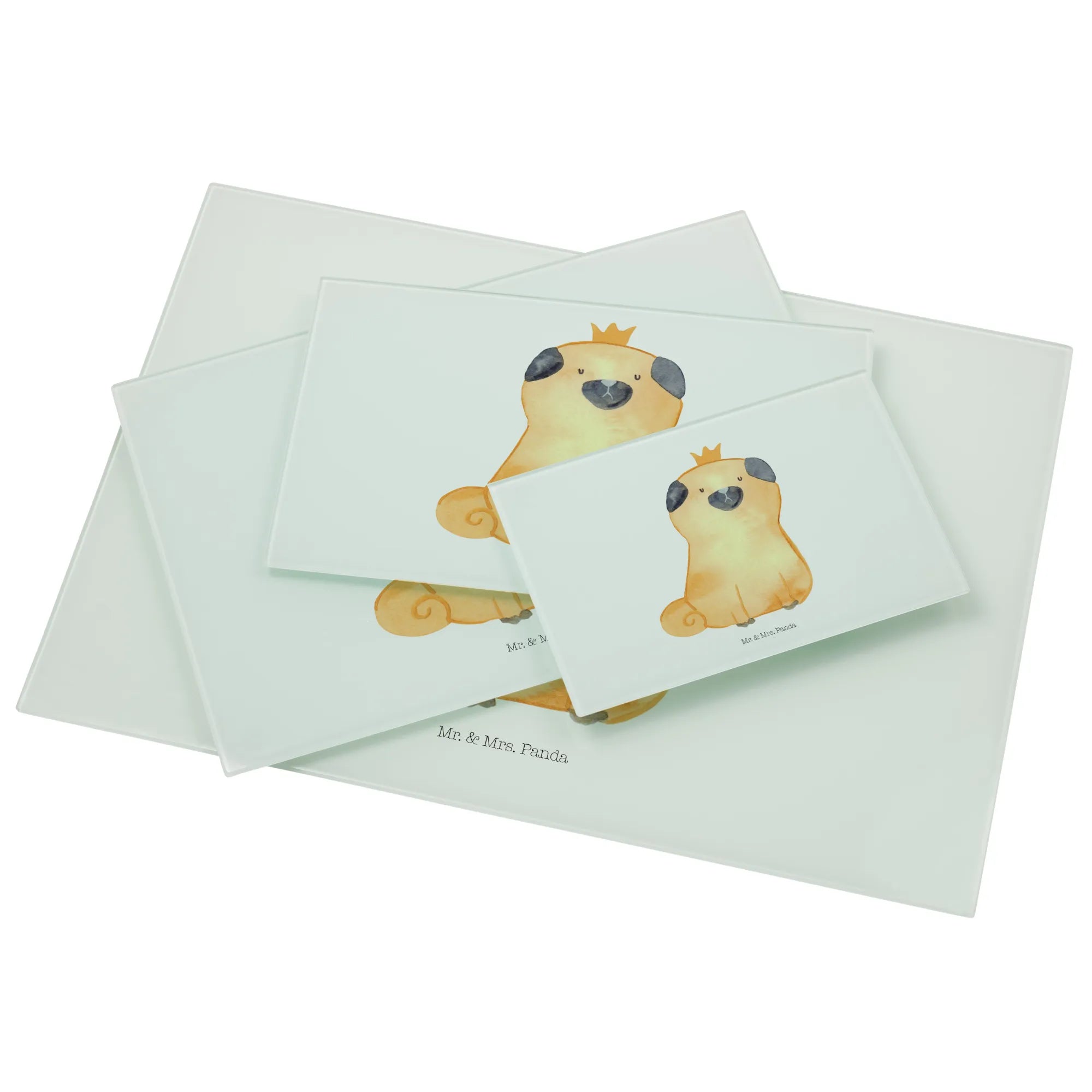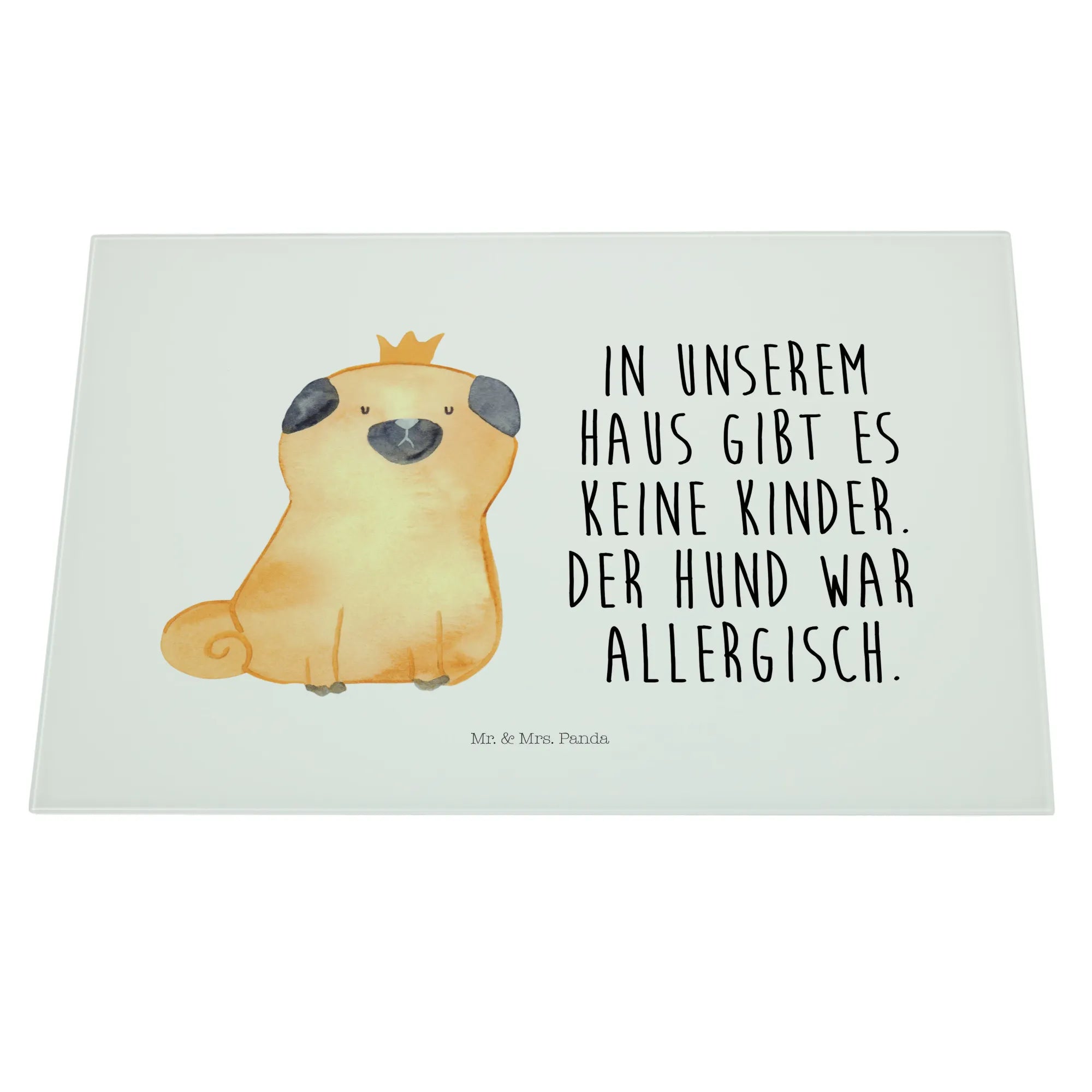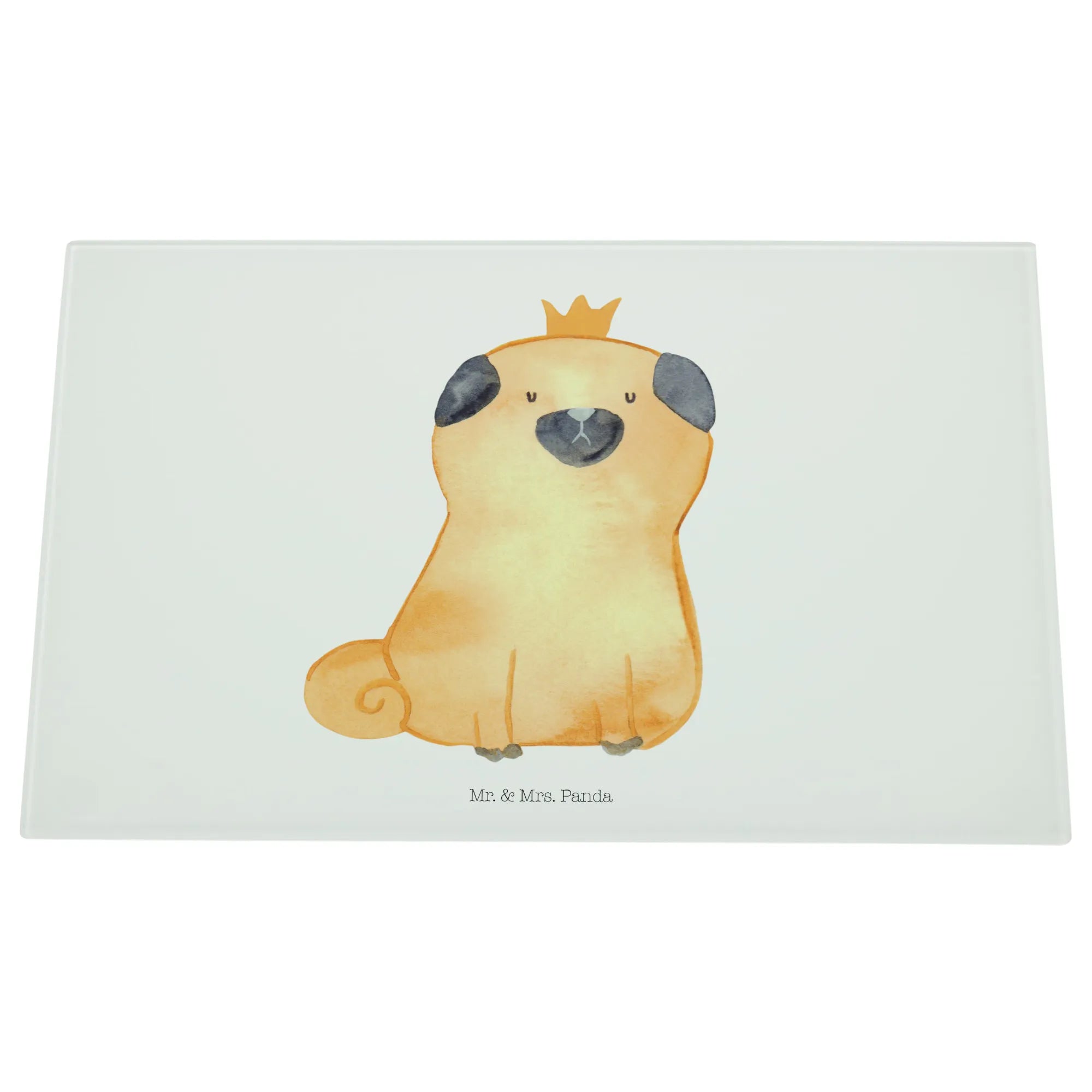 XL glass chopping board pug Crown - Medium Glass Cutting Board - with saying - White