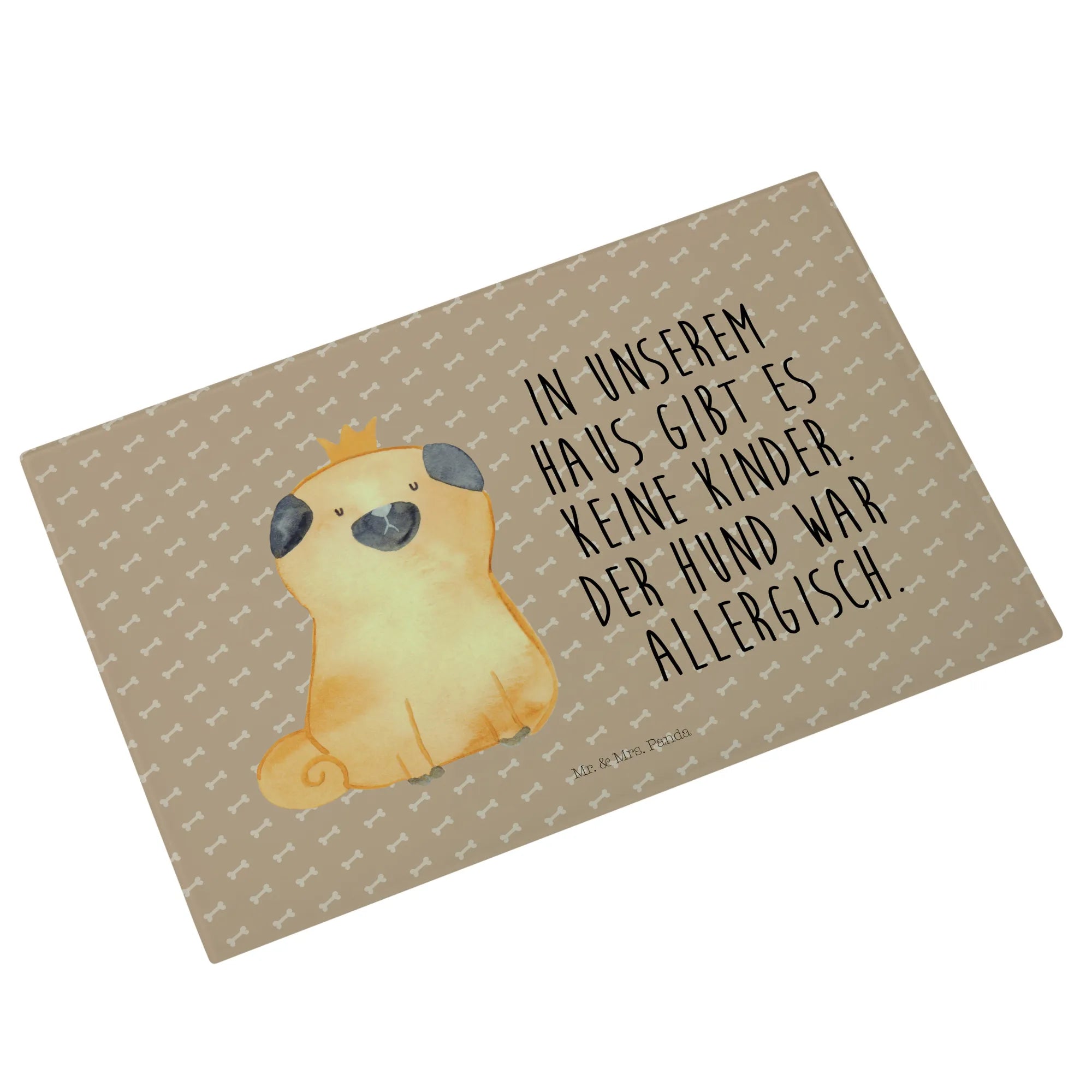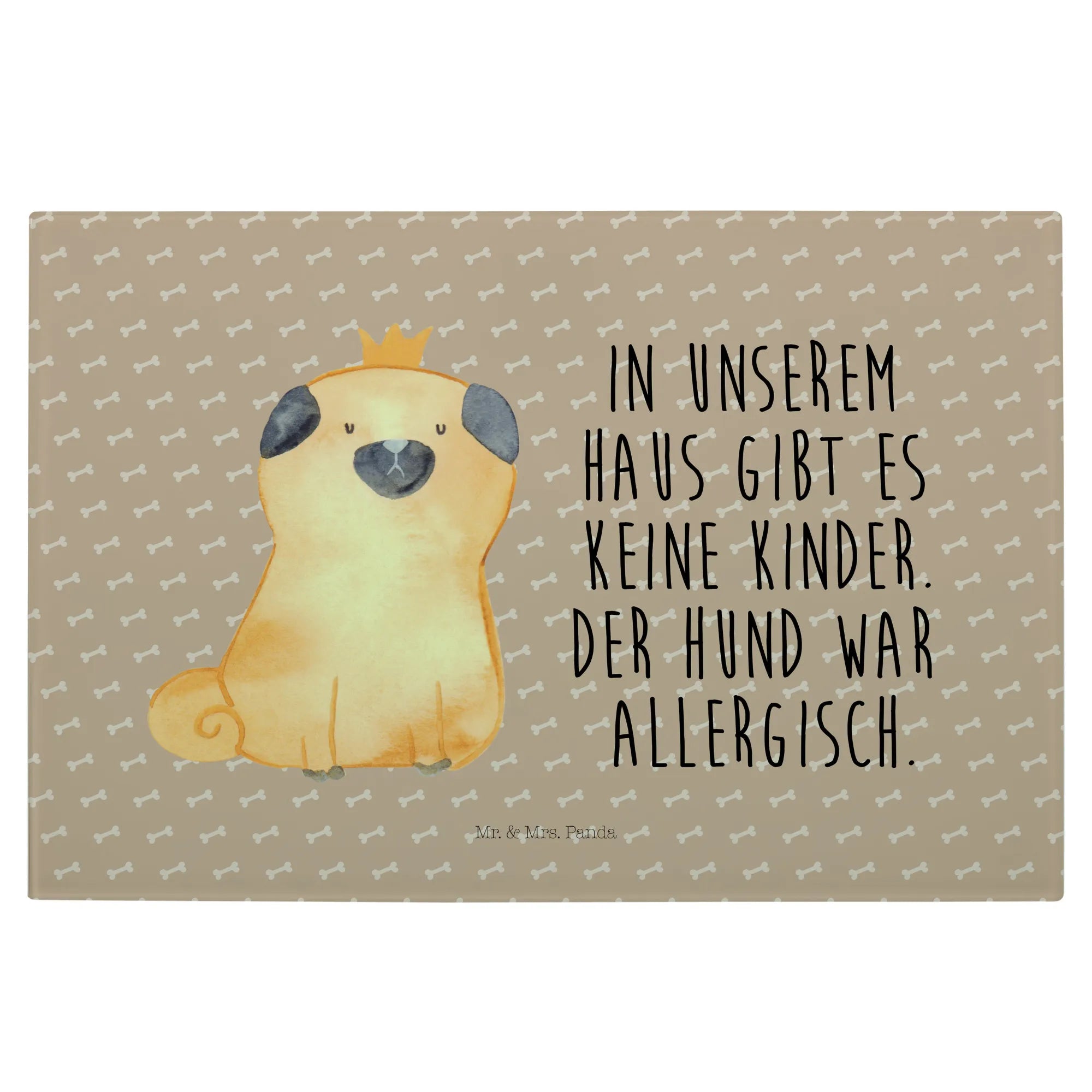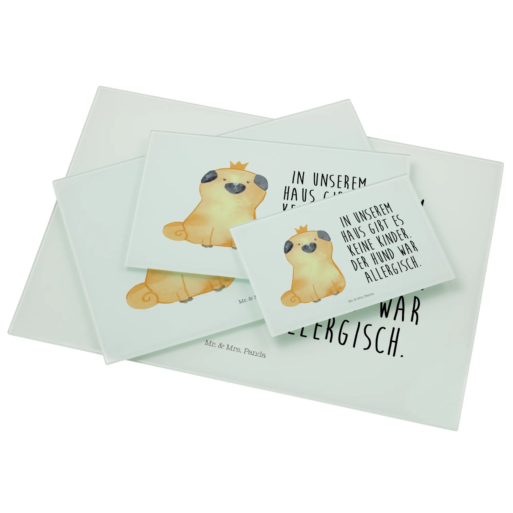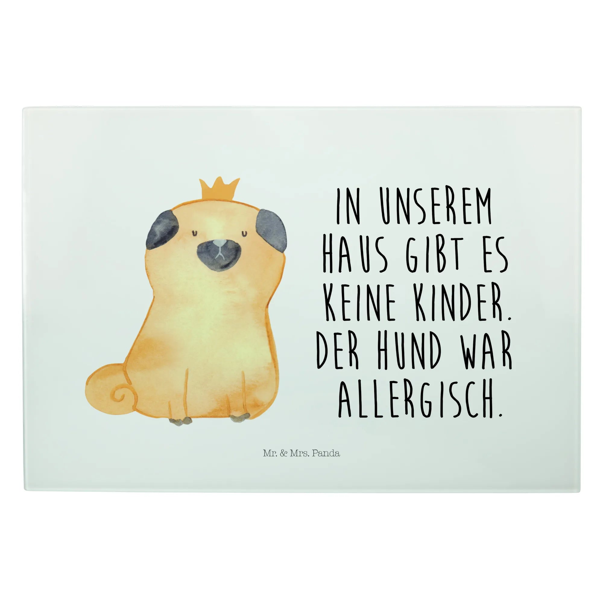 XL glass chopping board pug Crown - Medium Glass Cutting Board - with saying - White