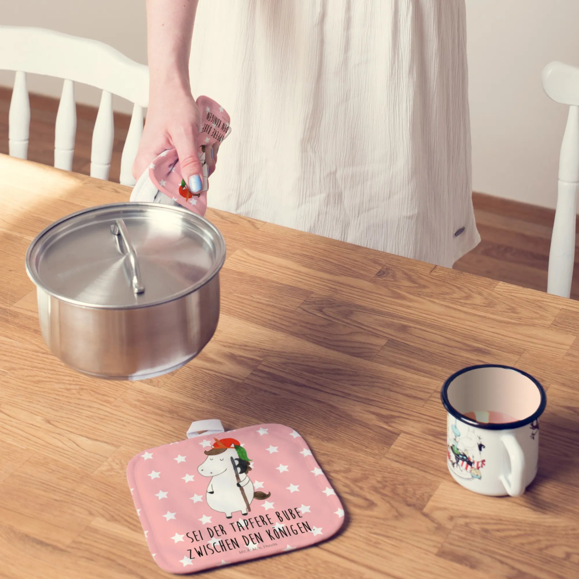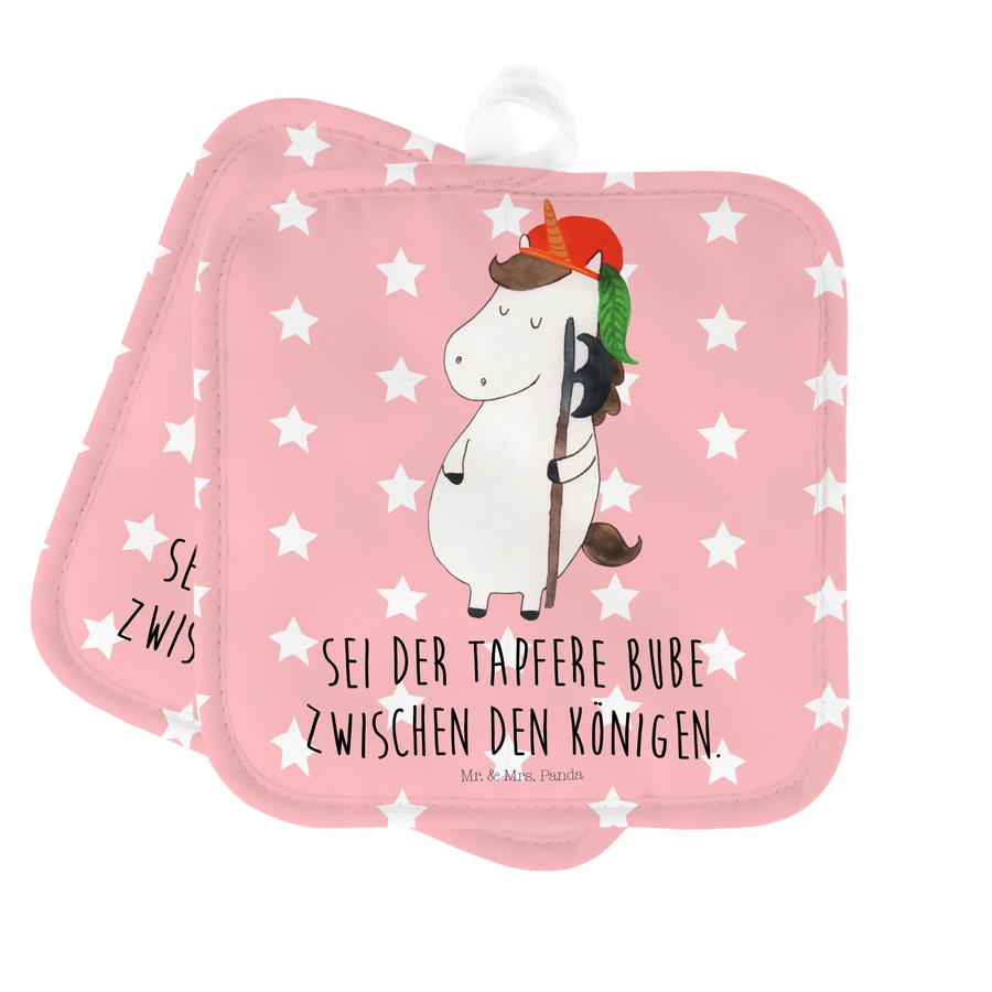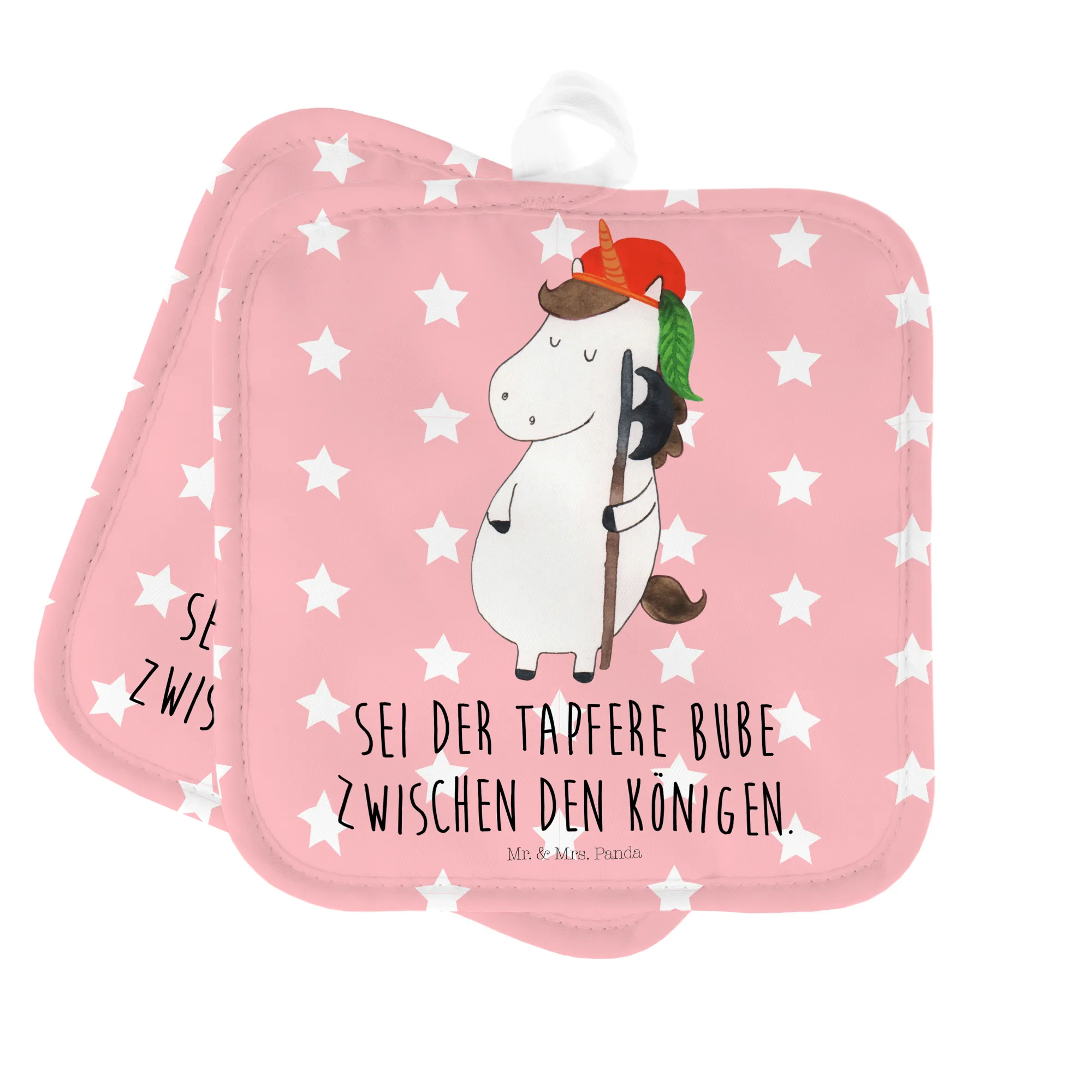 2-elementowy zestaw podkładek pod garnki Jednorożec Chłopiec - z napisem - Pastelowy czerwony
