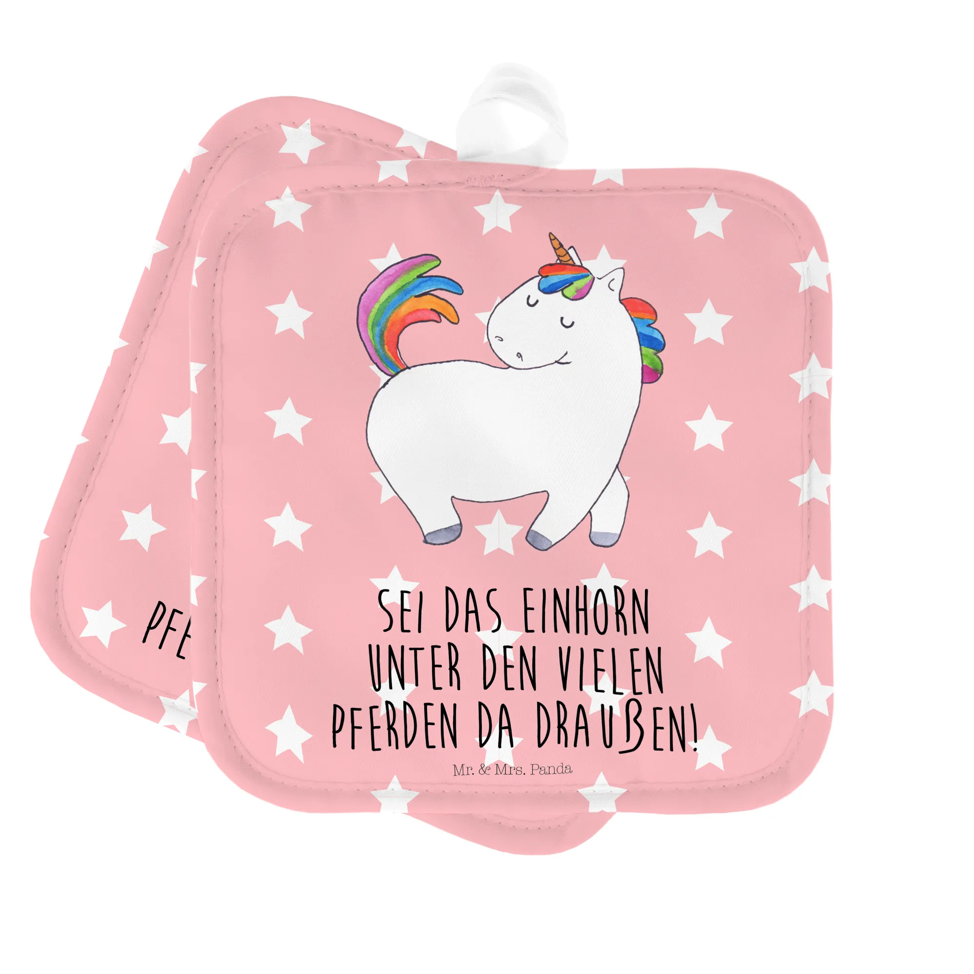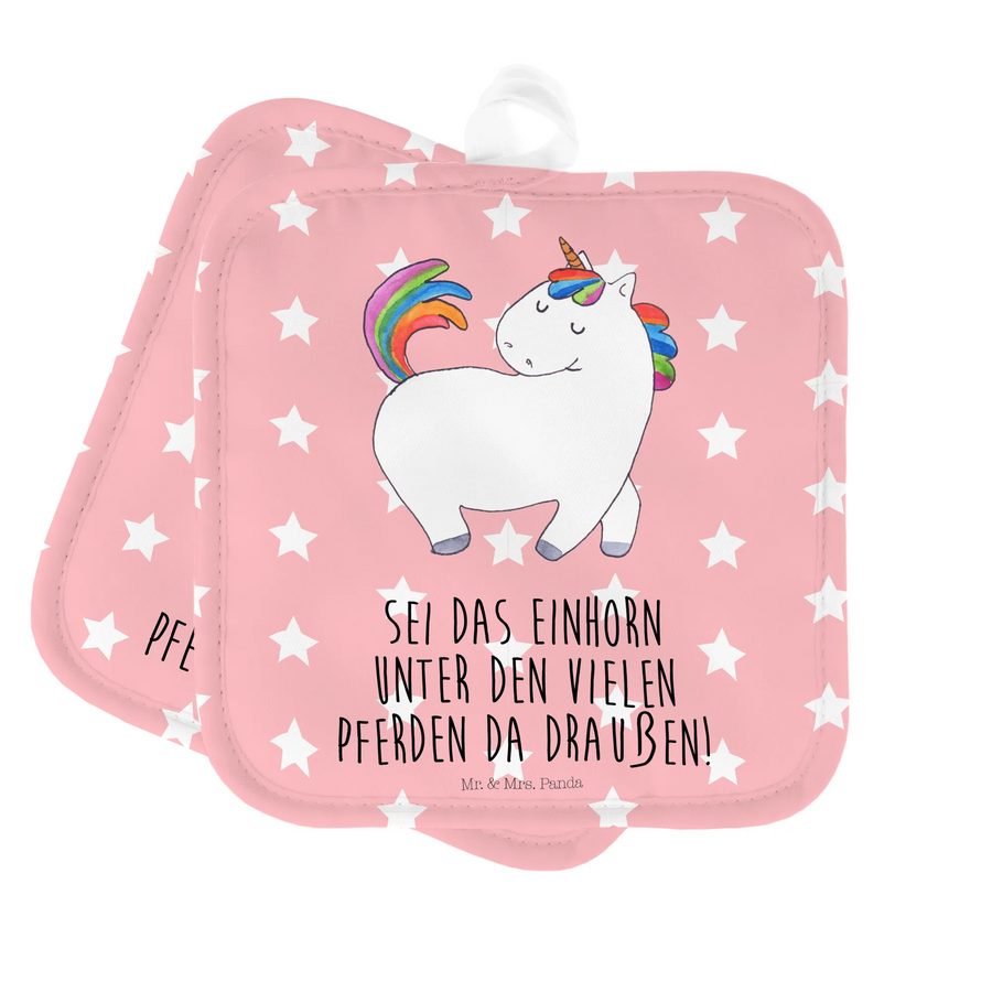 2-elementowy zestaw podkładek pod garnki jednorożec dumnie kroczyć - z napisem - Różowy Czerwony