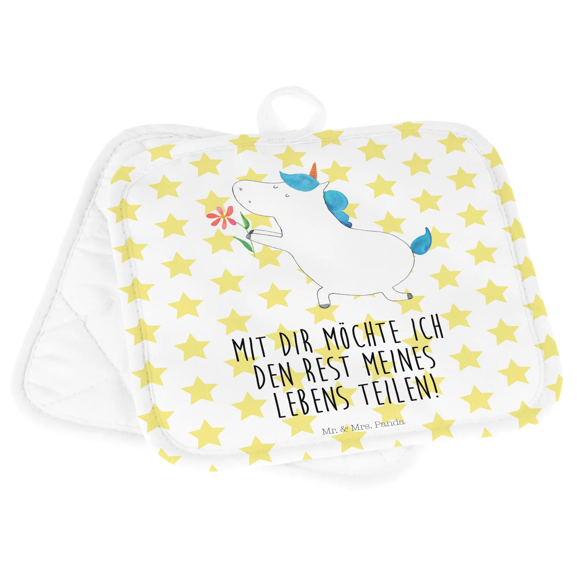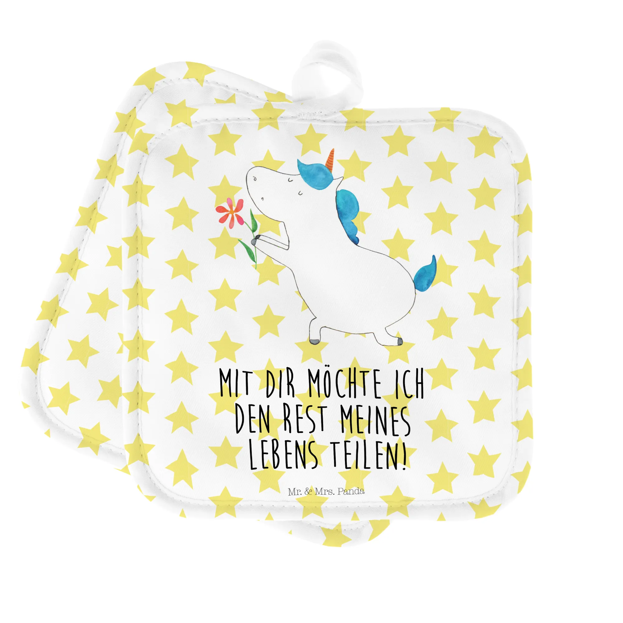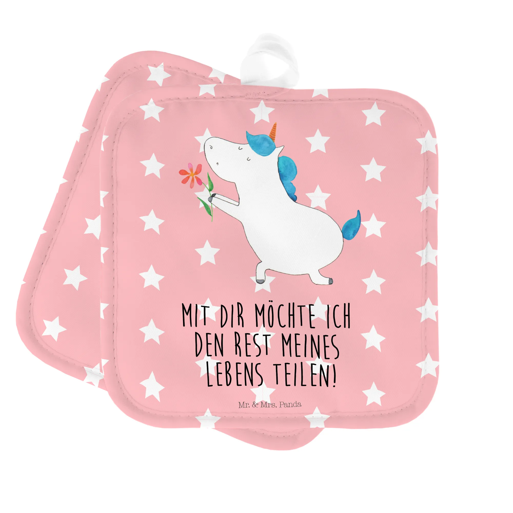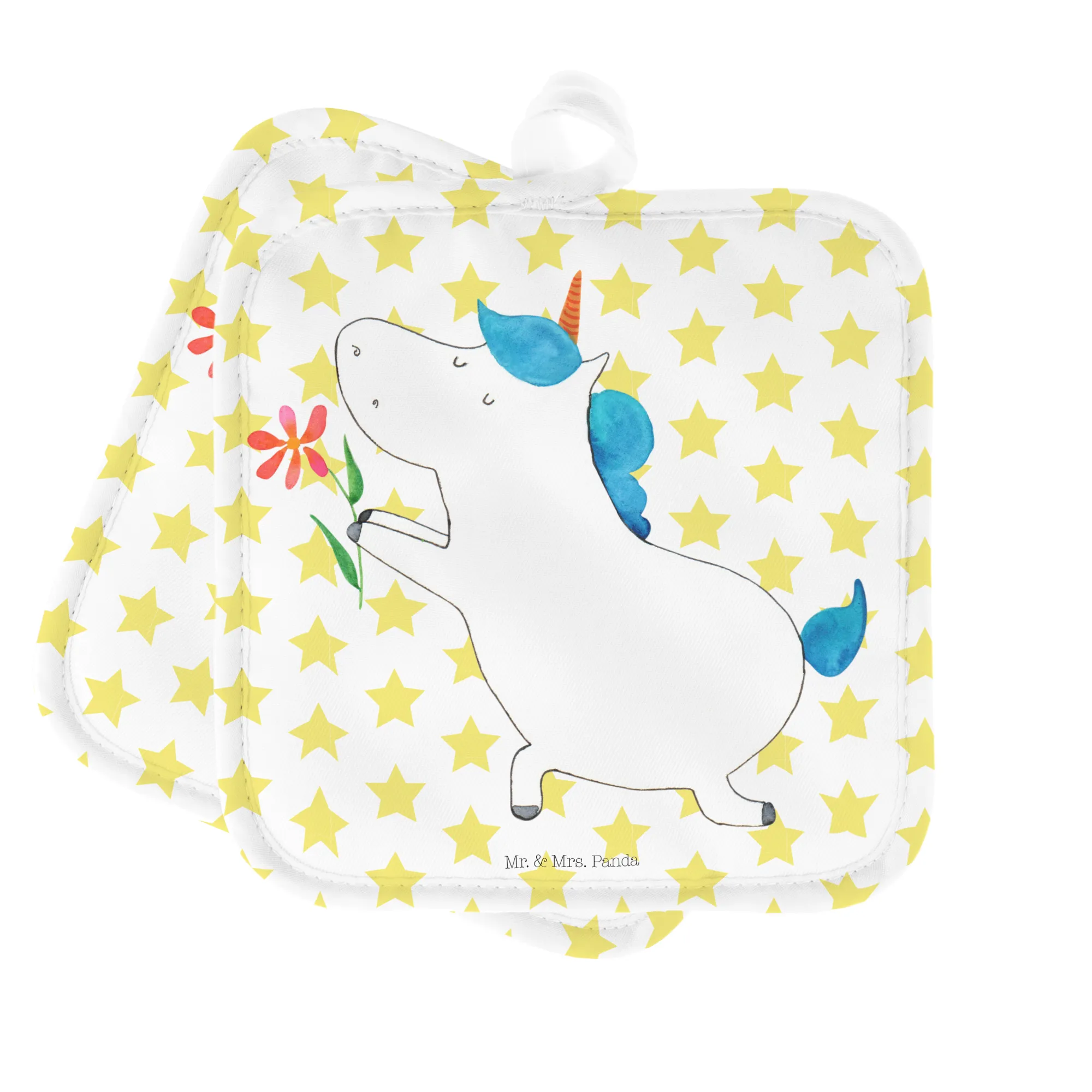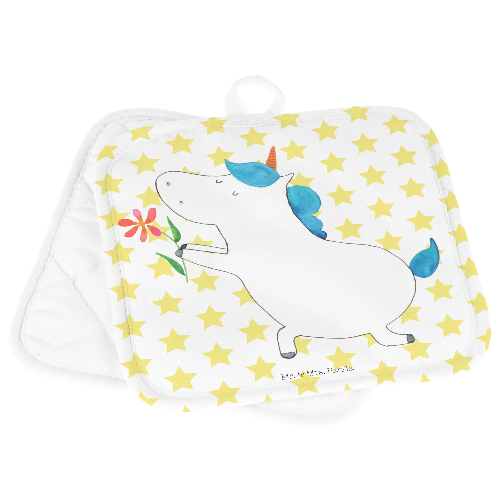 2-elementowy zestaw podkładek pod garnki jednorożec kwiat - z napisem - Biały