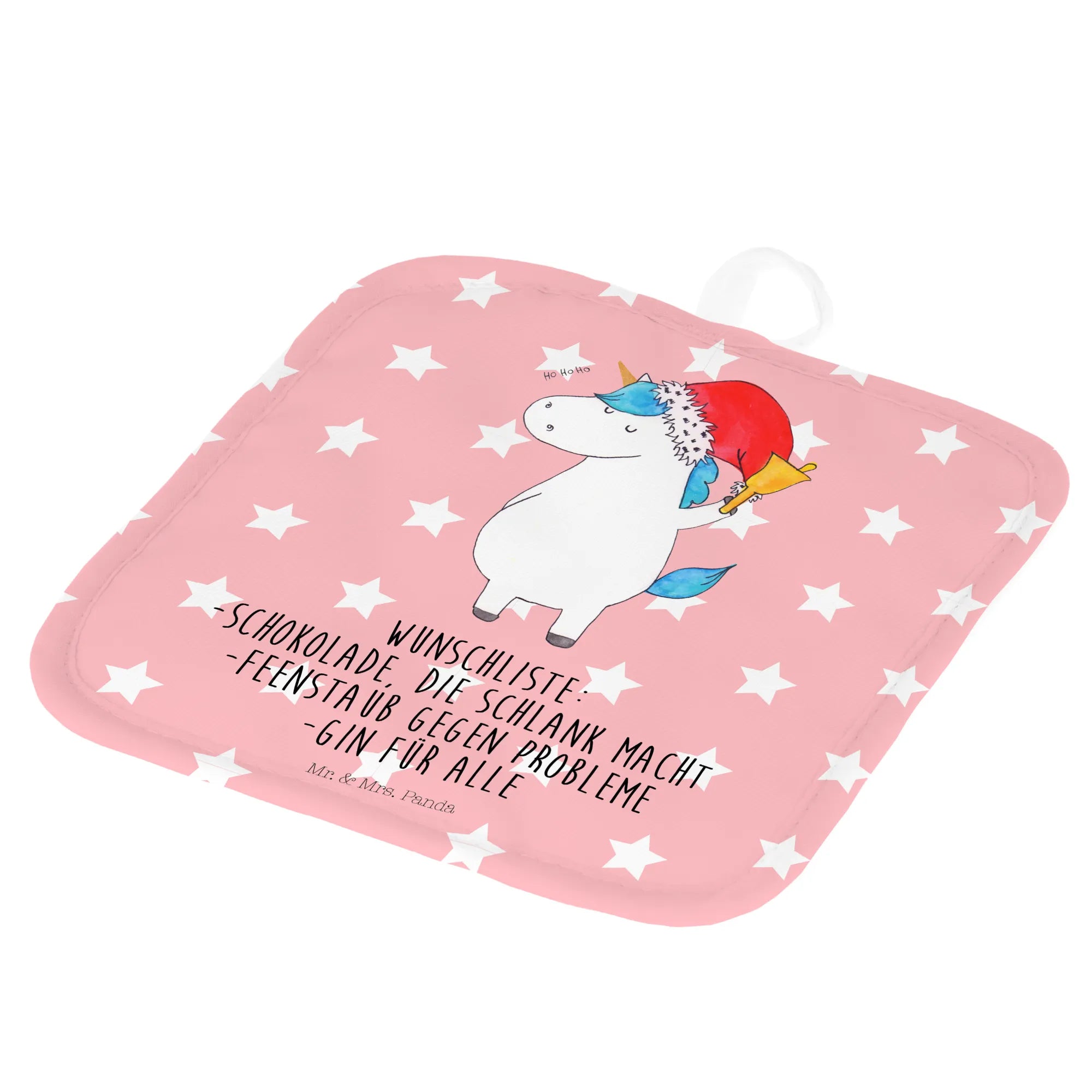 2-elementowy zestaw podkładek pod garnki Jednorożec Mikołaj - z napisem - Pastelowy czerwony