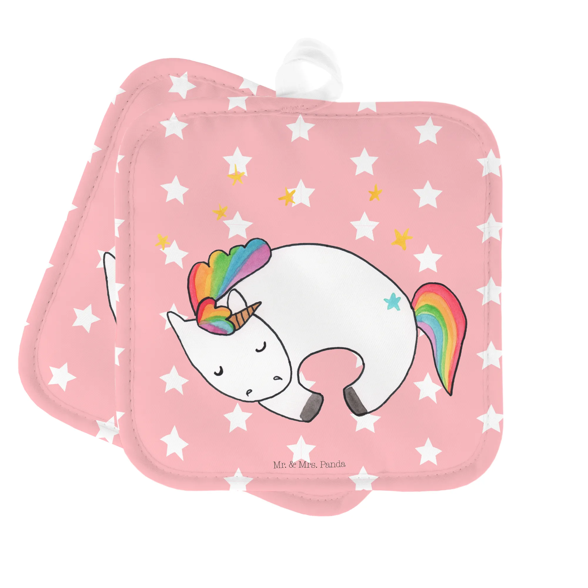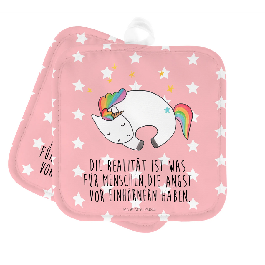 2-elementowy zestaw podkładek pod garnki Jednorożec noc - z napisem - Różowy Czerwony