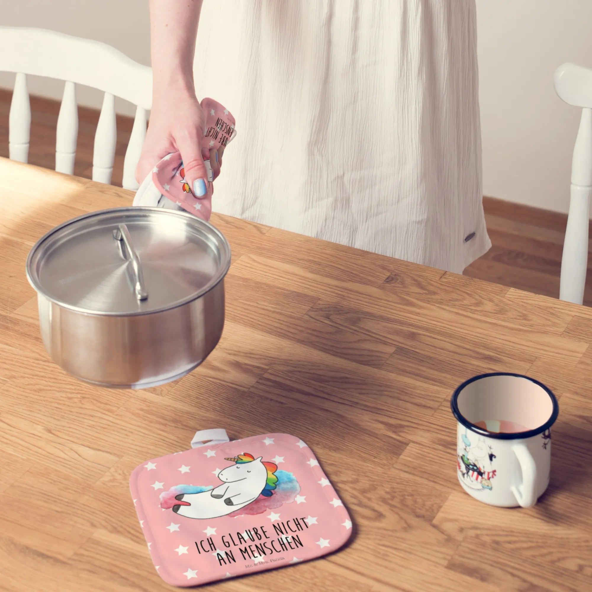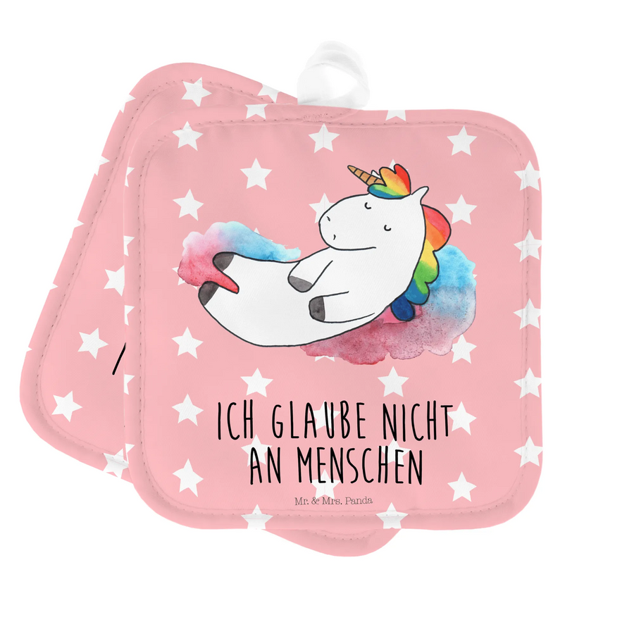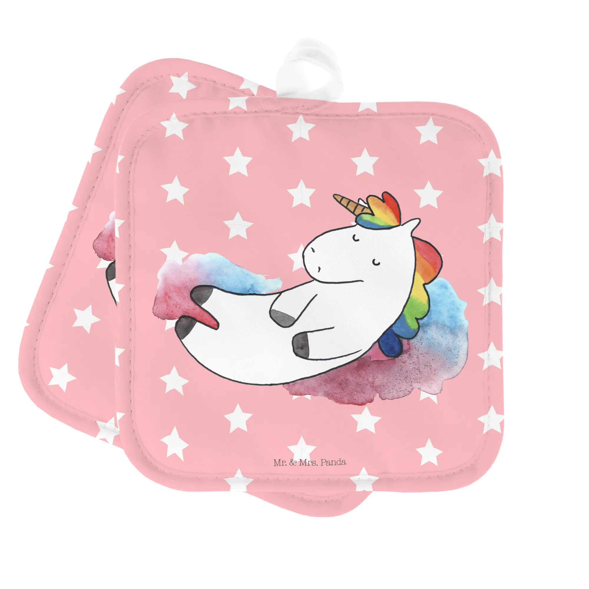 2-elementowy zestaw podkładek pod garnki Jednorożec Siódme niebo - z napisem - Pastelowy czerwony