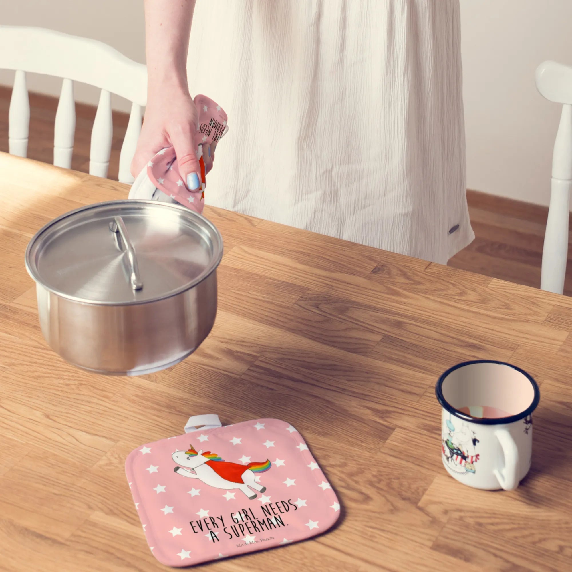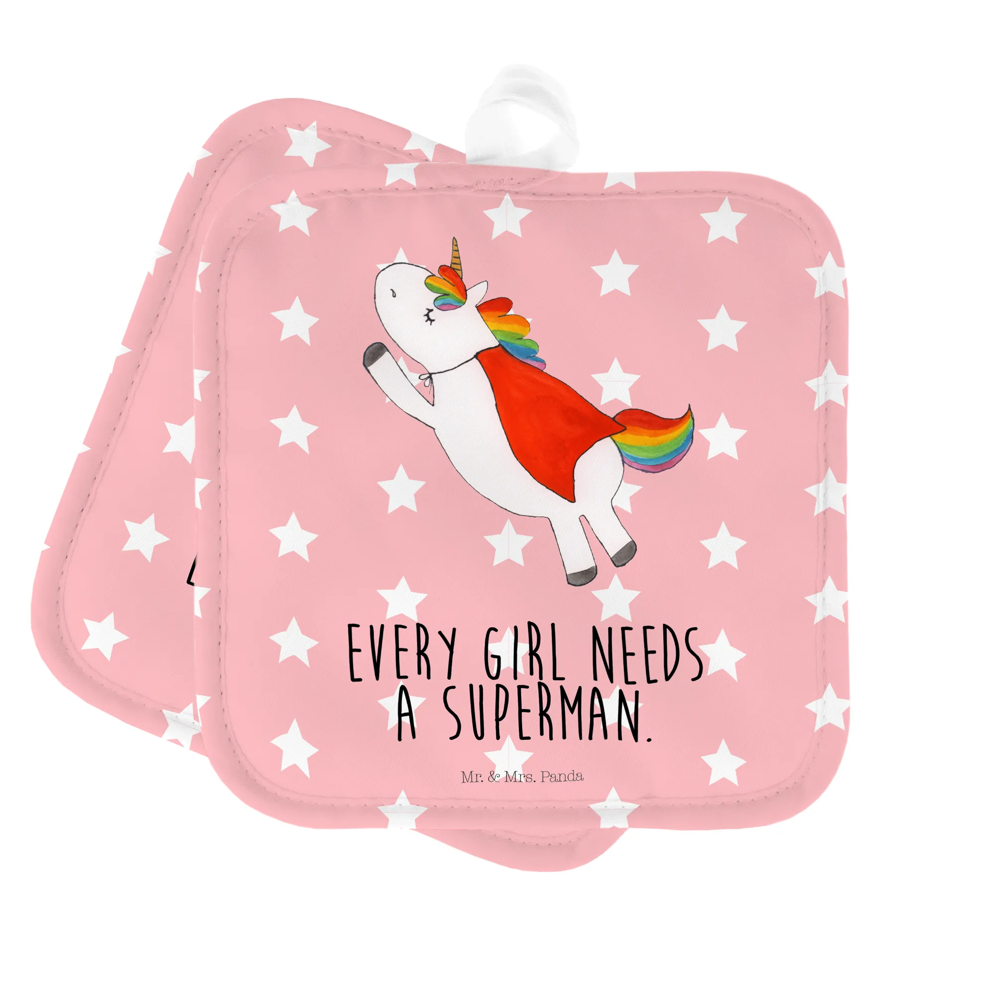 2-elementowy zestaw podkładek pod garnki Jednorożec Super - z napisem - Różowy Czerwony
