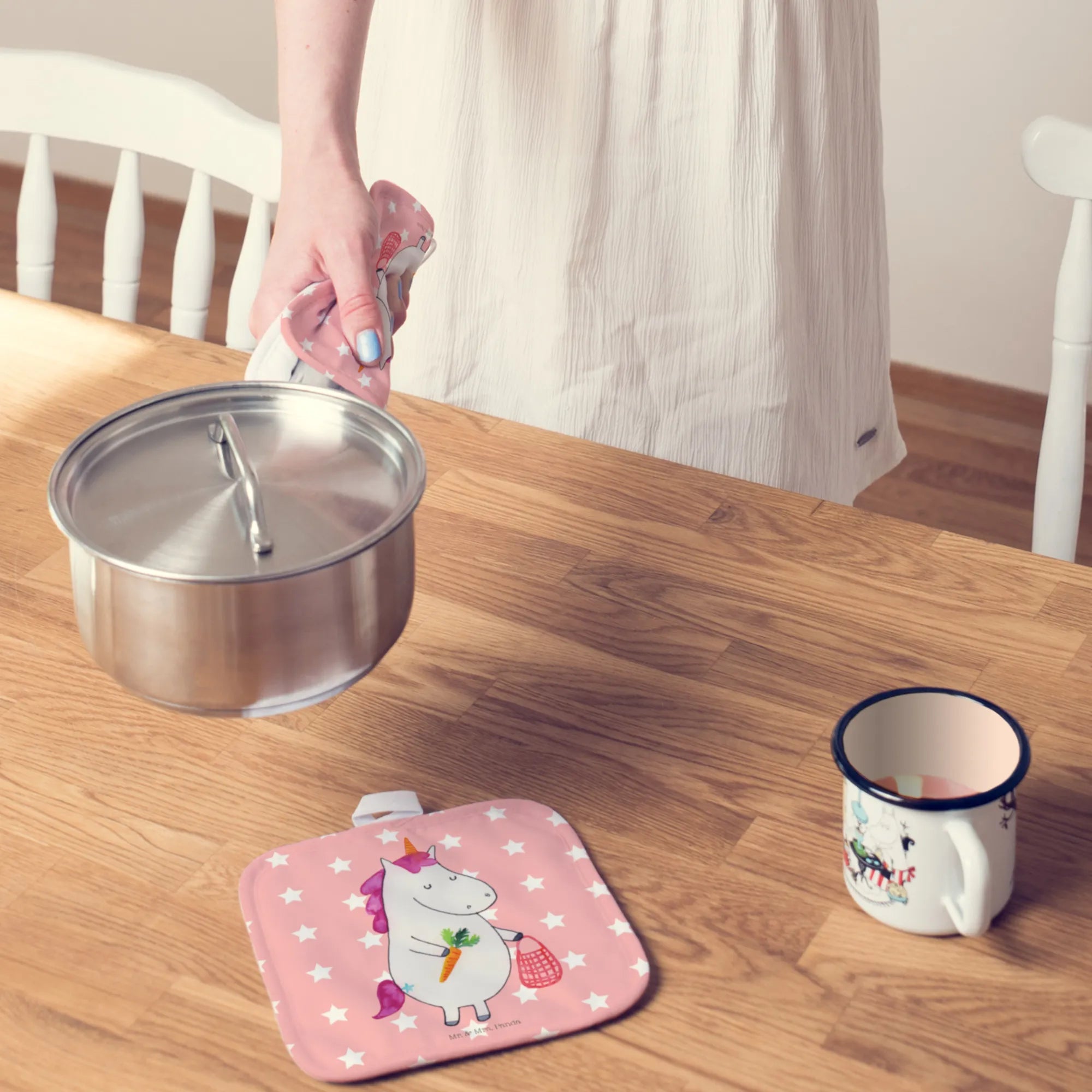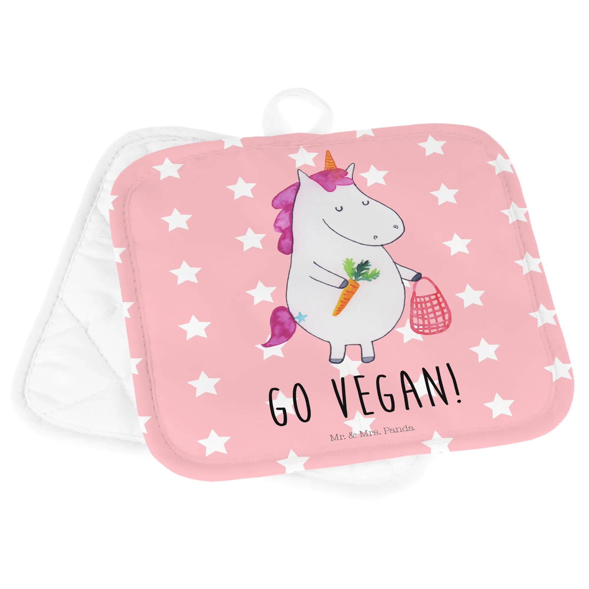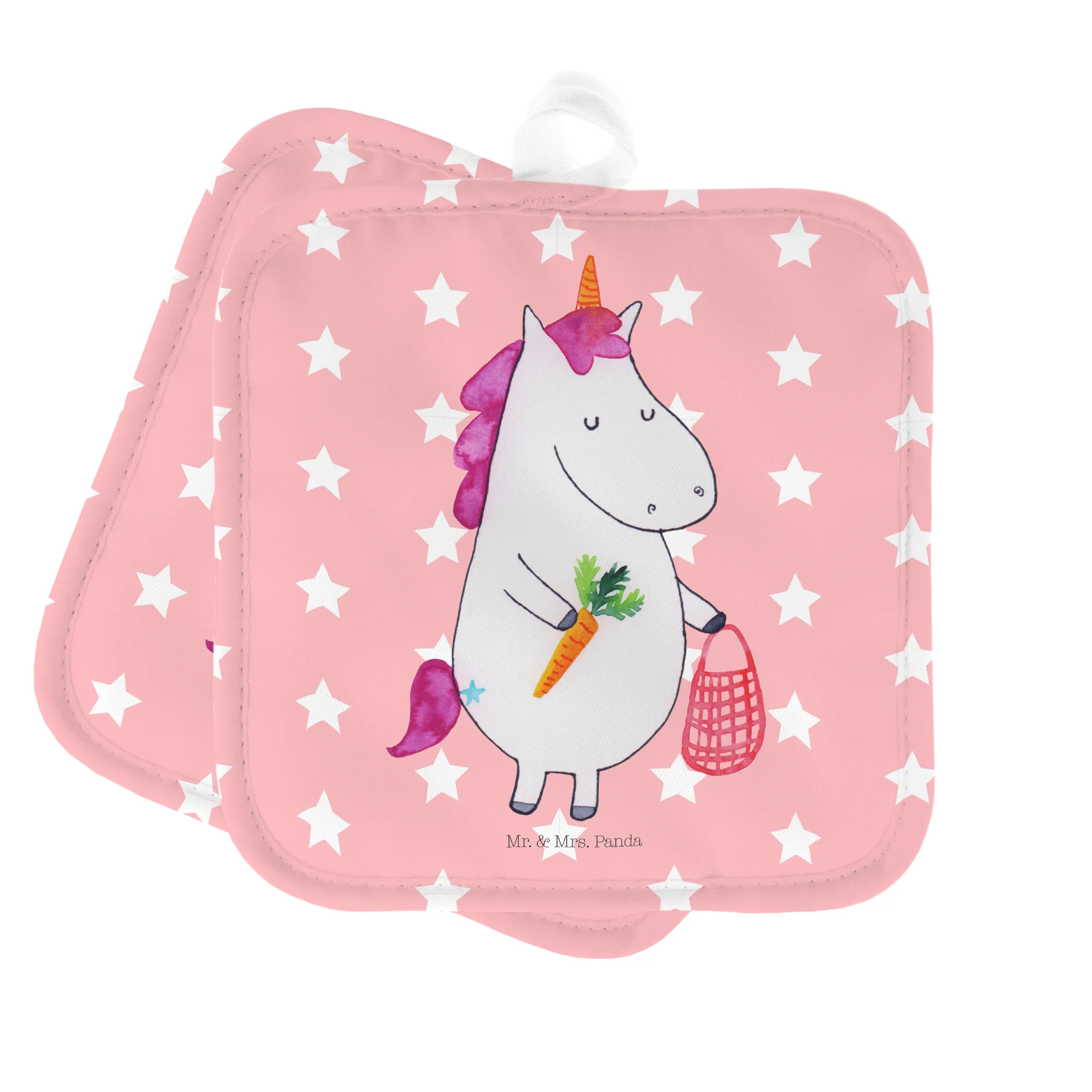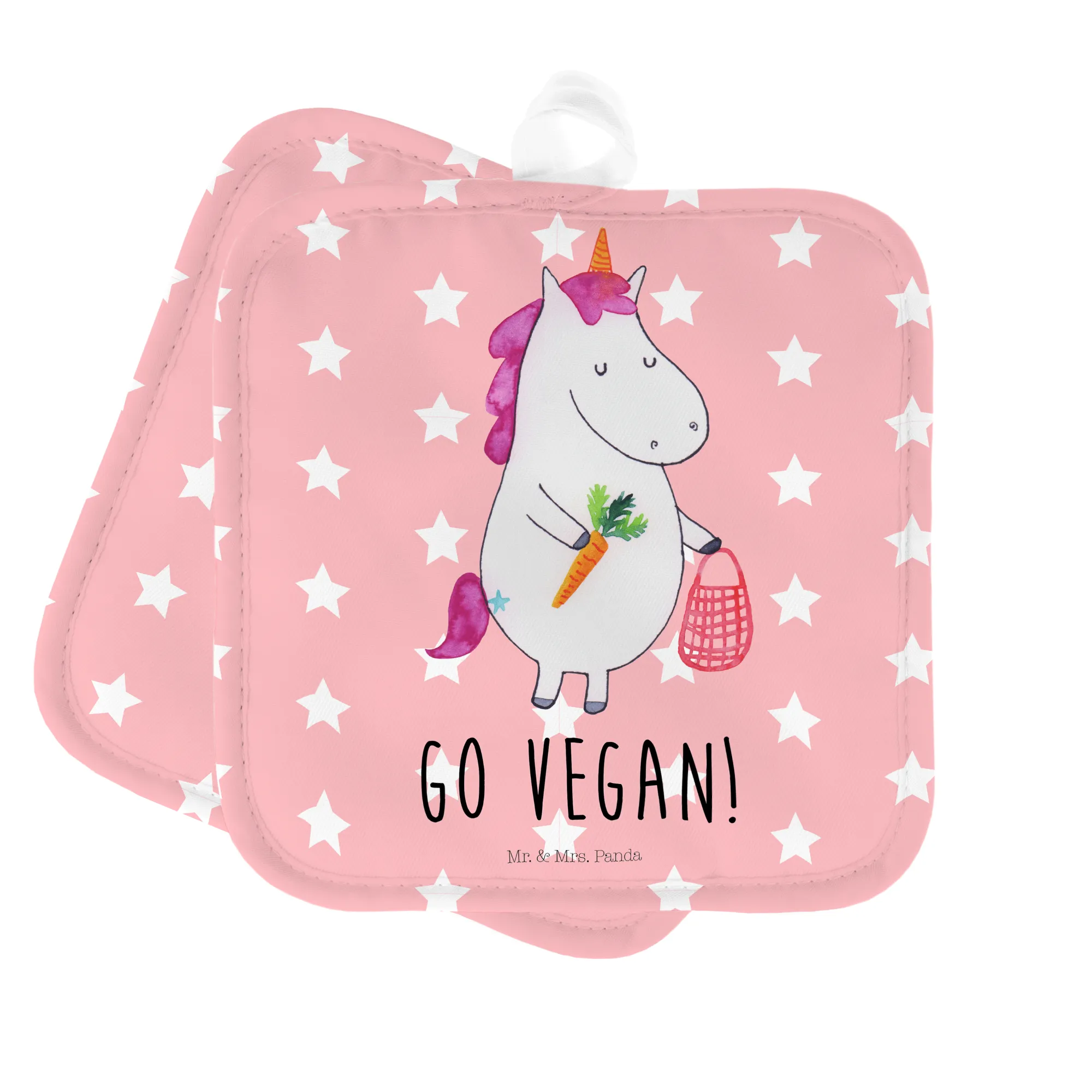 2-elementowy zestaw podkładek pod garnki Jednorożec Wegański - z napisem - Pastelowy czerwony