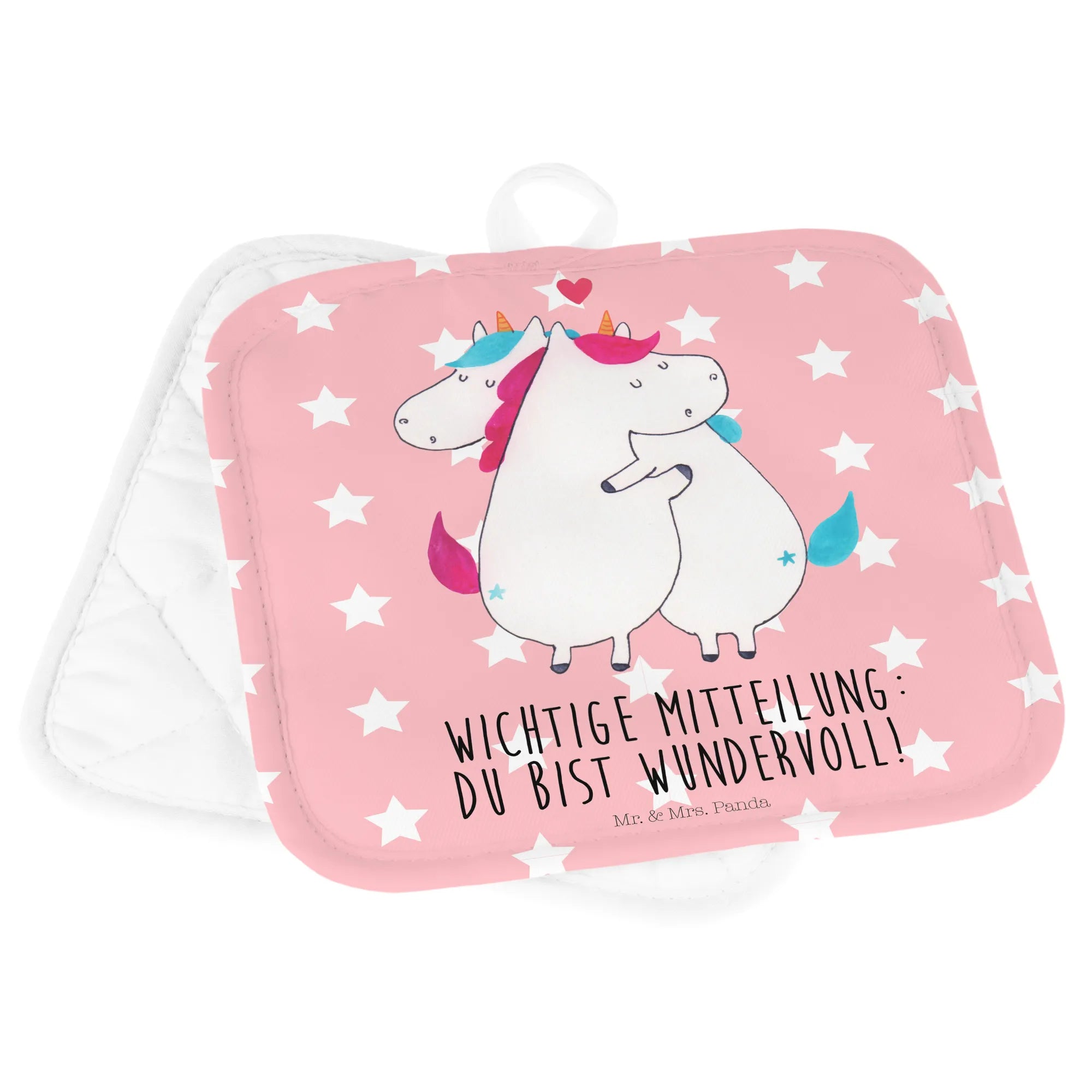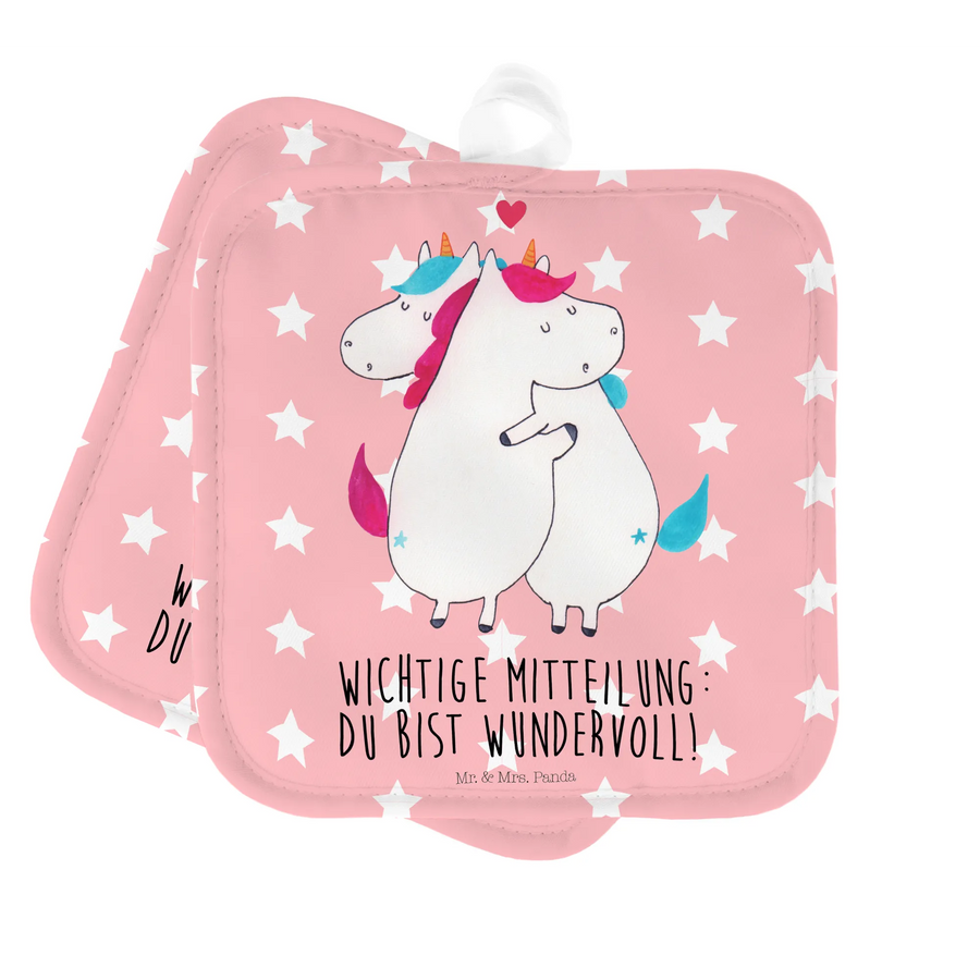 2-elementowy zestaw podkładek pod garnki jednorożec Wiadomość - z napisem - Pastelowy czerwony