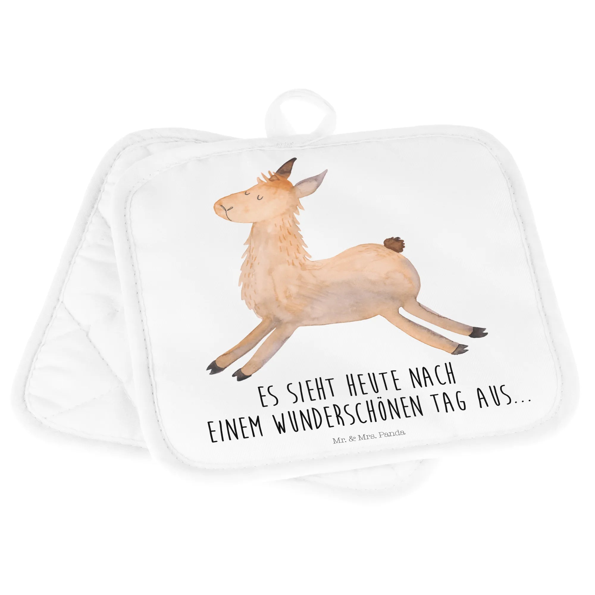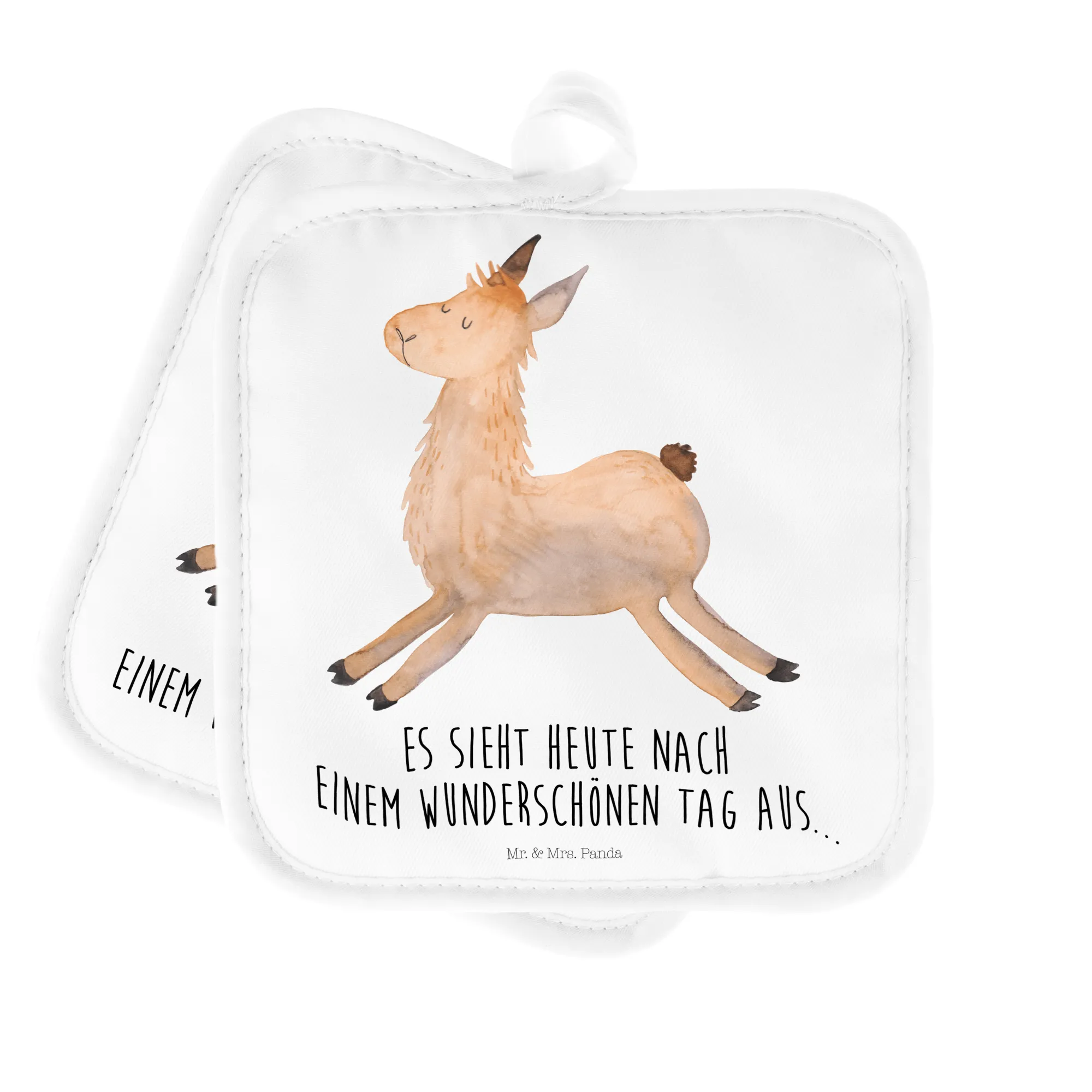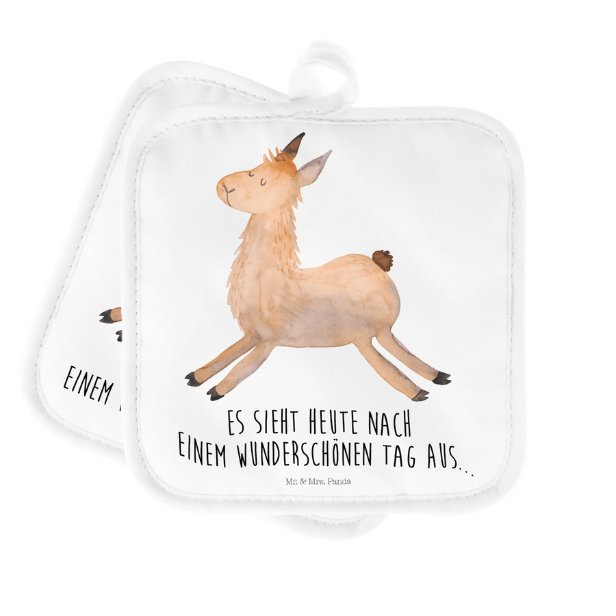 2-elementowy zestaw podkładek pod garnki lama Skakanie - mit Spruch
