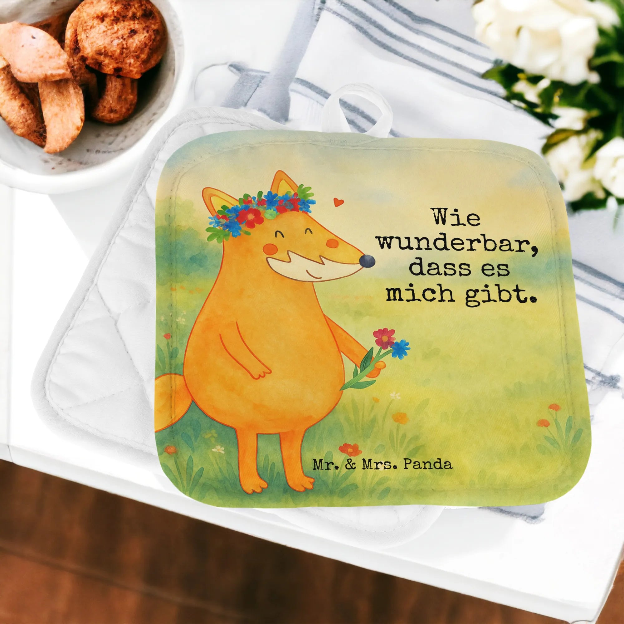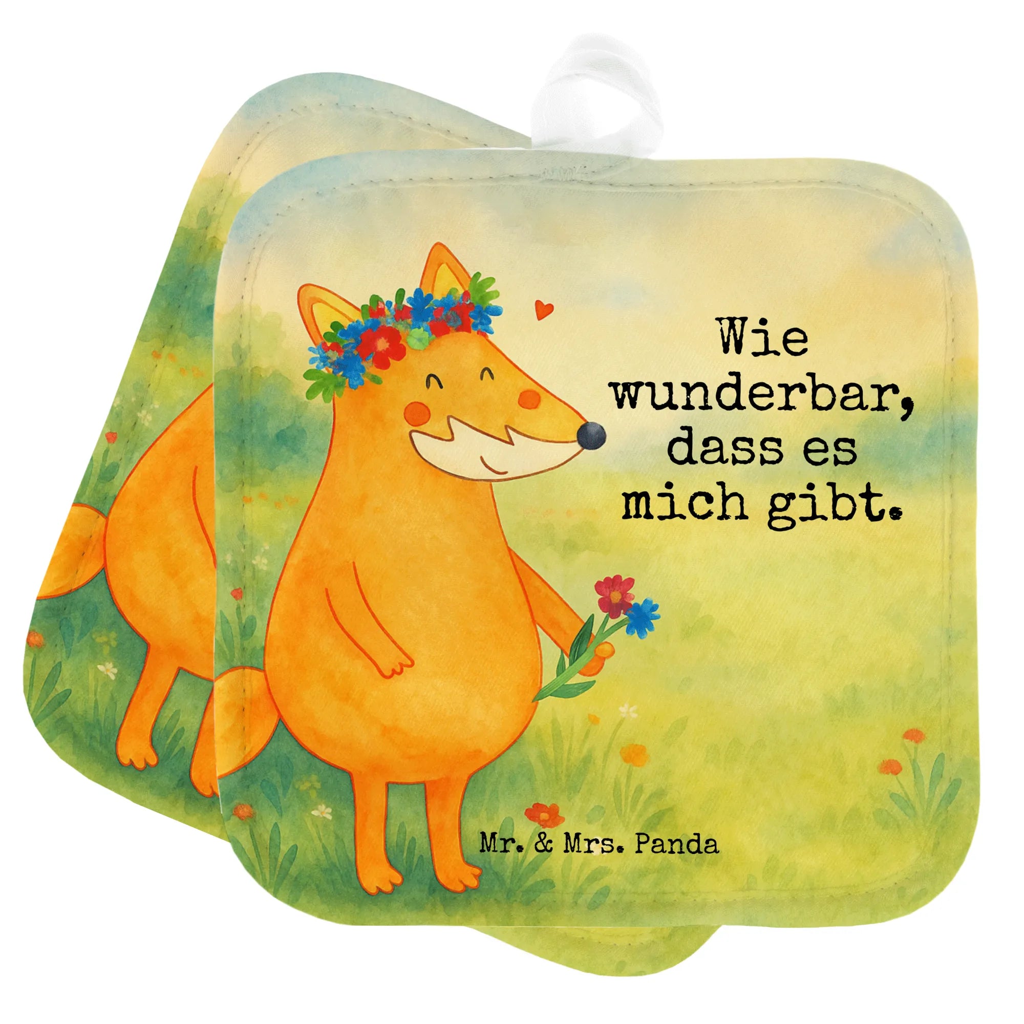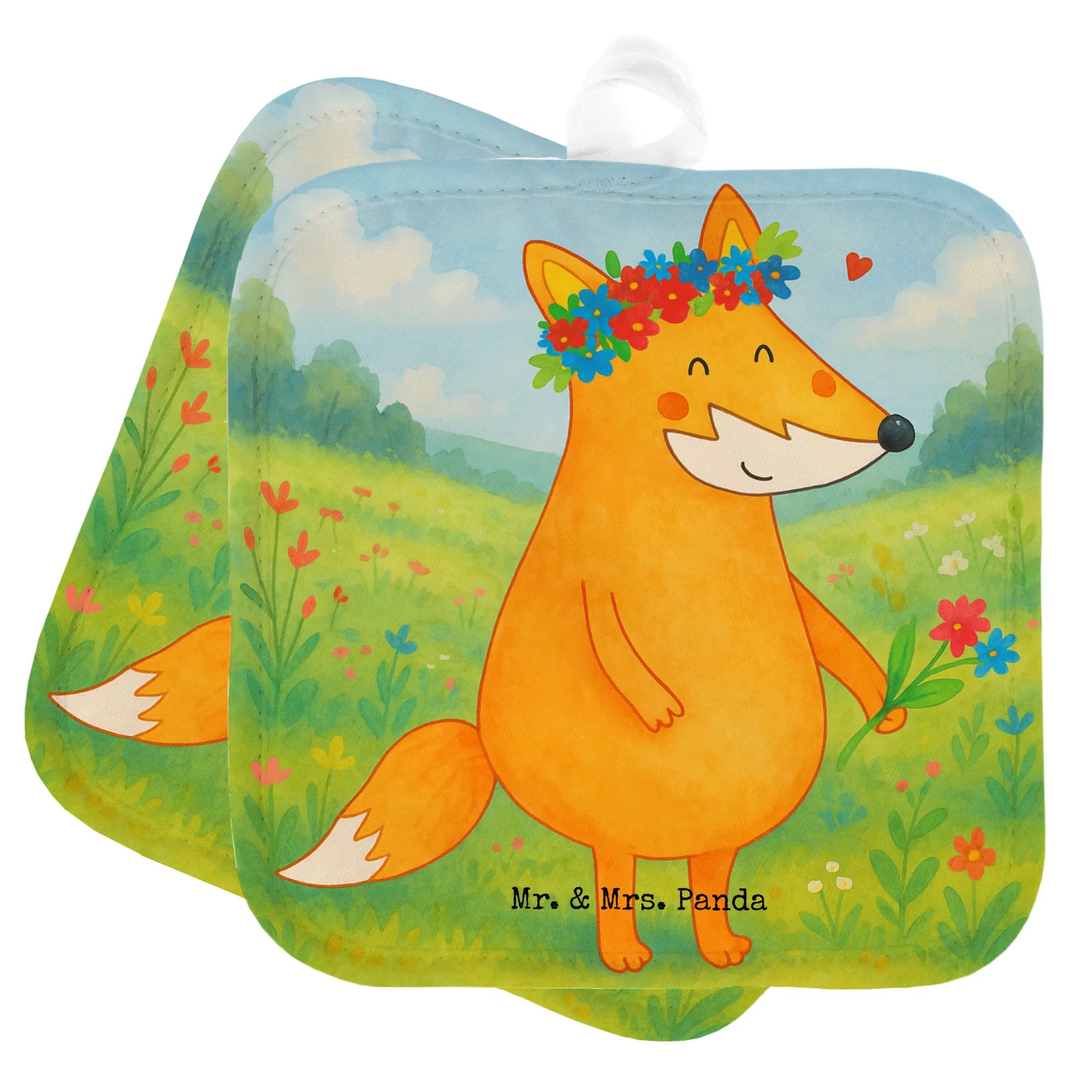 2-elementowy zestaw podkładek pod garnki lis Kwiaty Design - z napisem