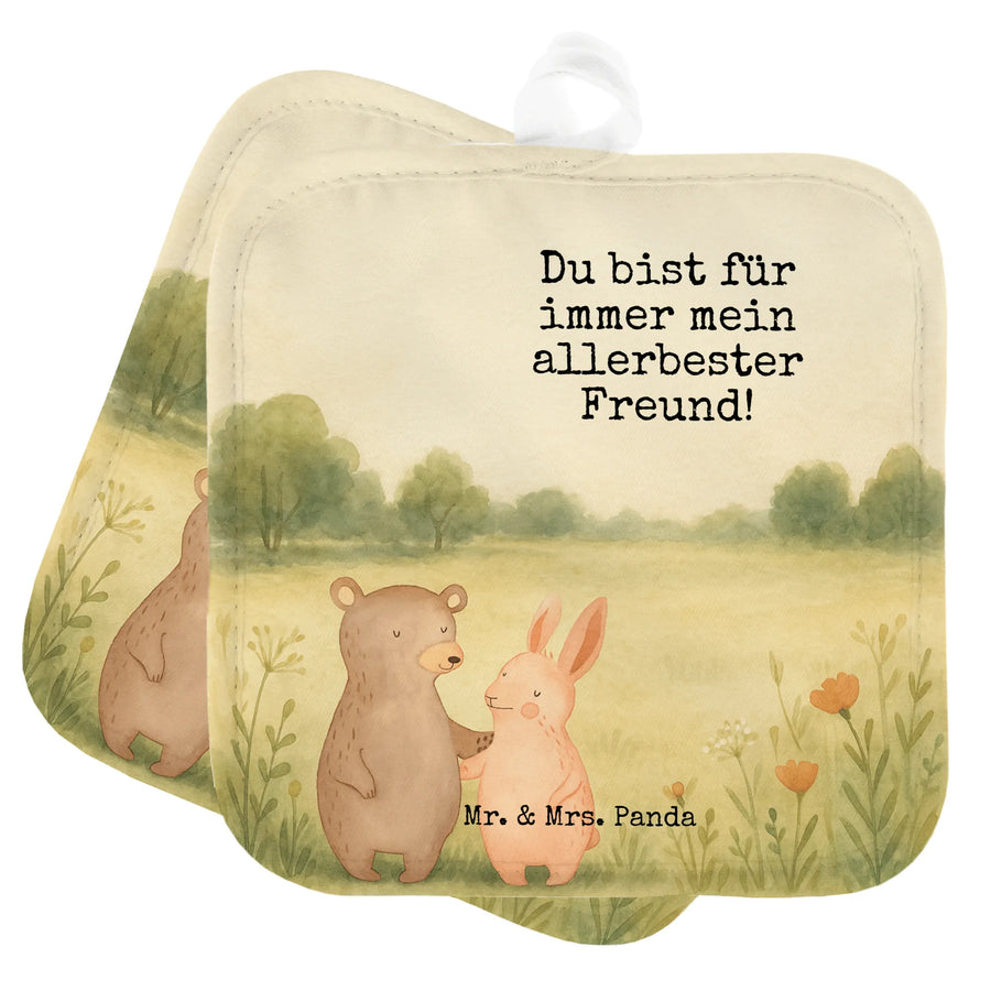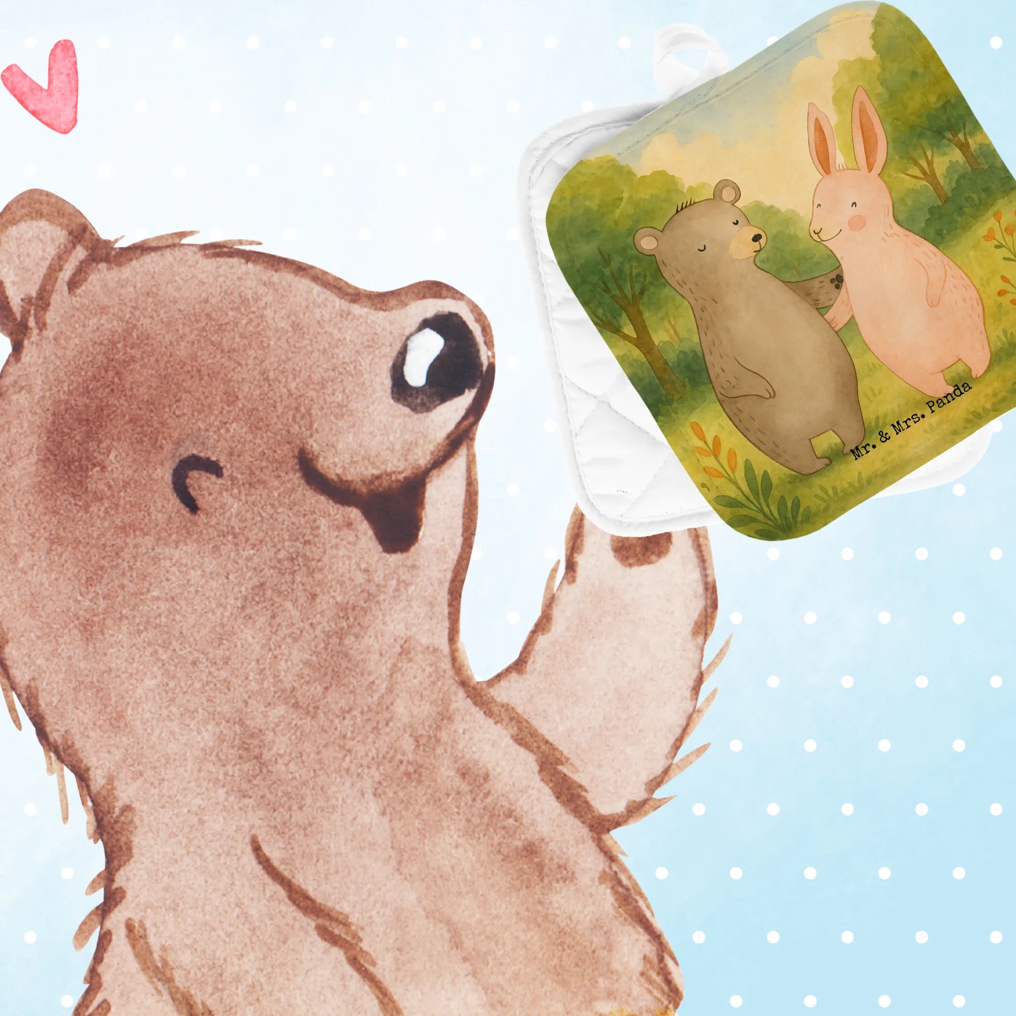2-elementowy zestaw podkładek pod garnki Niedźwiedź i królik Przytulać Design - z napisem