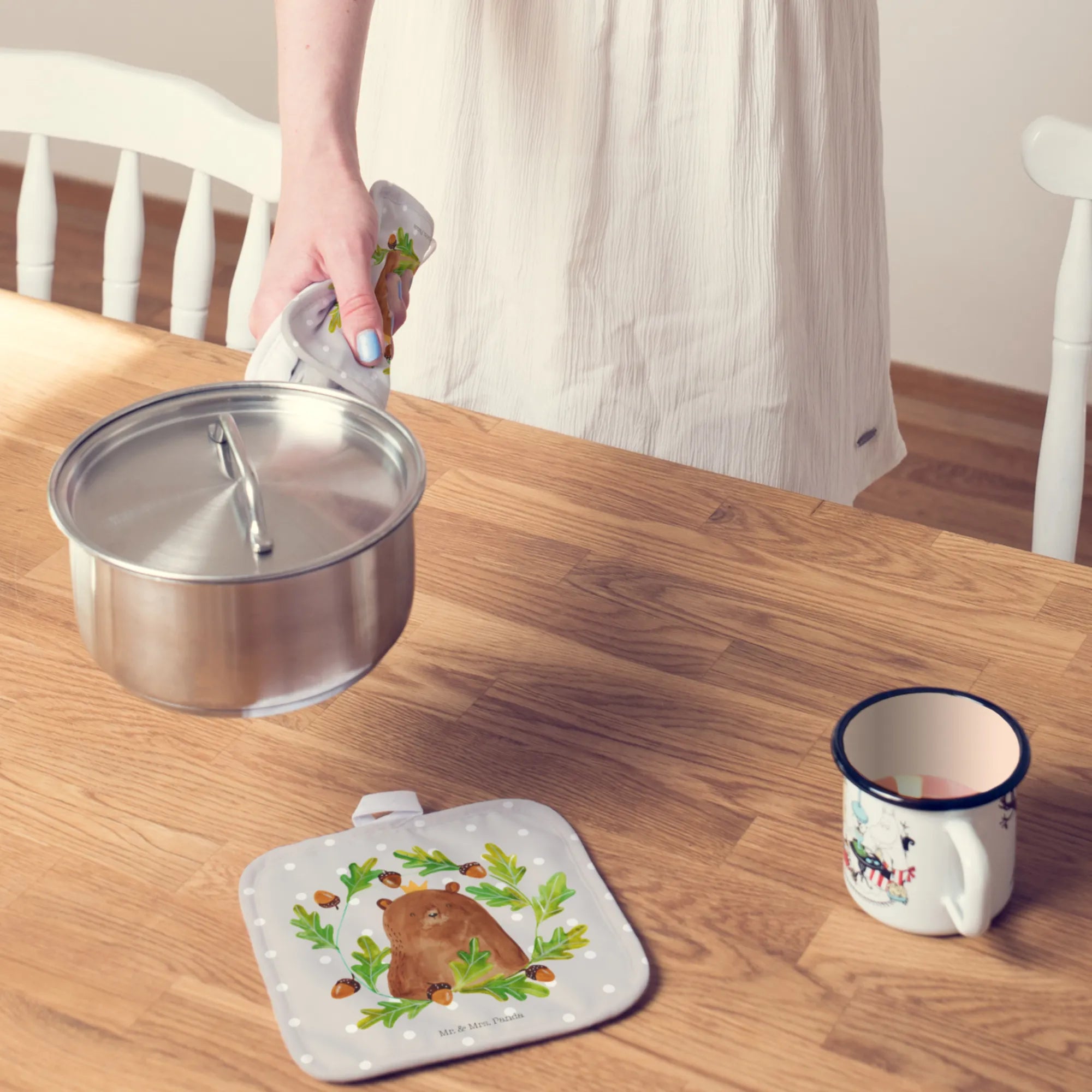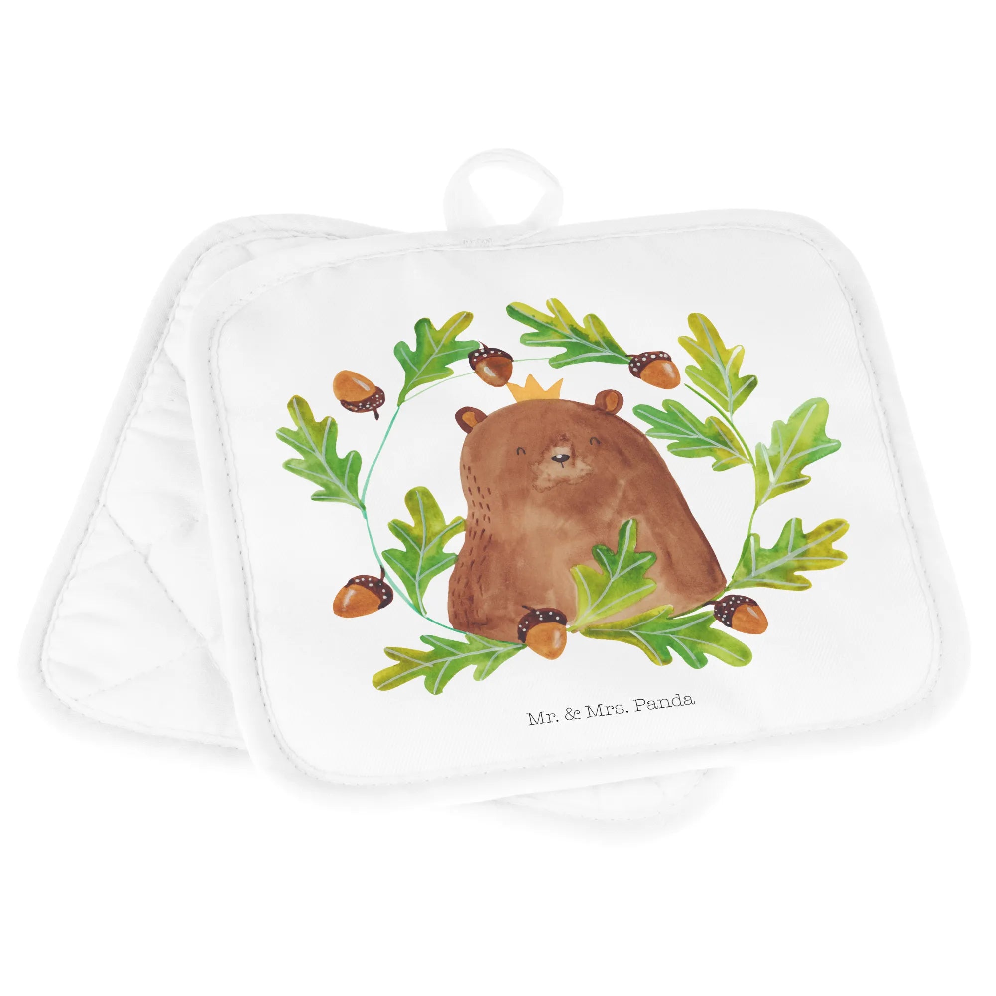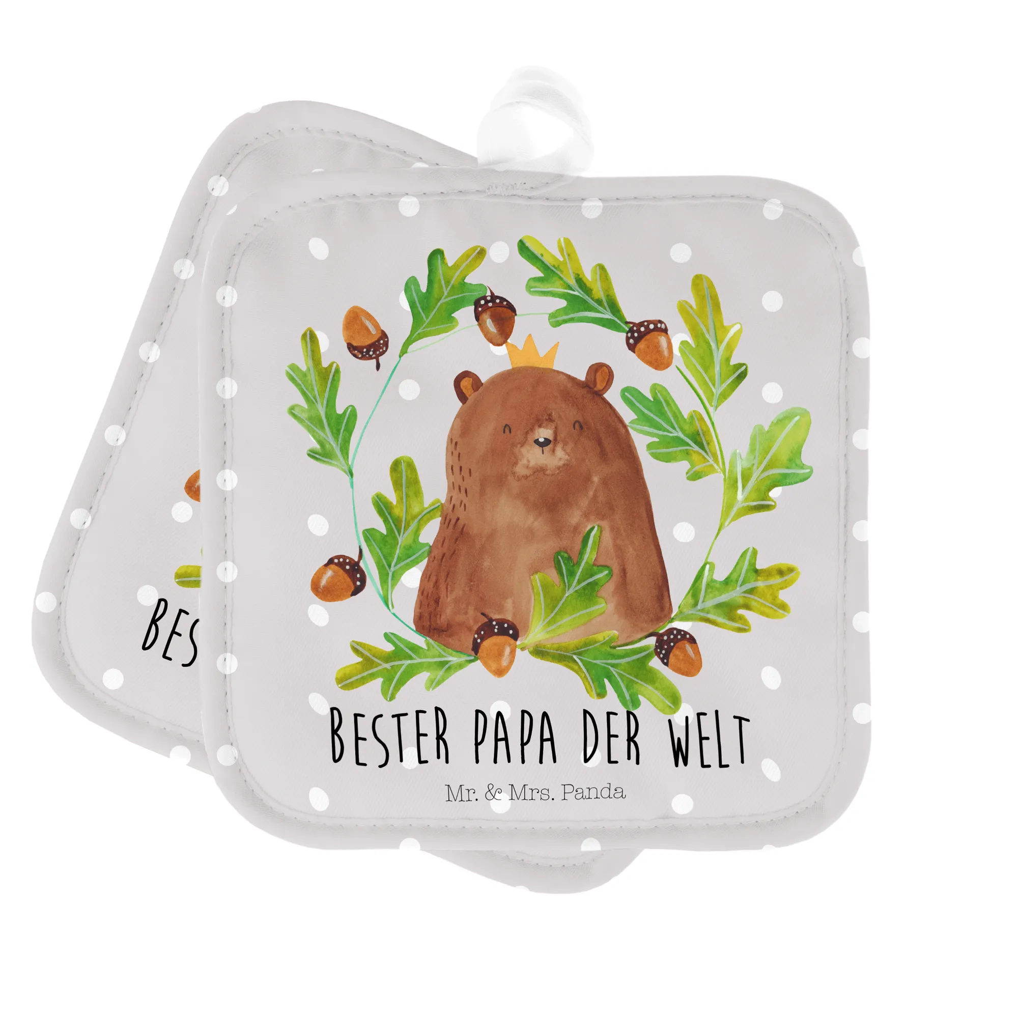 2-elementowy zestaw podkładek pod garnki Niedźwiedź król - z napisem - Pastelowy szary