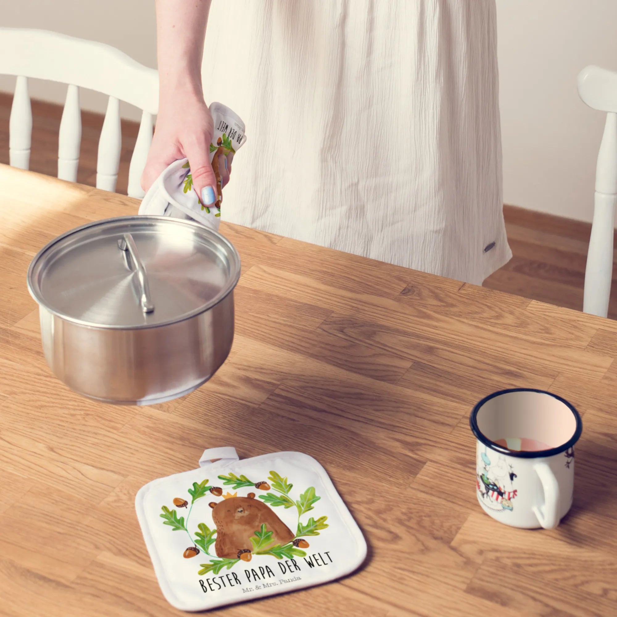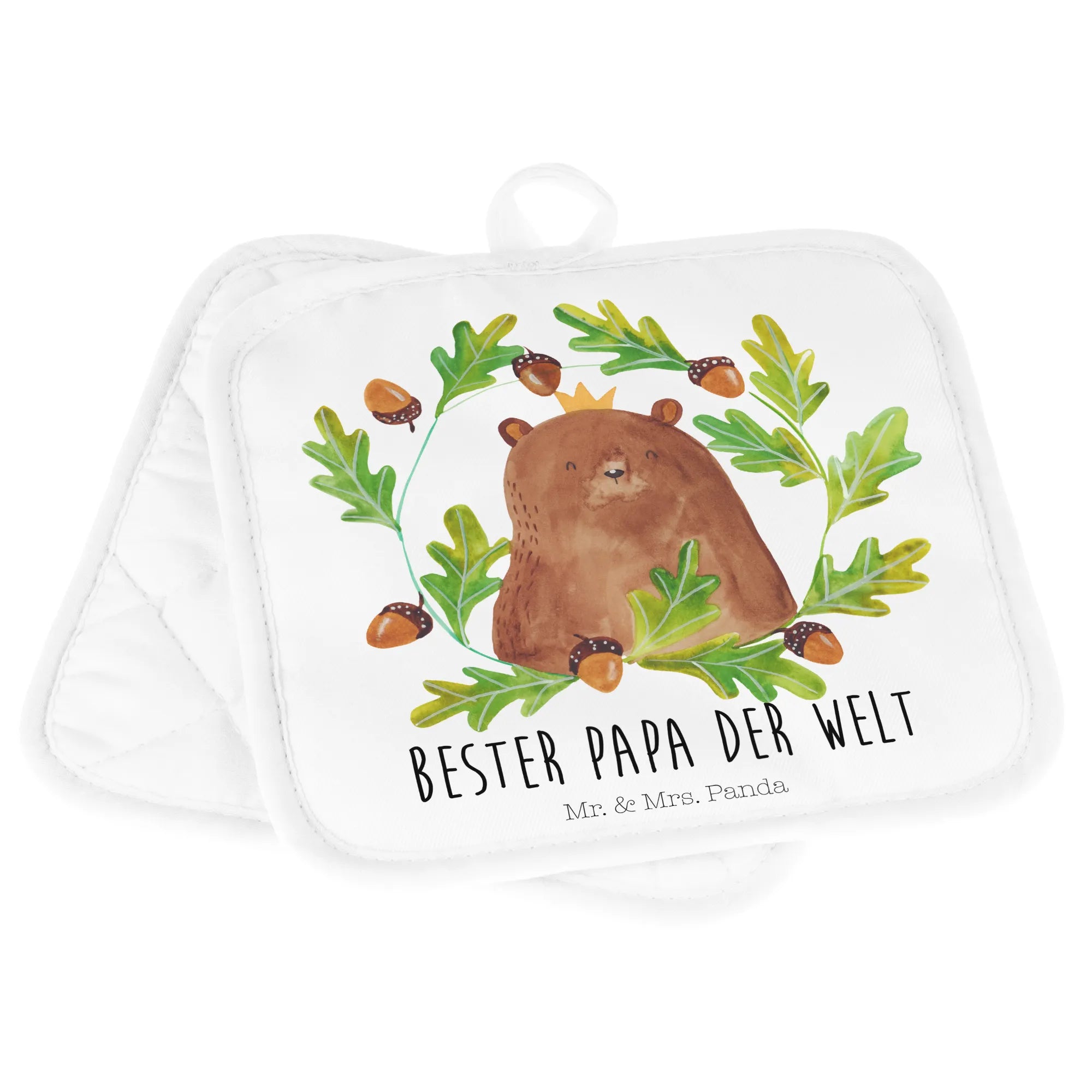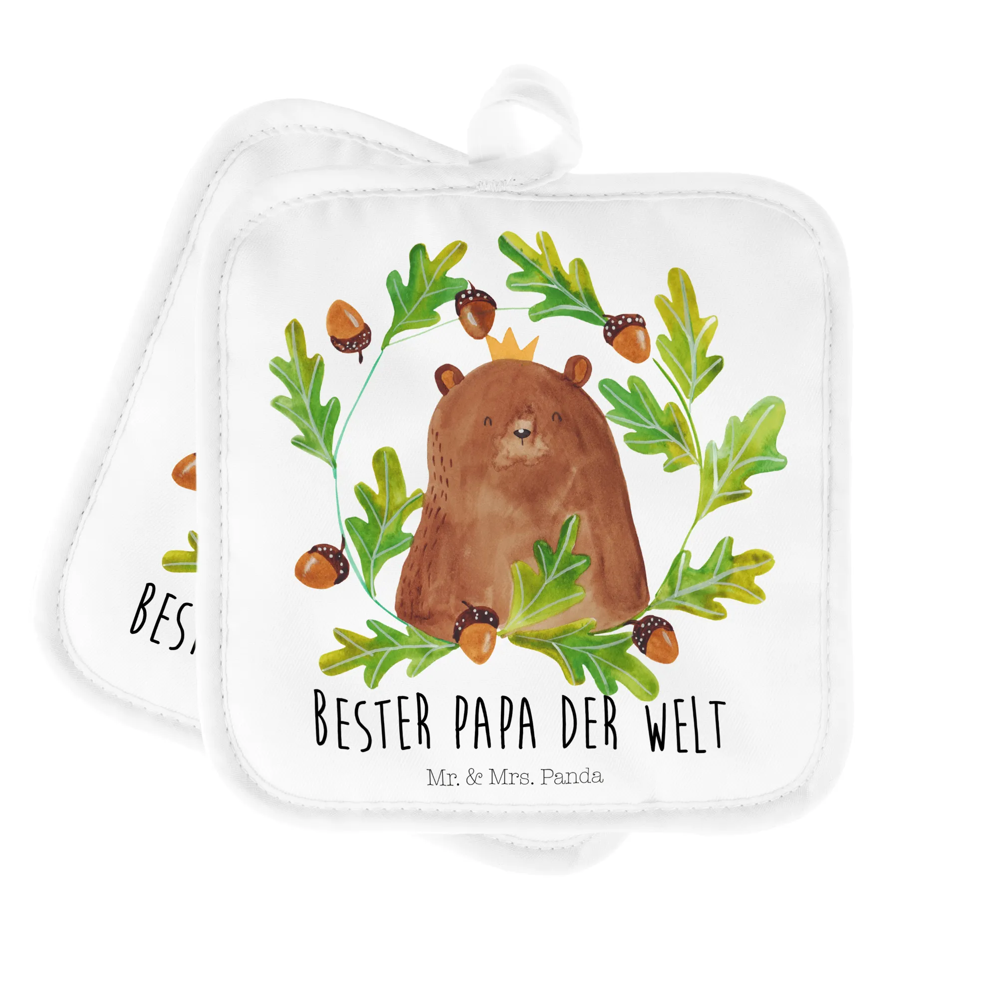 2-elementowy zestaw podkładek pod garnki Niedźwiedź król - z napisem - Pastelowy szary