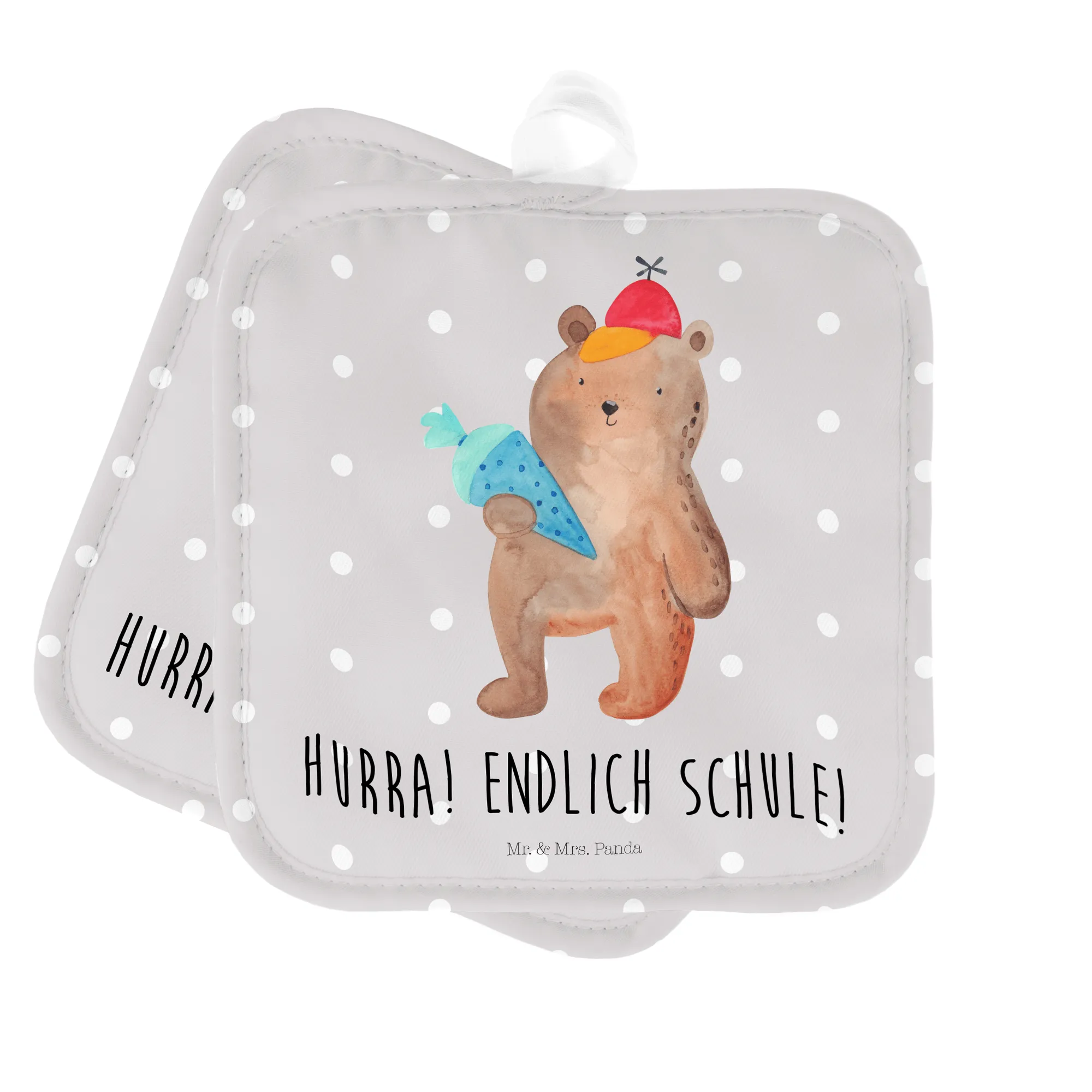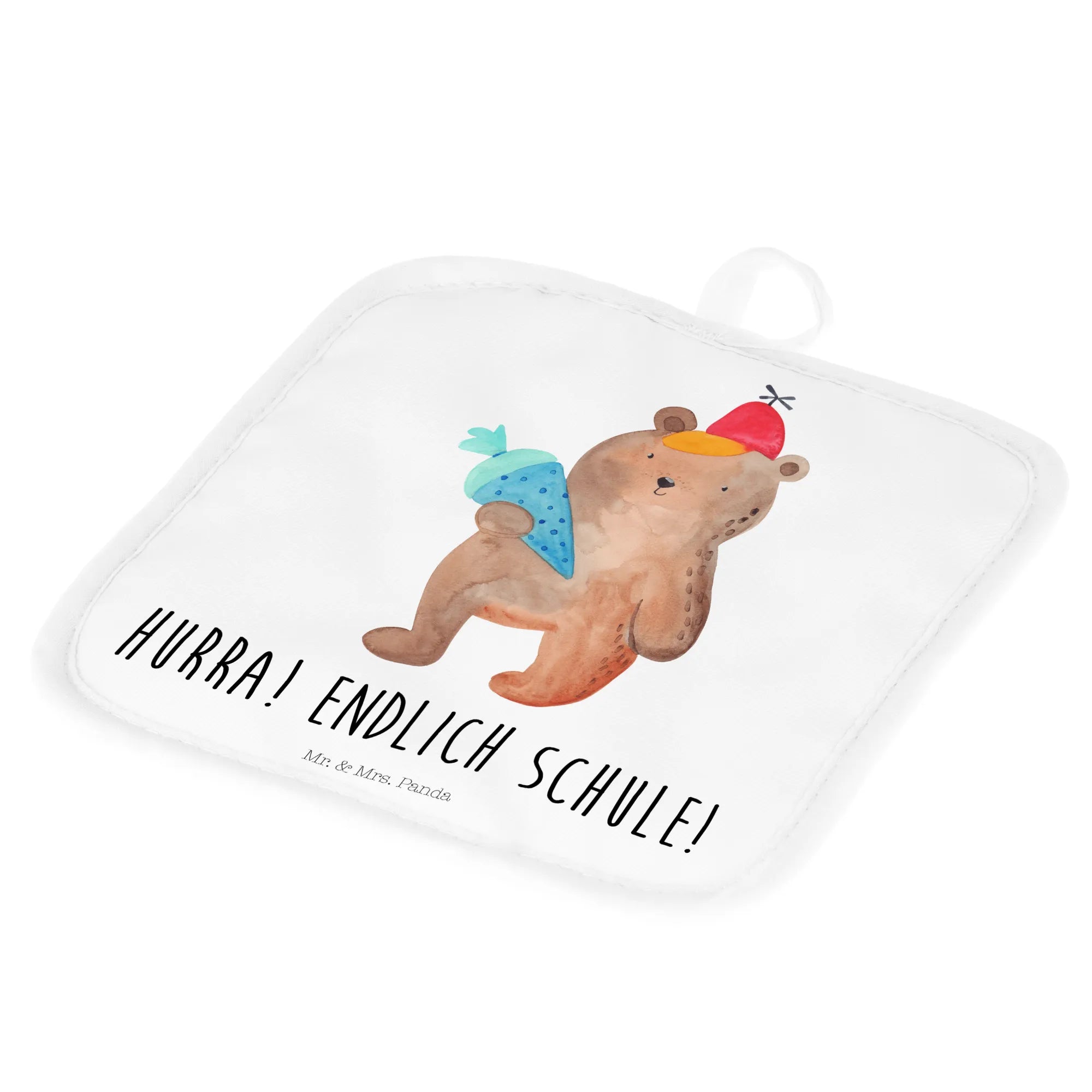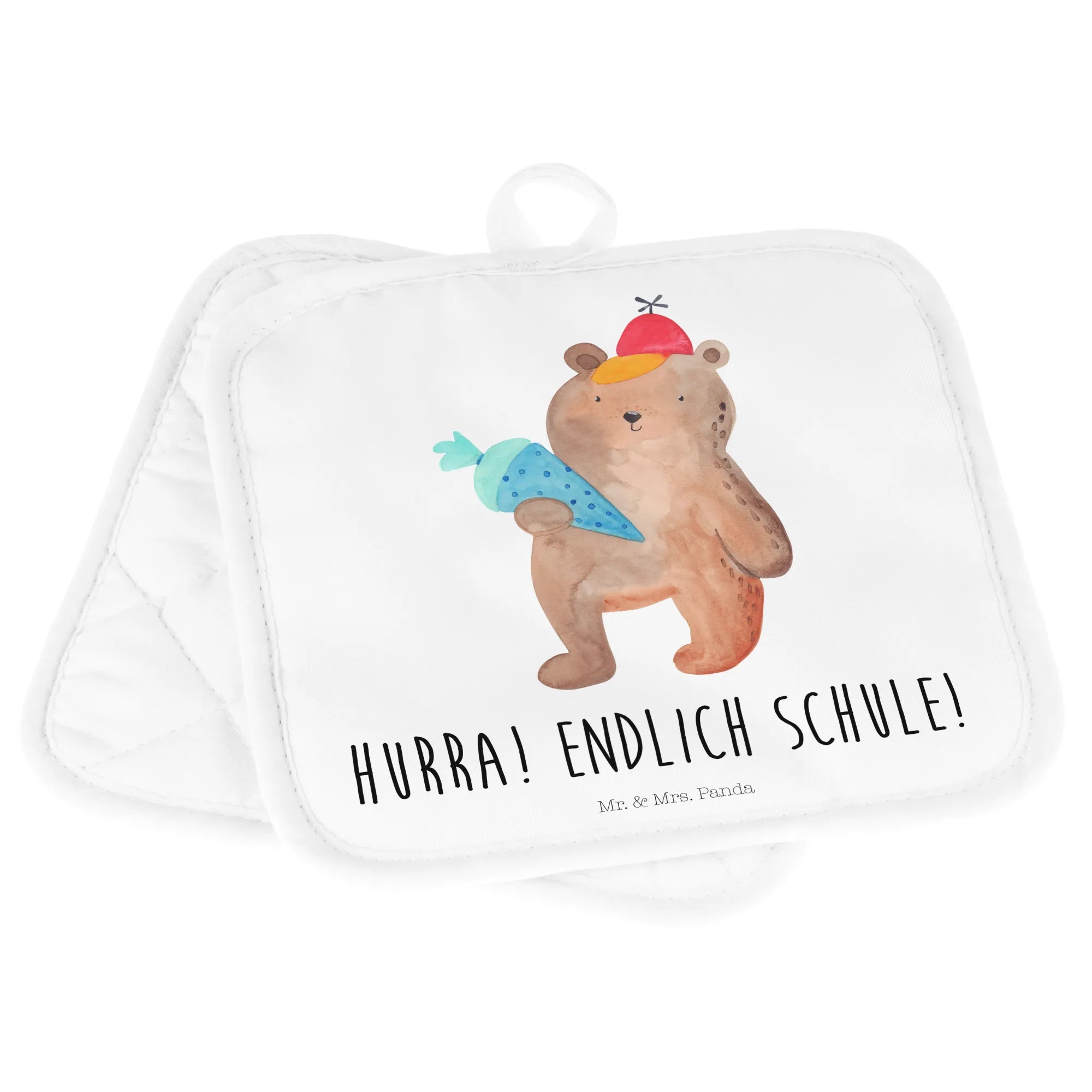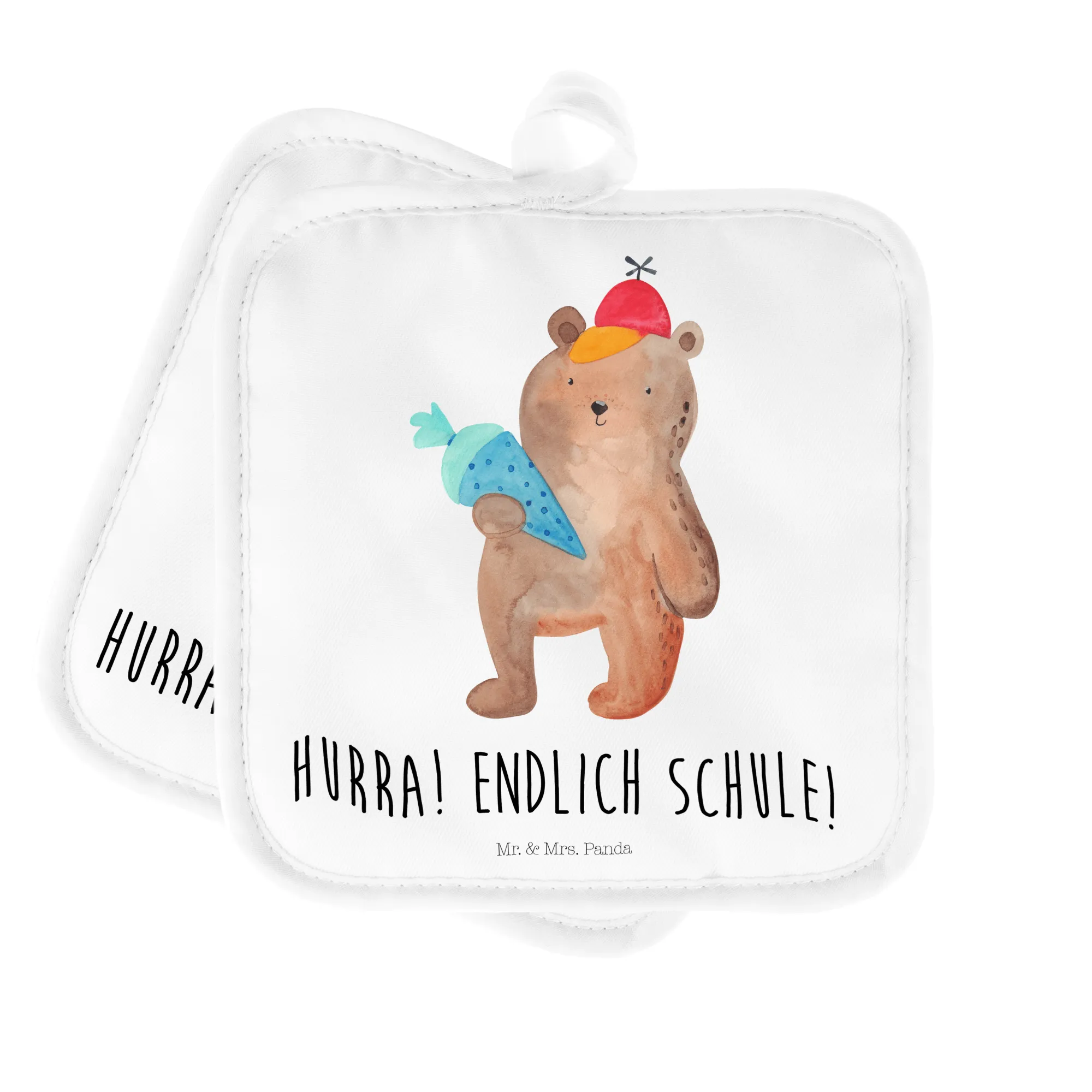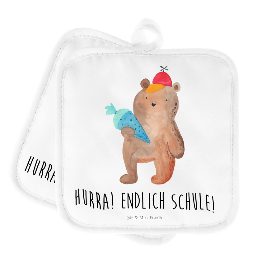 2-elementowy zestaw podkładek pod garnki Niedźwiedź Torebka szkolna - z napisem - biały