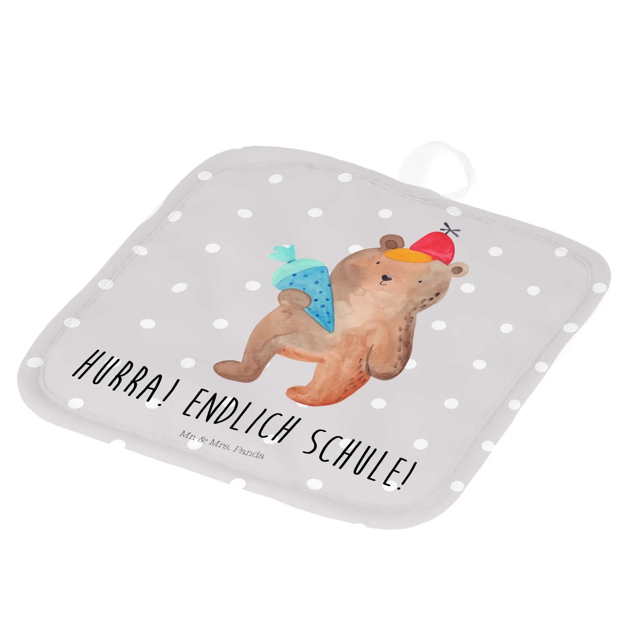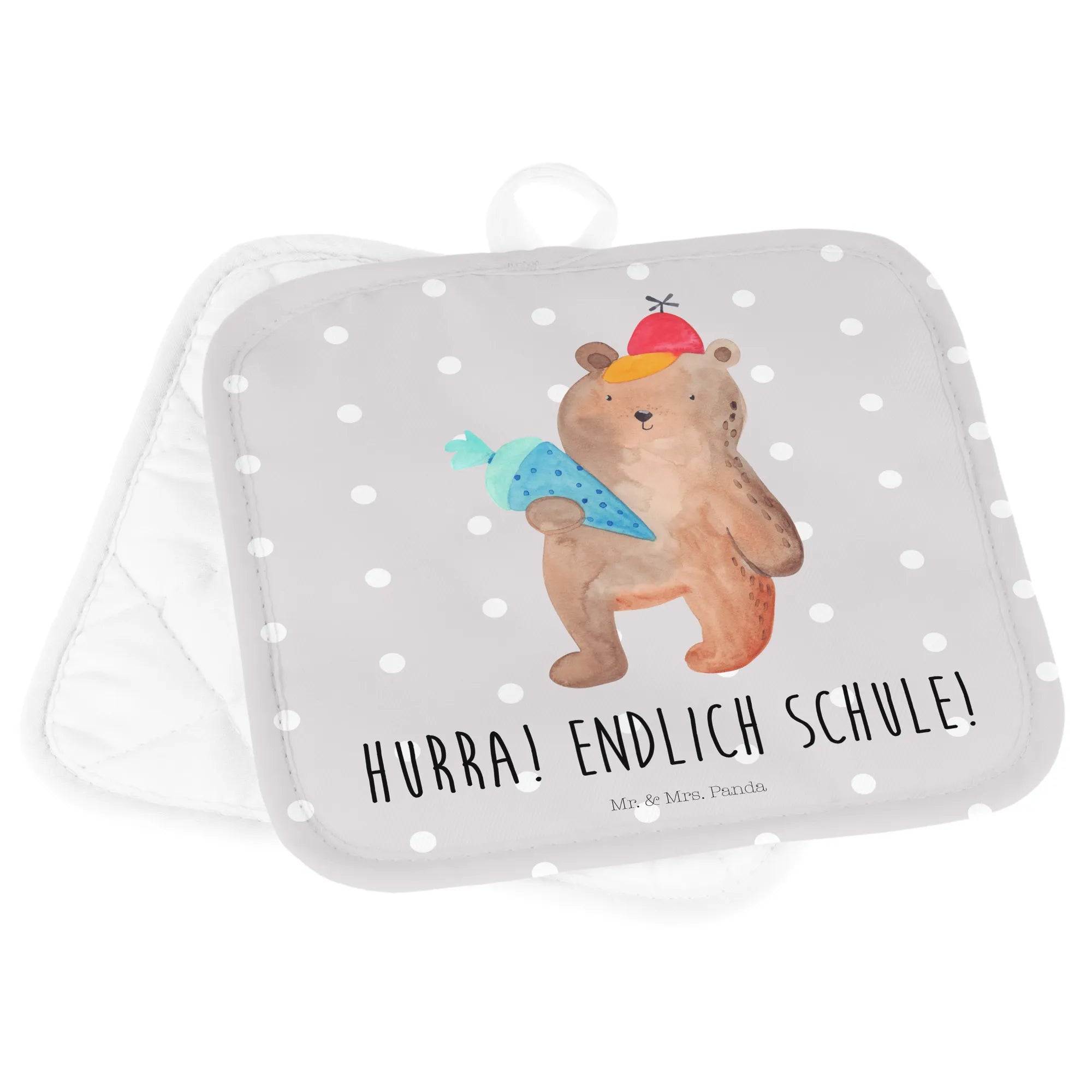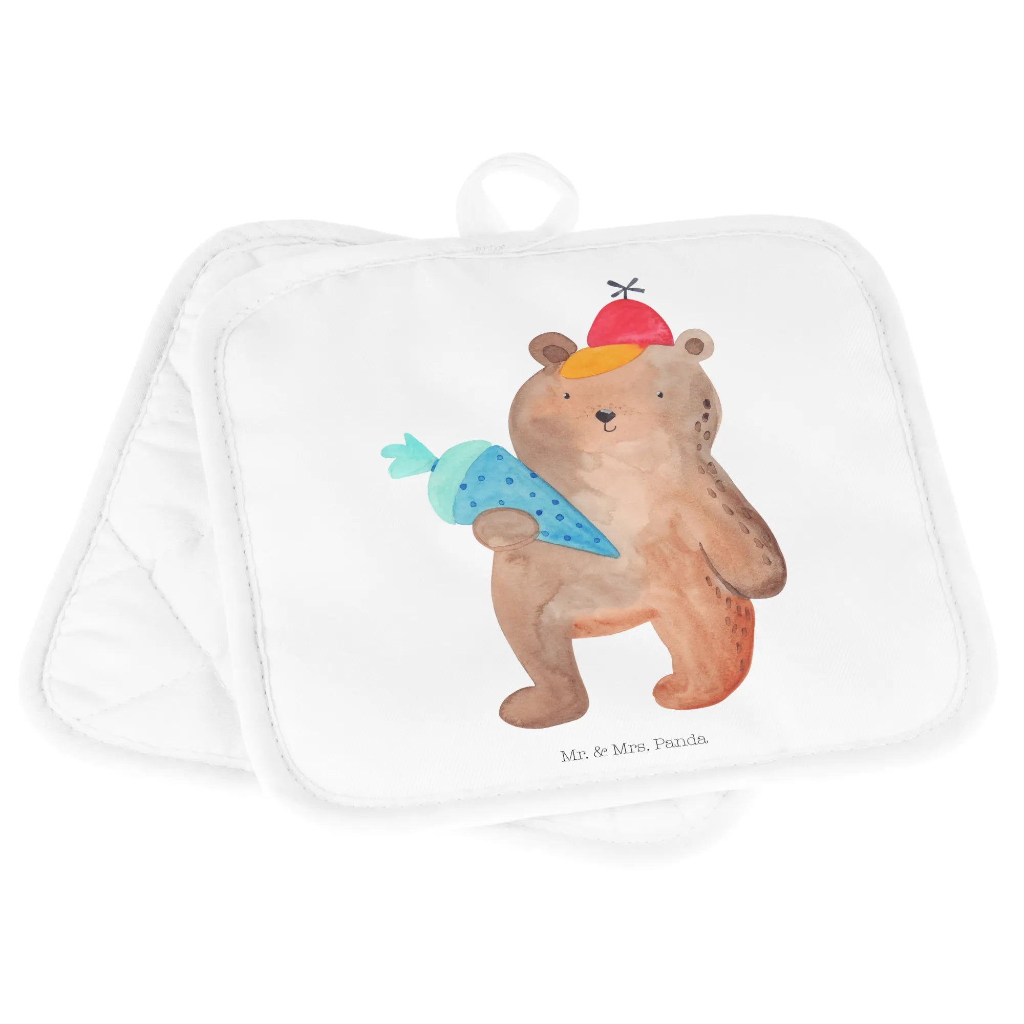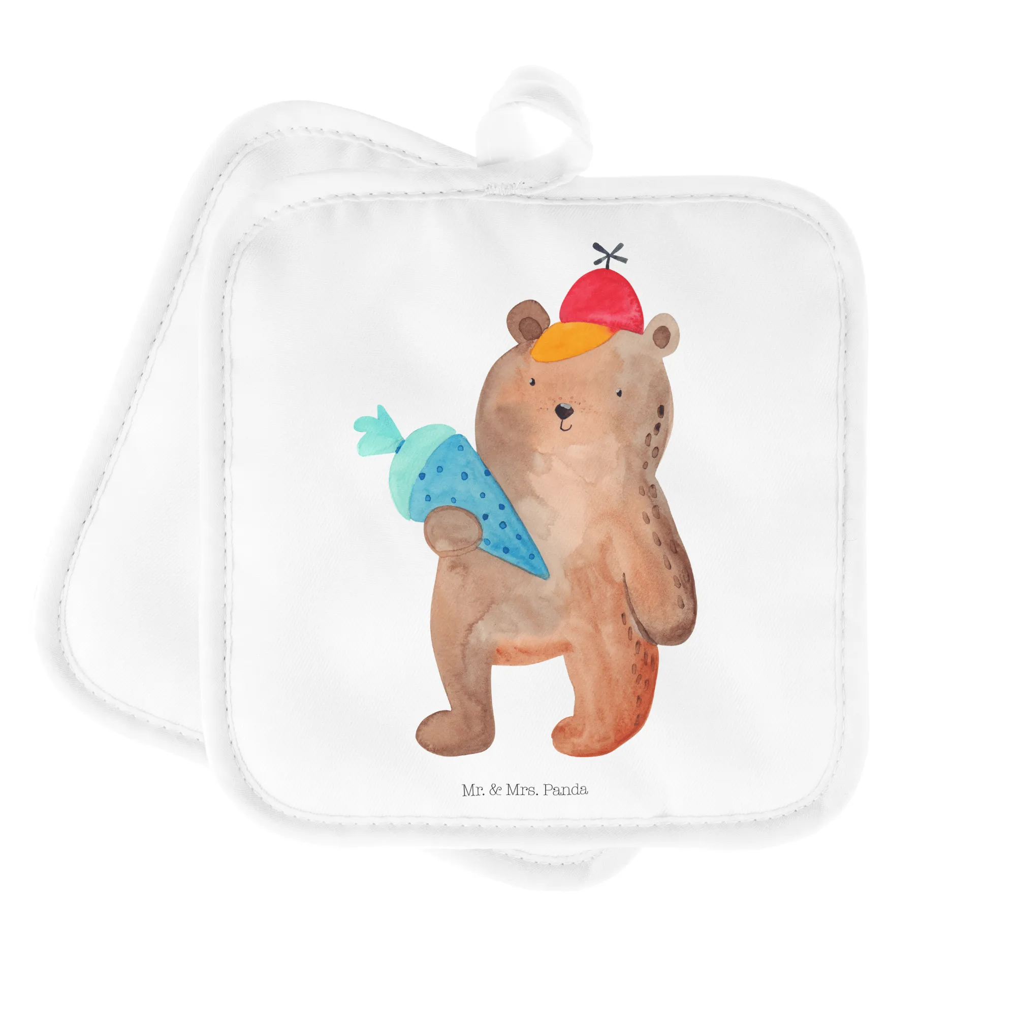 2-elementowy zestaw podkładek pod garnki Niedźwiedź Torebka szkolna - z napisem - biały
