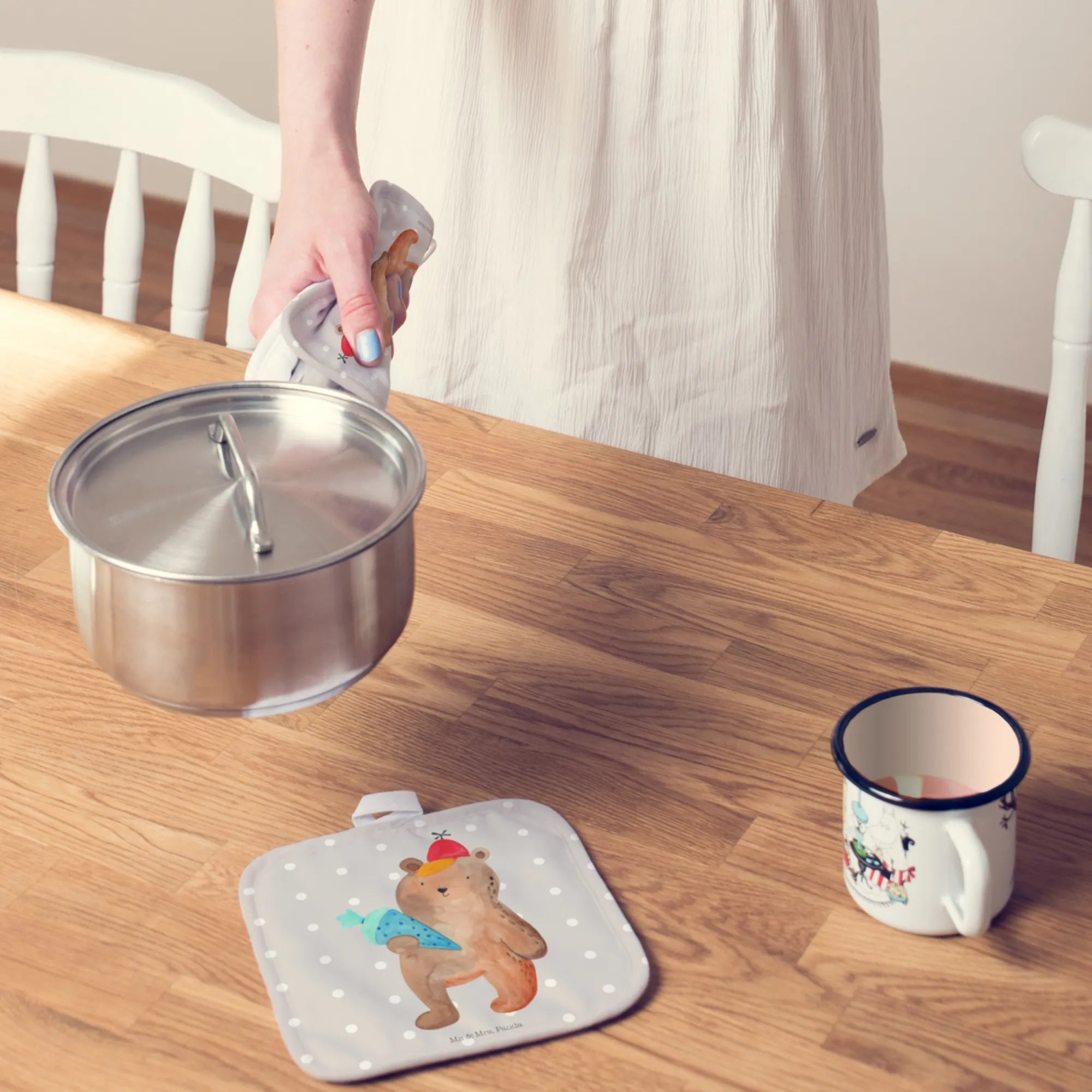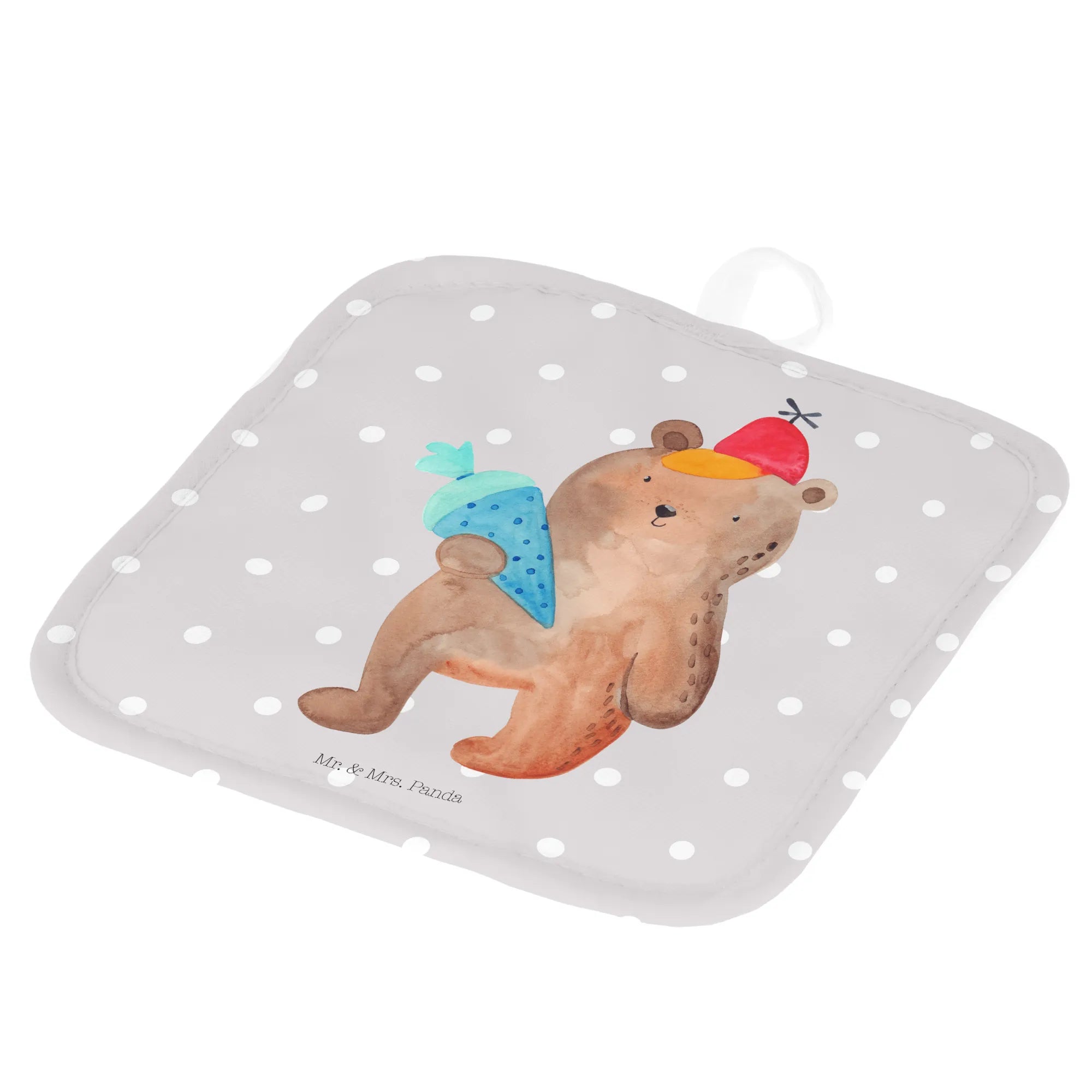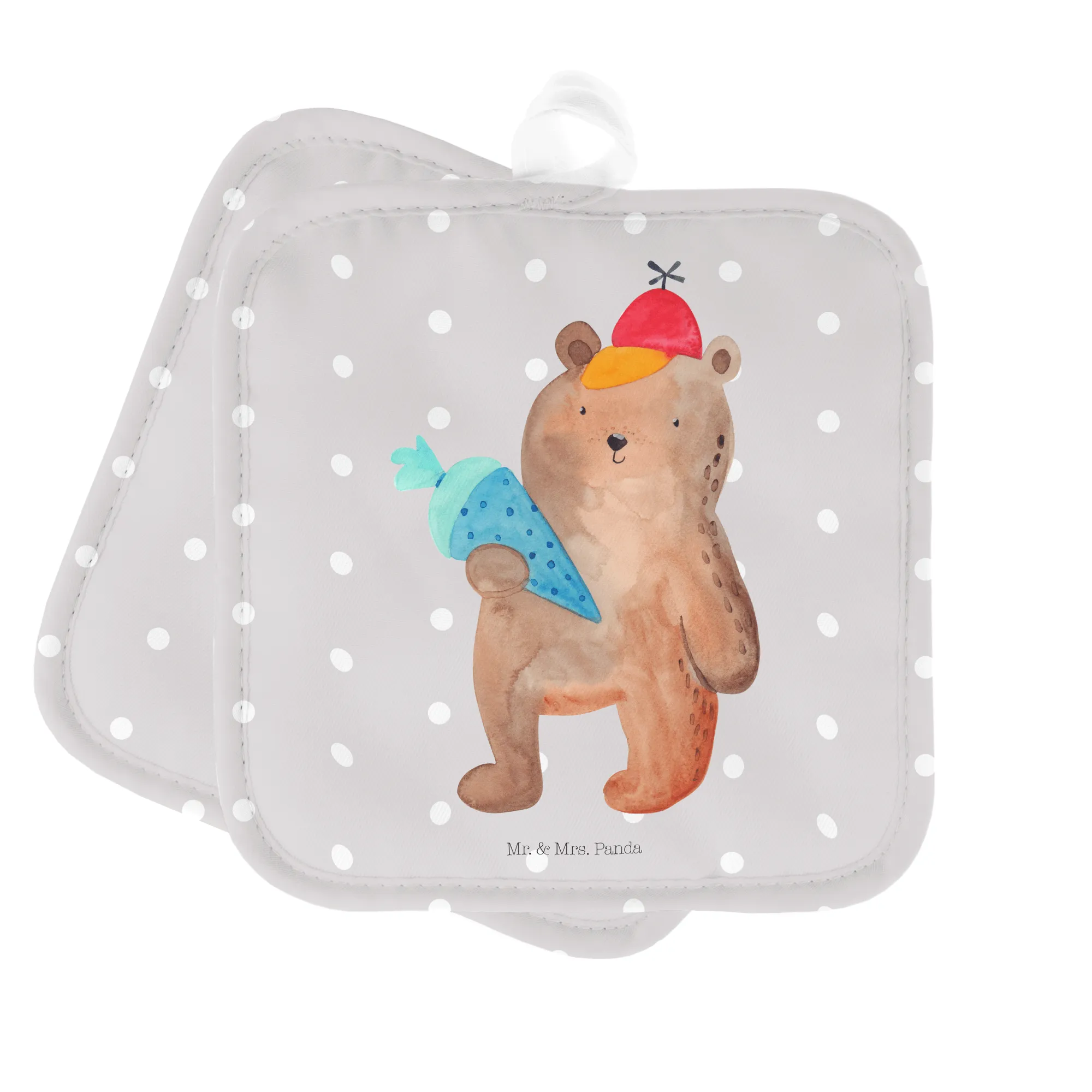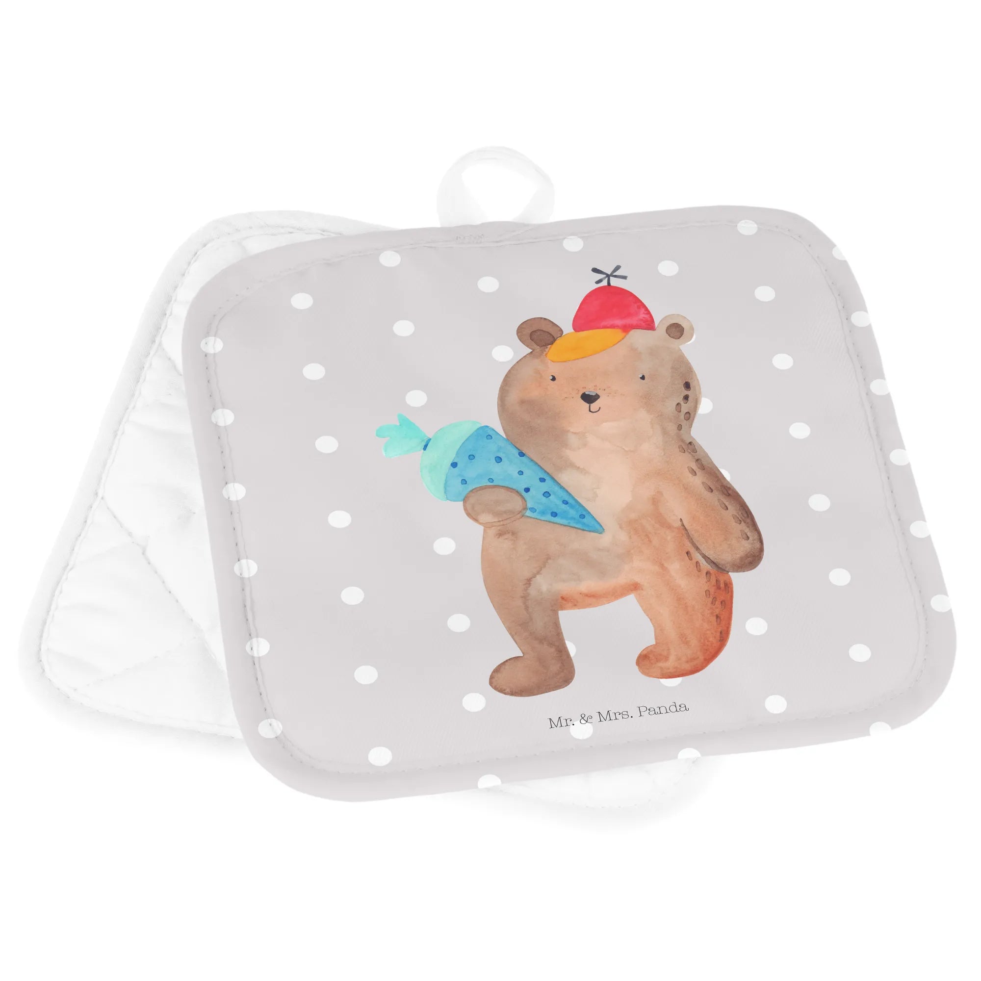 2-elementowy zestaw podkładek pod garnki Niedźwiedź Torebka szkolna - z napisem - biały