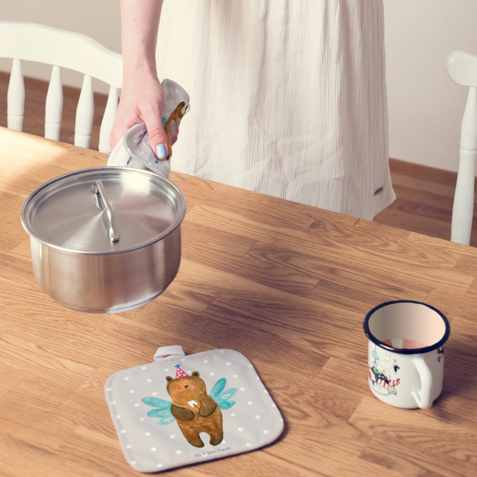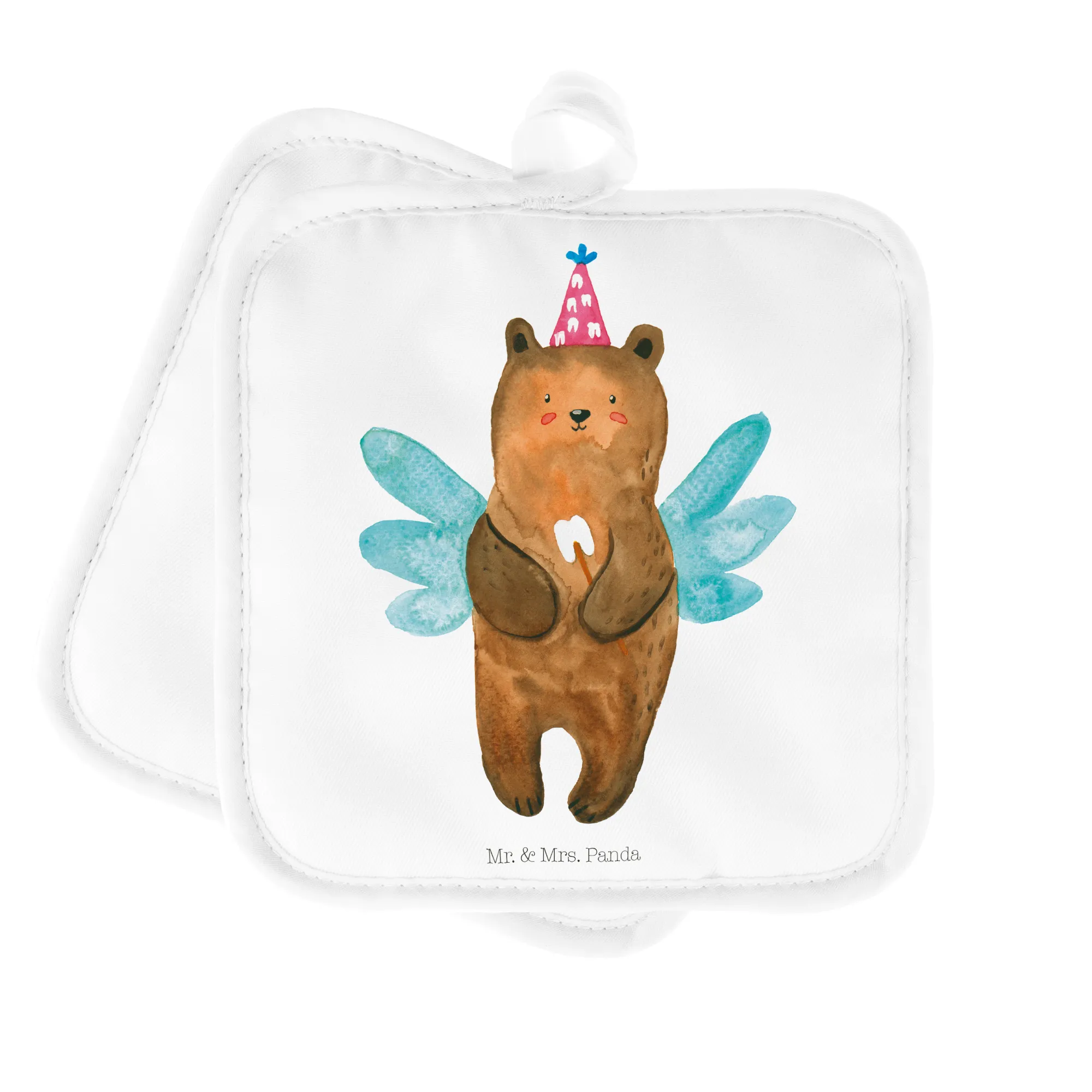 2-elementowy zestaw podkładek pod garnki niedźwiedź Wróżka zębów - z napisem - Pastelowy szary