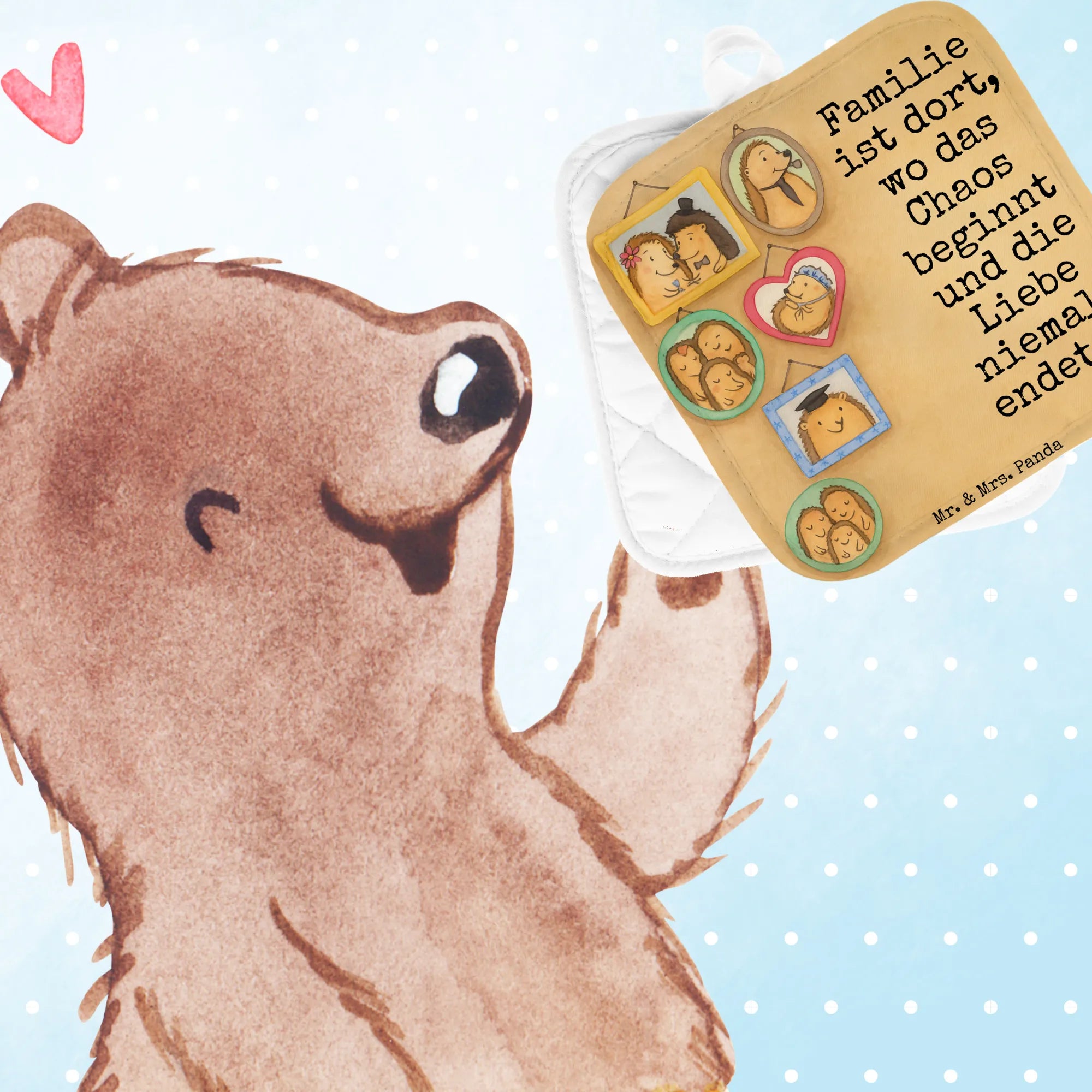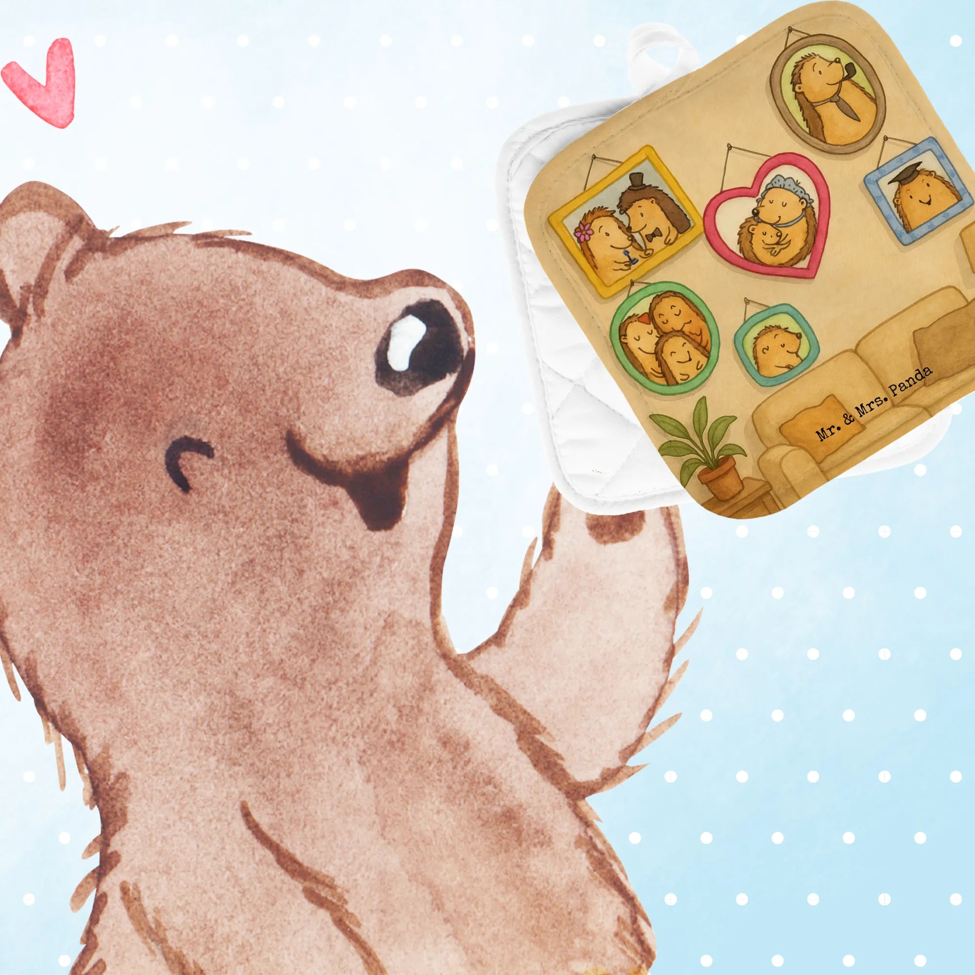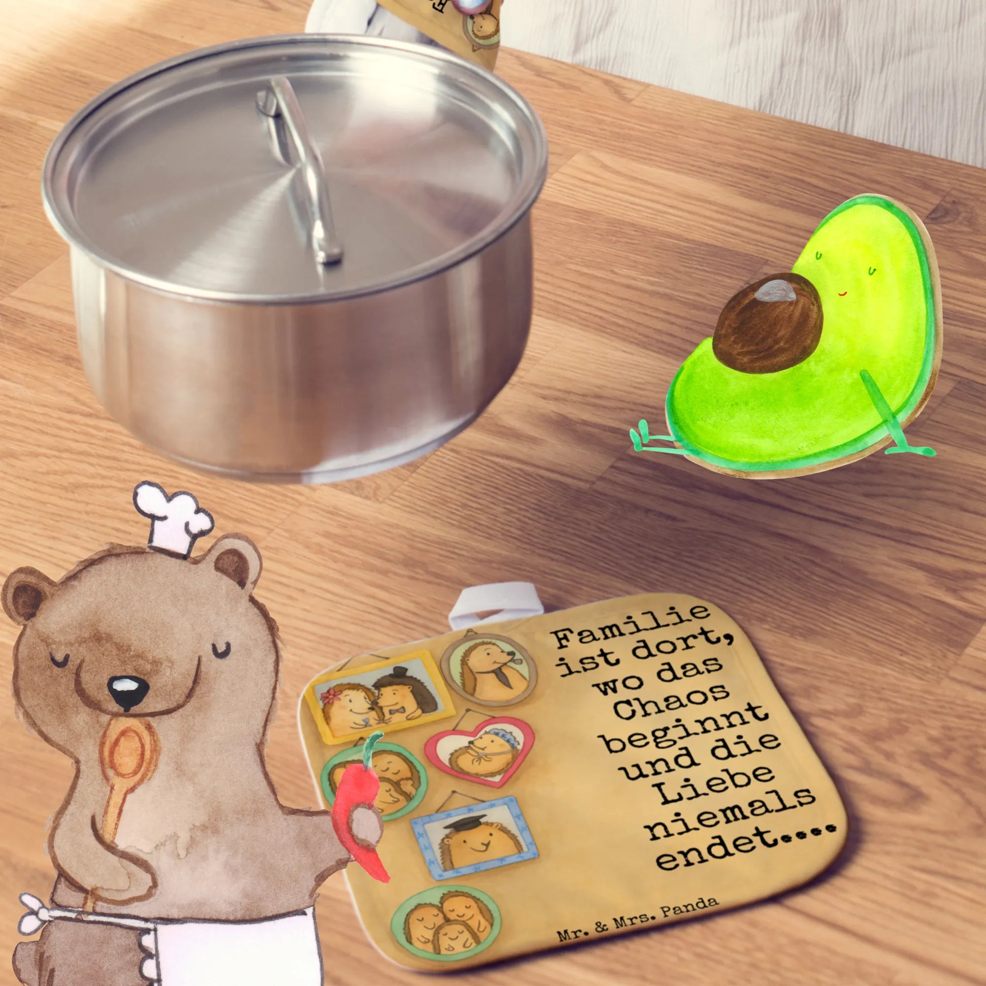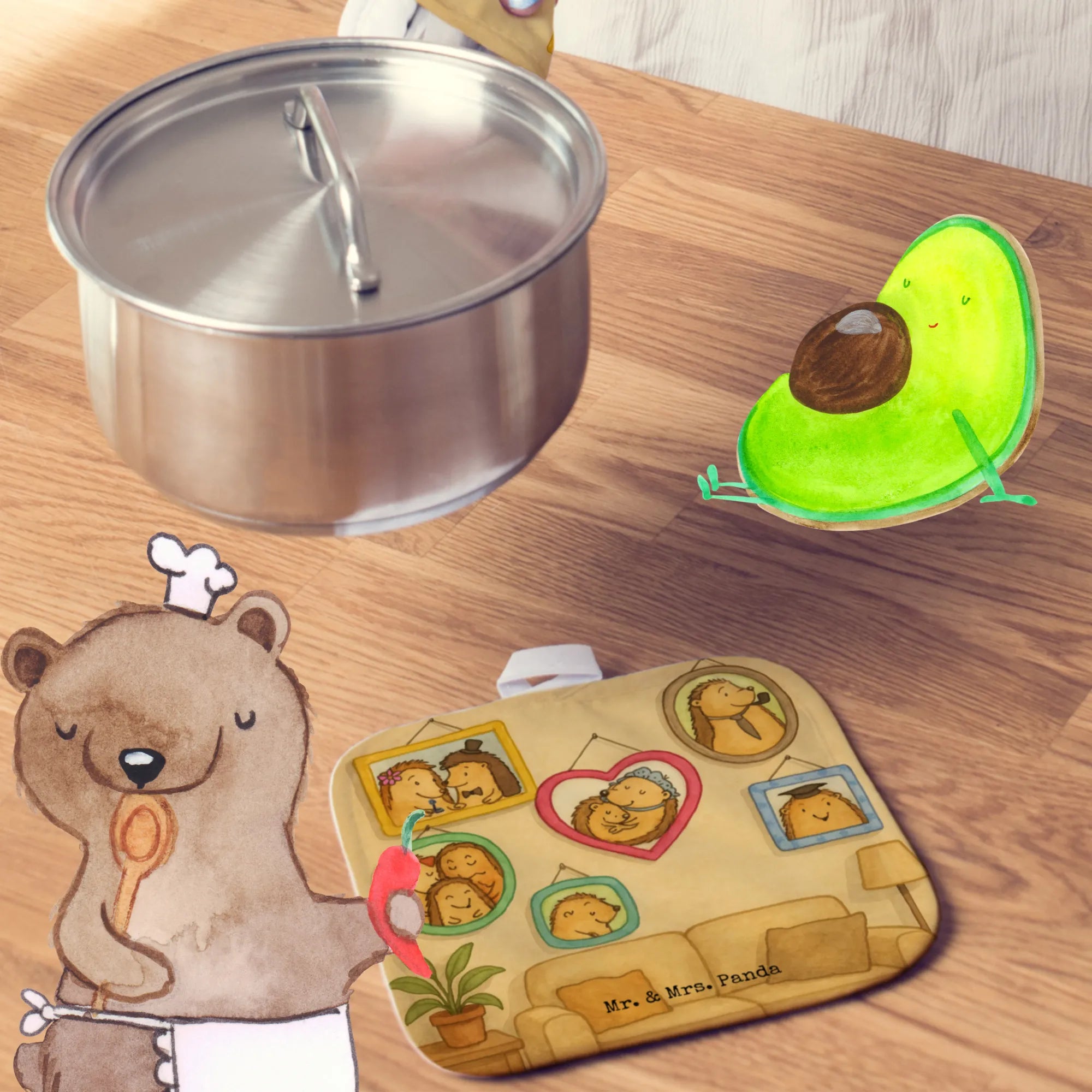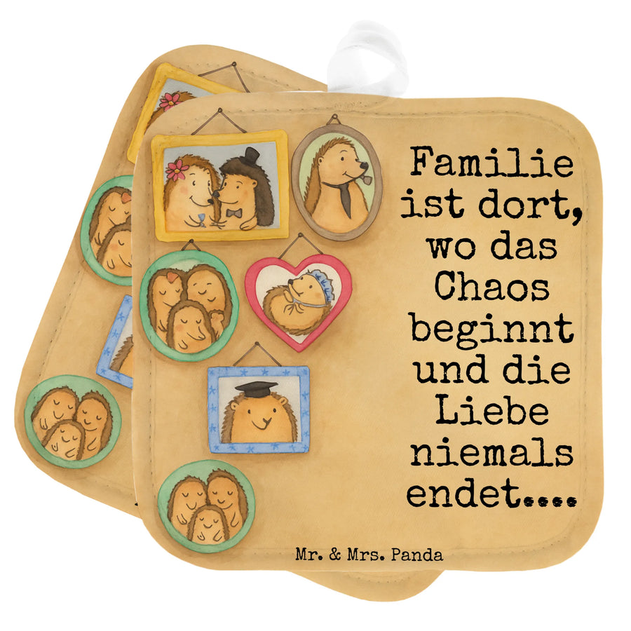 2-elementowy zestaw podkładek pod garnki Rodzina jeży Design - z napisem