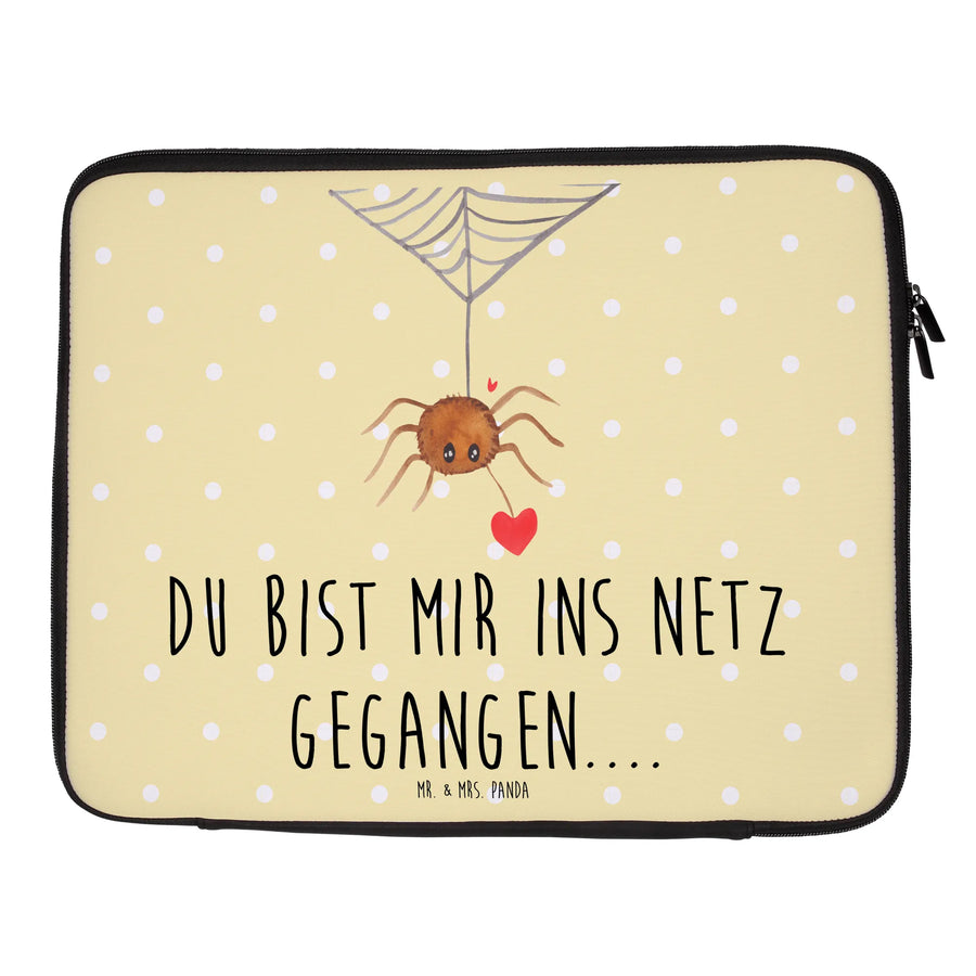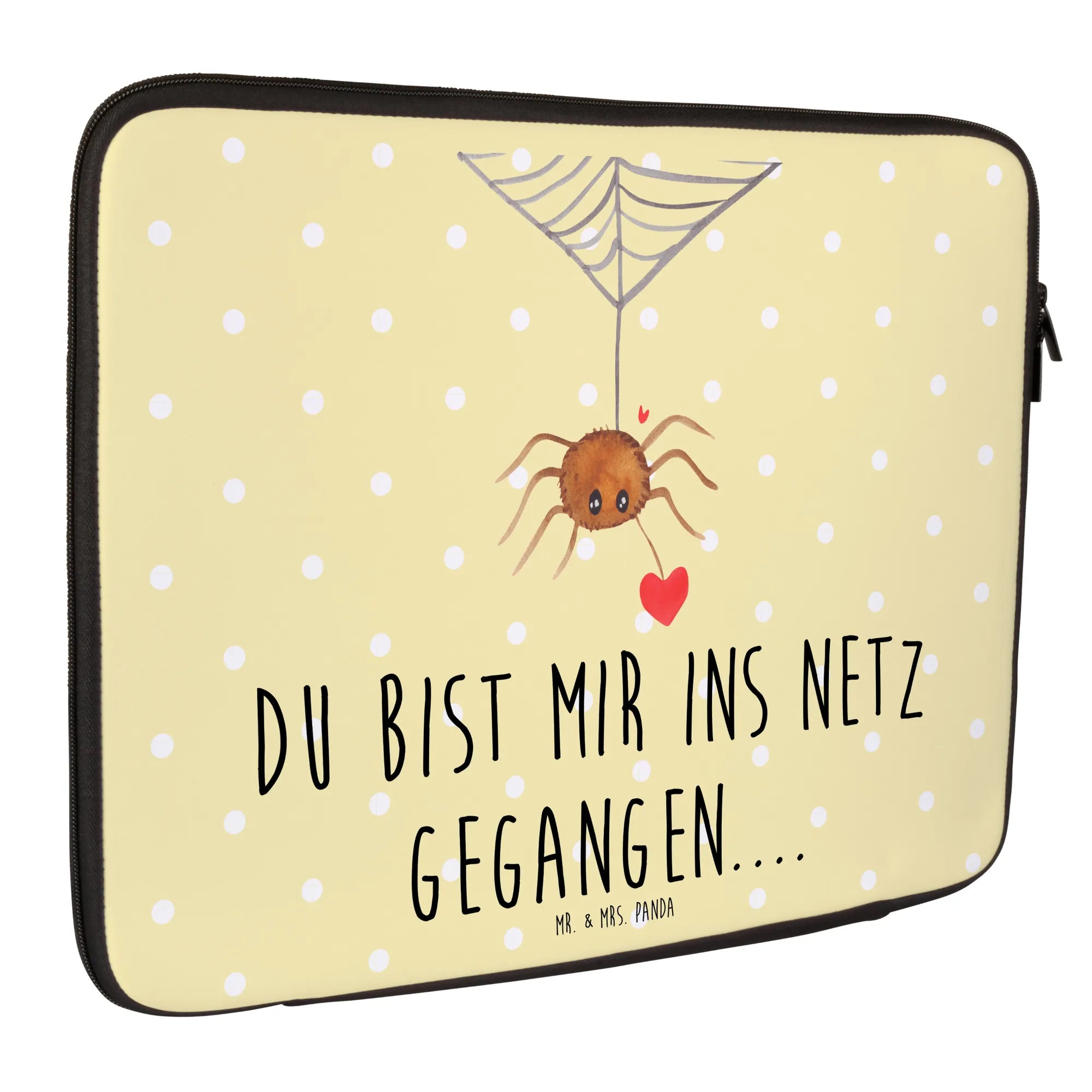 Die Notebook Tasche Spinne Agathe Liebe von Mr. & Mrs. Panda ist der perfekte Begleiter für alle, die ihre technischen Geräte stilvoll und sicher transportieren möchten. Das zauberhafte Motiv von Agathe, der liebenden Spinne, bringt eine süße Note in deinen Alltag und erinnert dich stets daran, dass Liebe in den kleinsten Dingen zu finden ist.