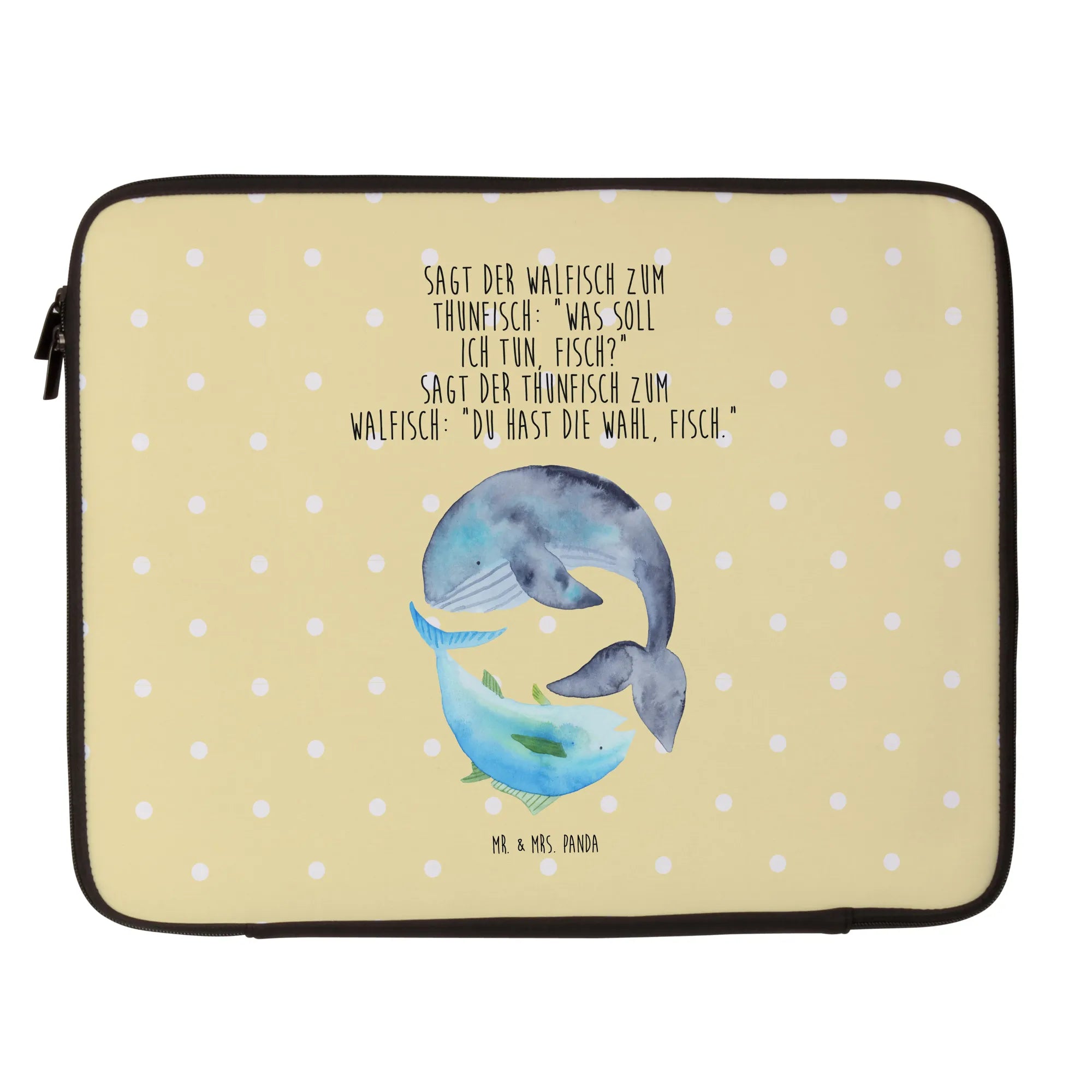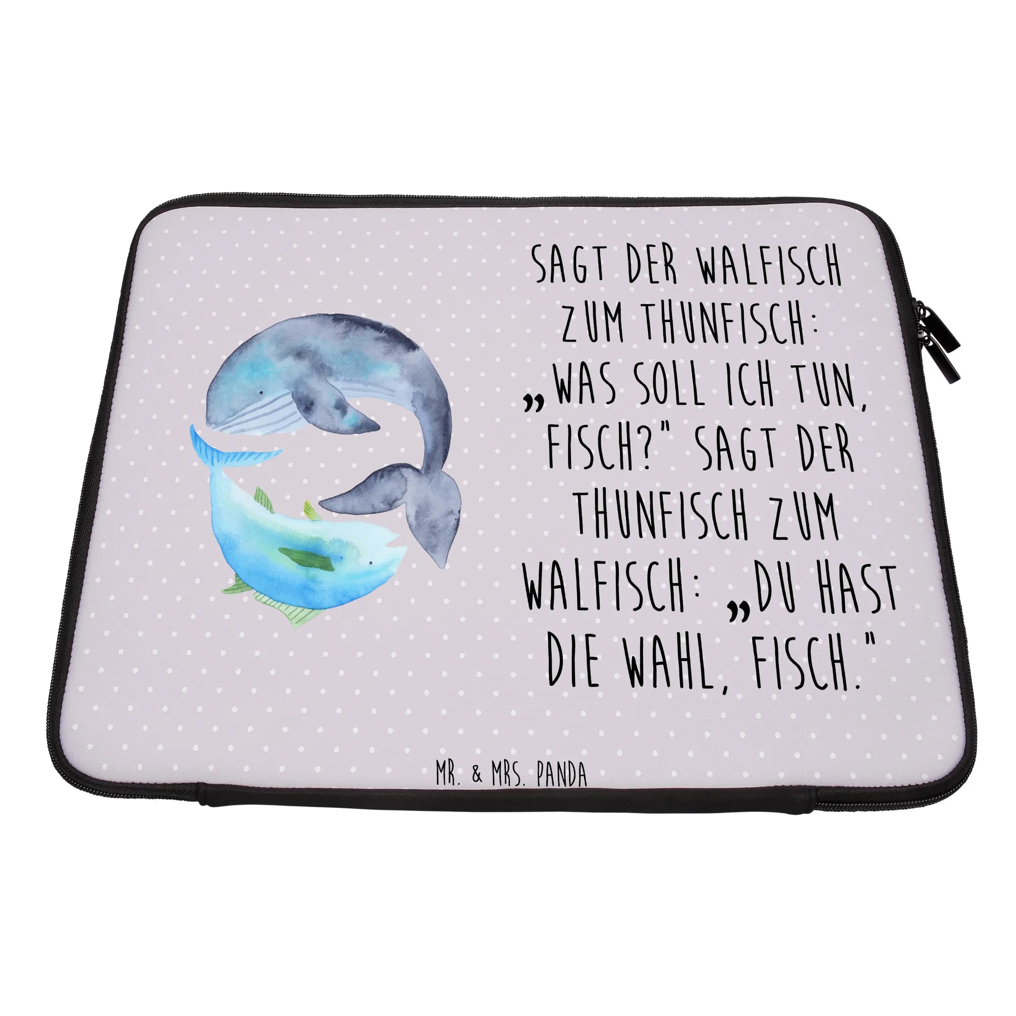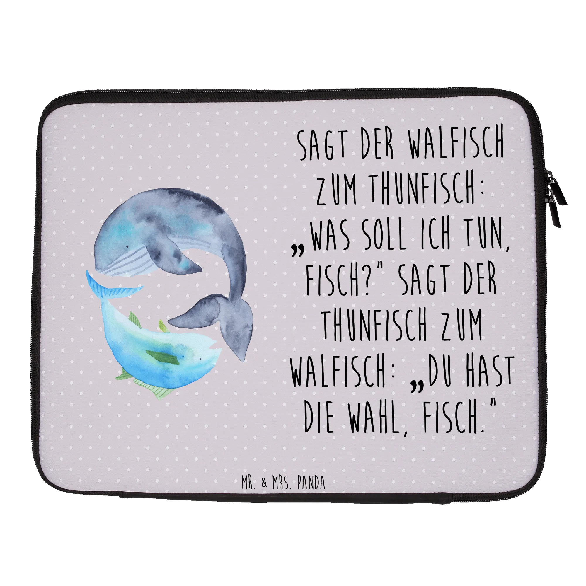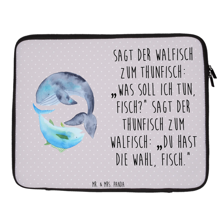 Torba na laptop wieloryb tuńczyk - 33 x 42 cm - z napisem - Szary Pastel