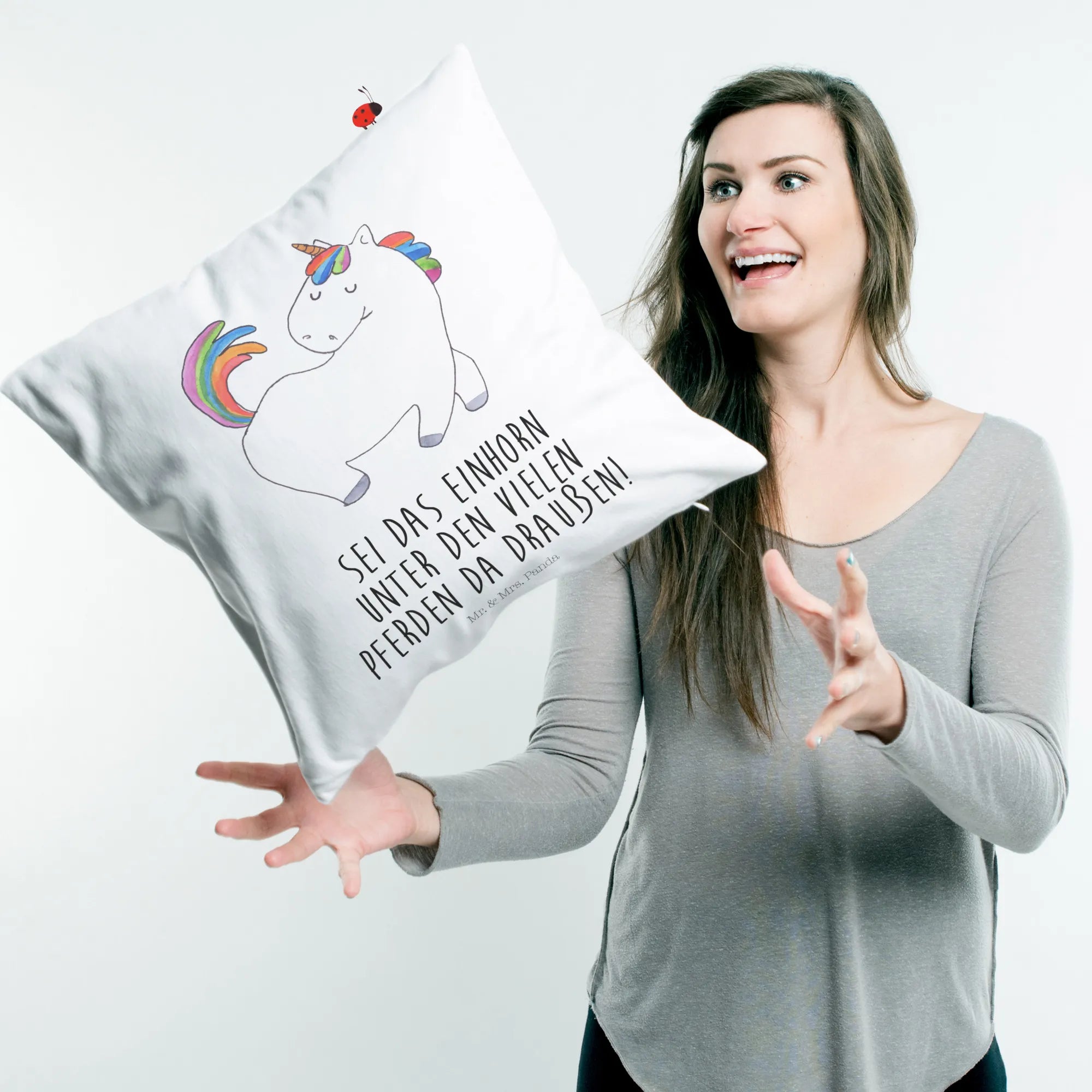 40x40 poduszka jednorożec dumnie kroczyć - z napisem - biały