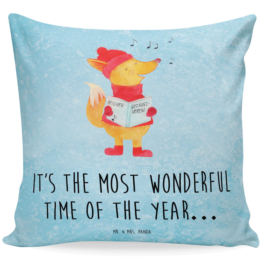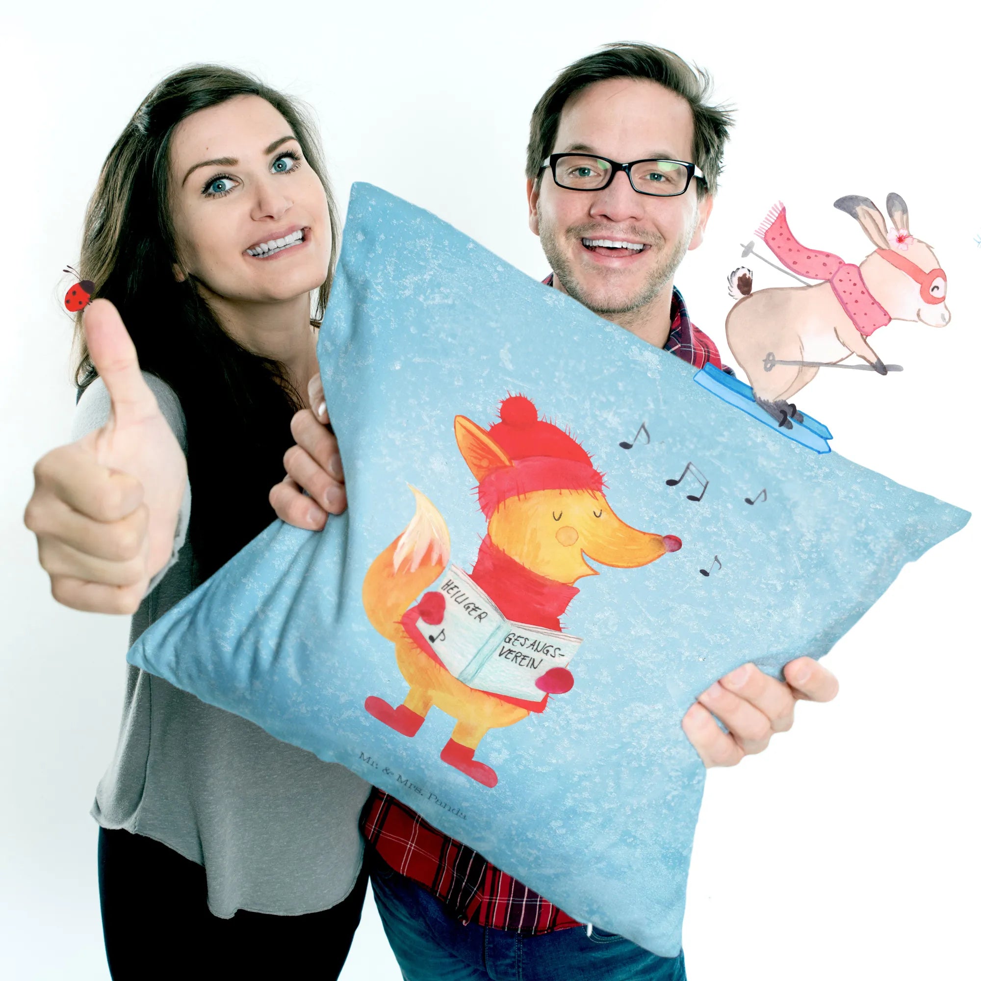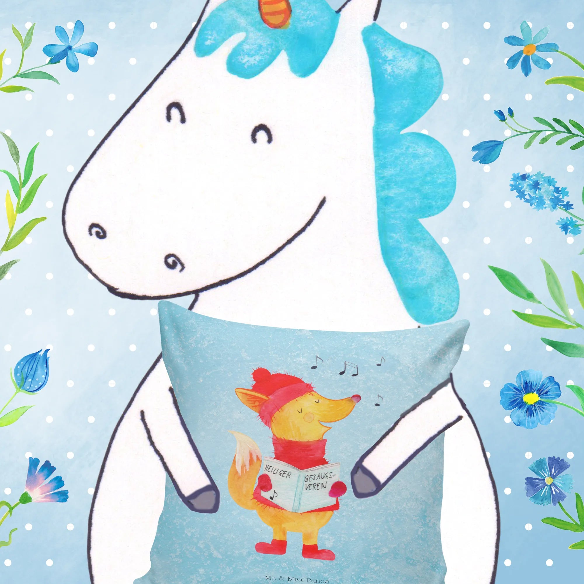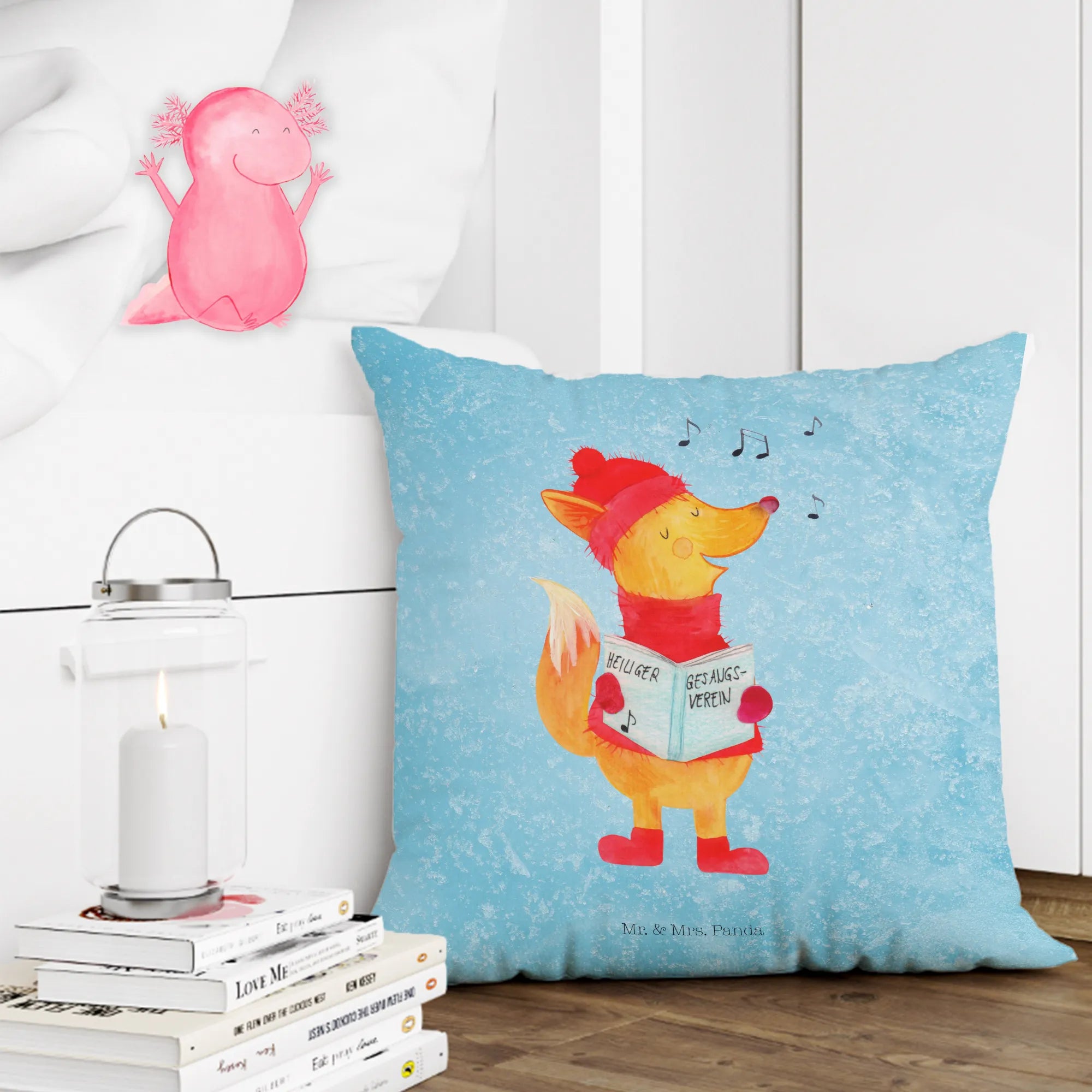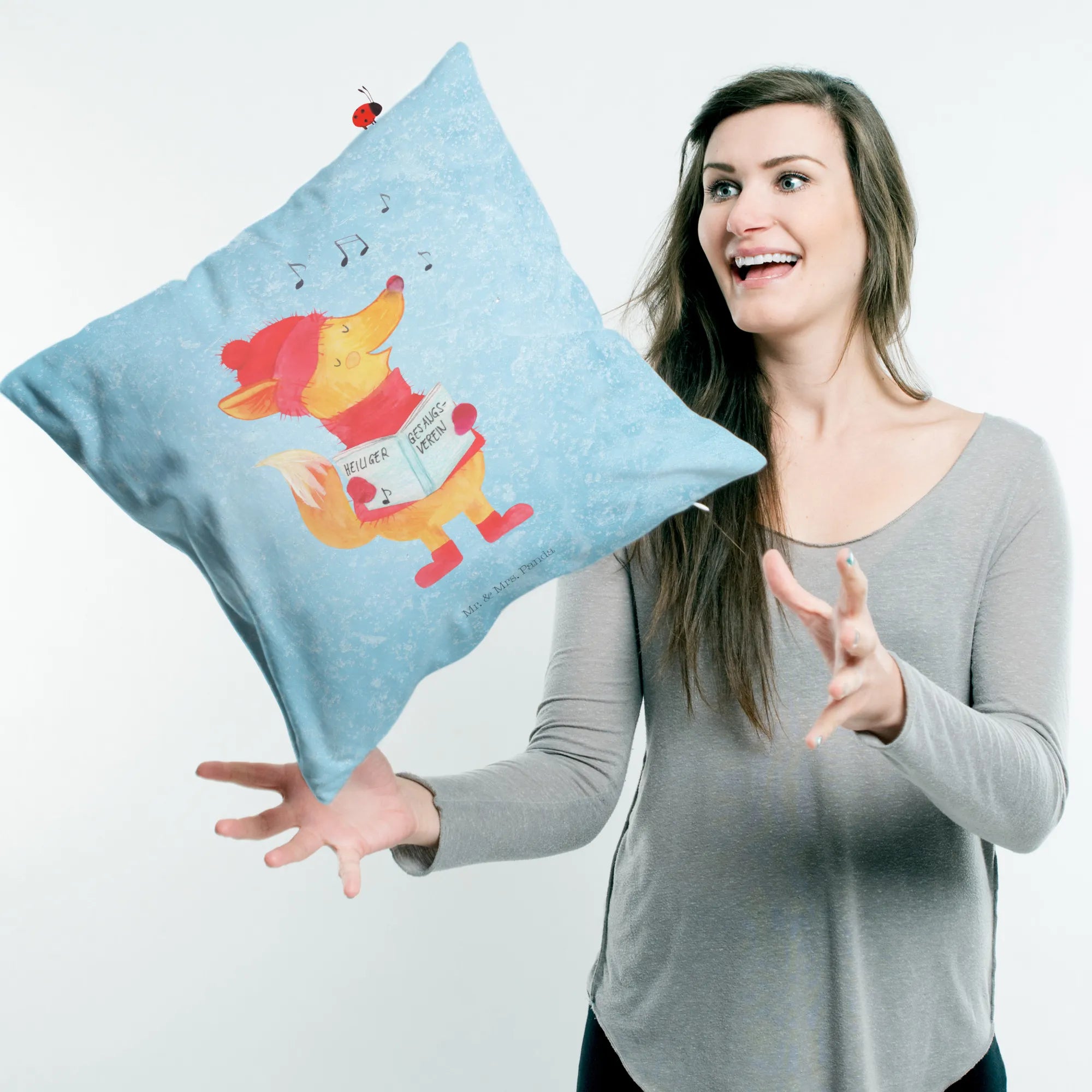 40x40 poduszka lis Śpiewak - z napisem - lodowoniebieski