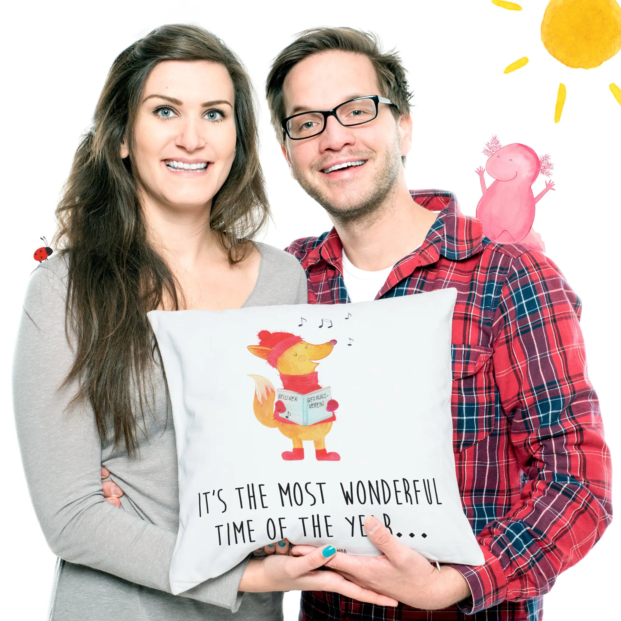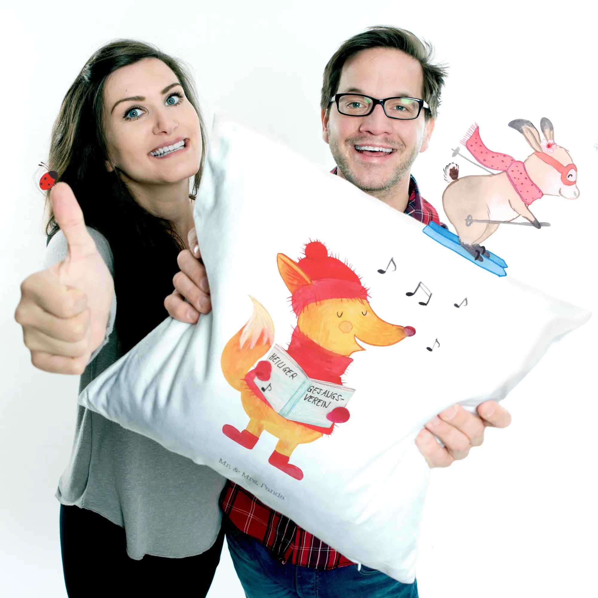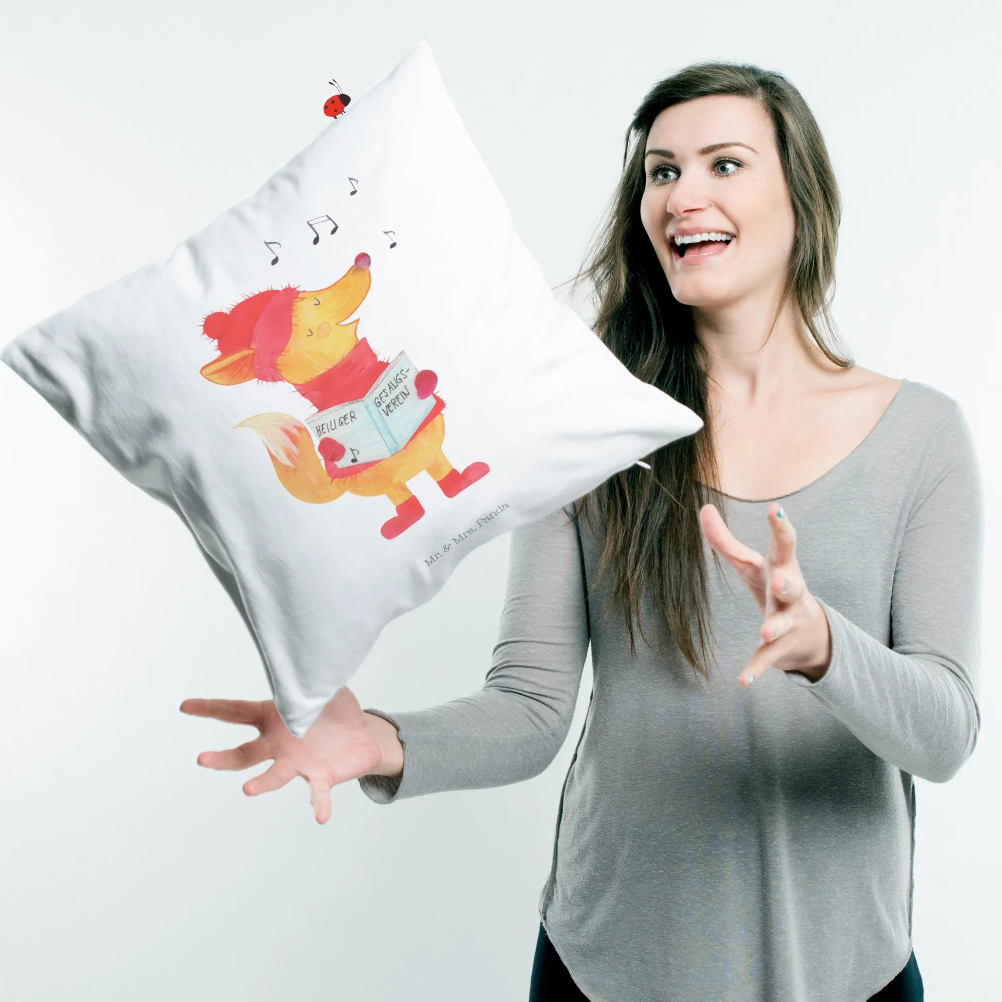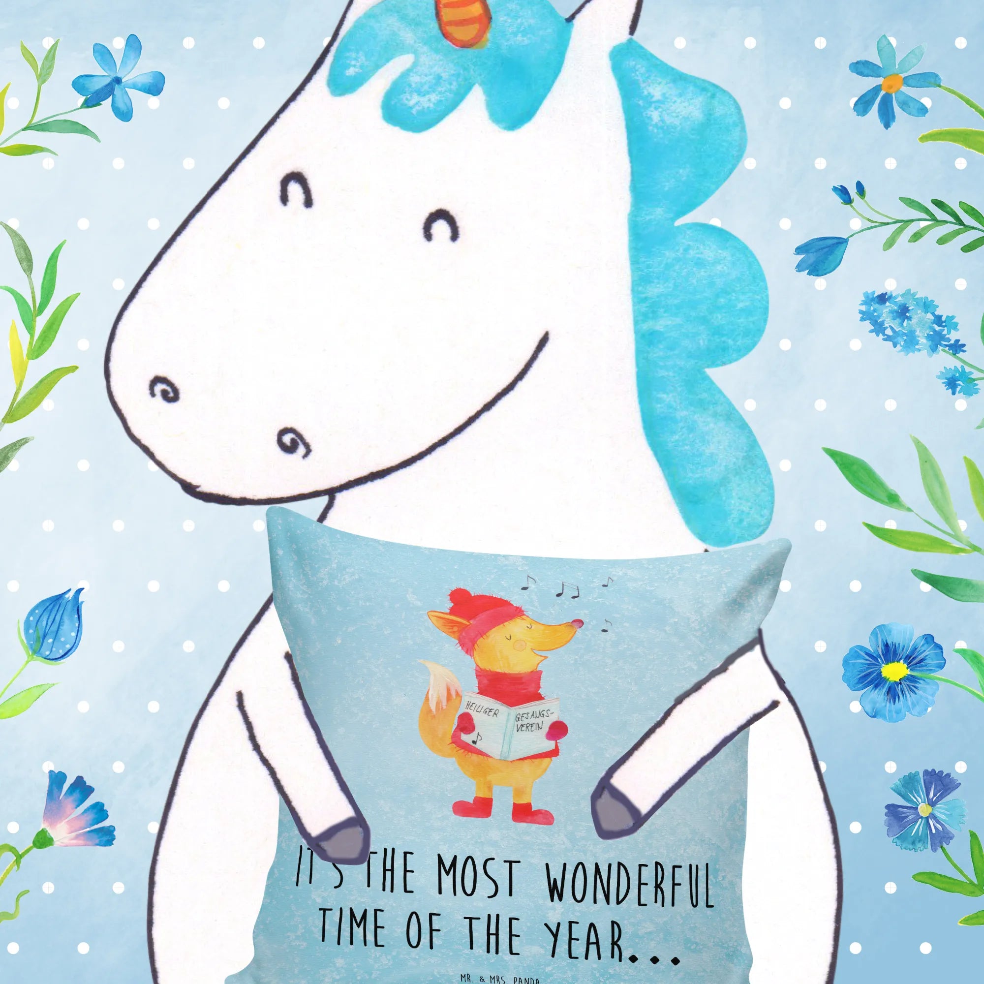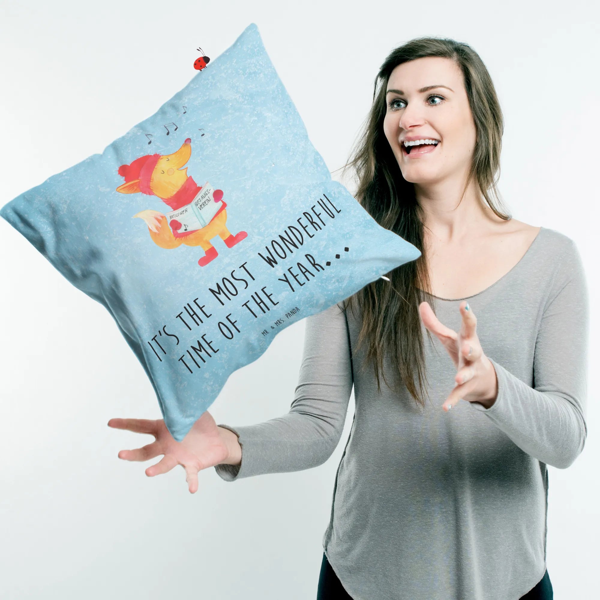 40x40 poduszka lis Śpiewak - z napisem - lodowoniebieski