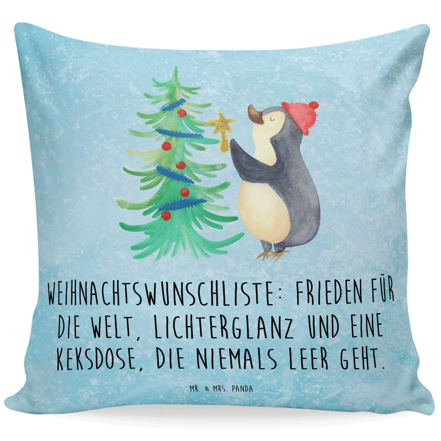 40x40 poduszka Pingwin choinka - z napisem - lodowoniebieski