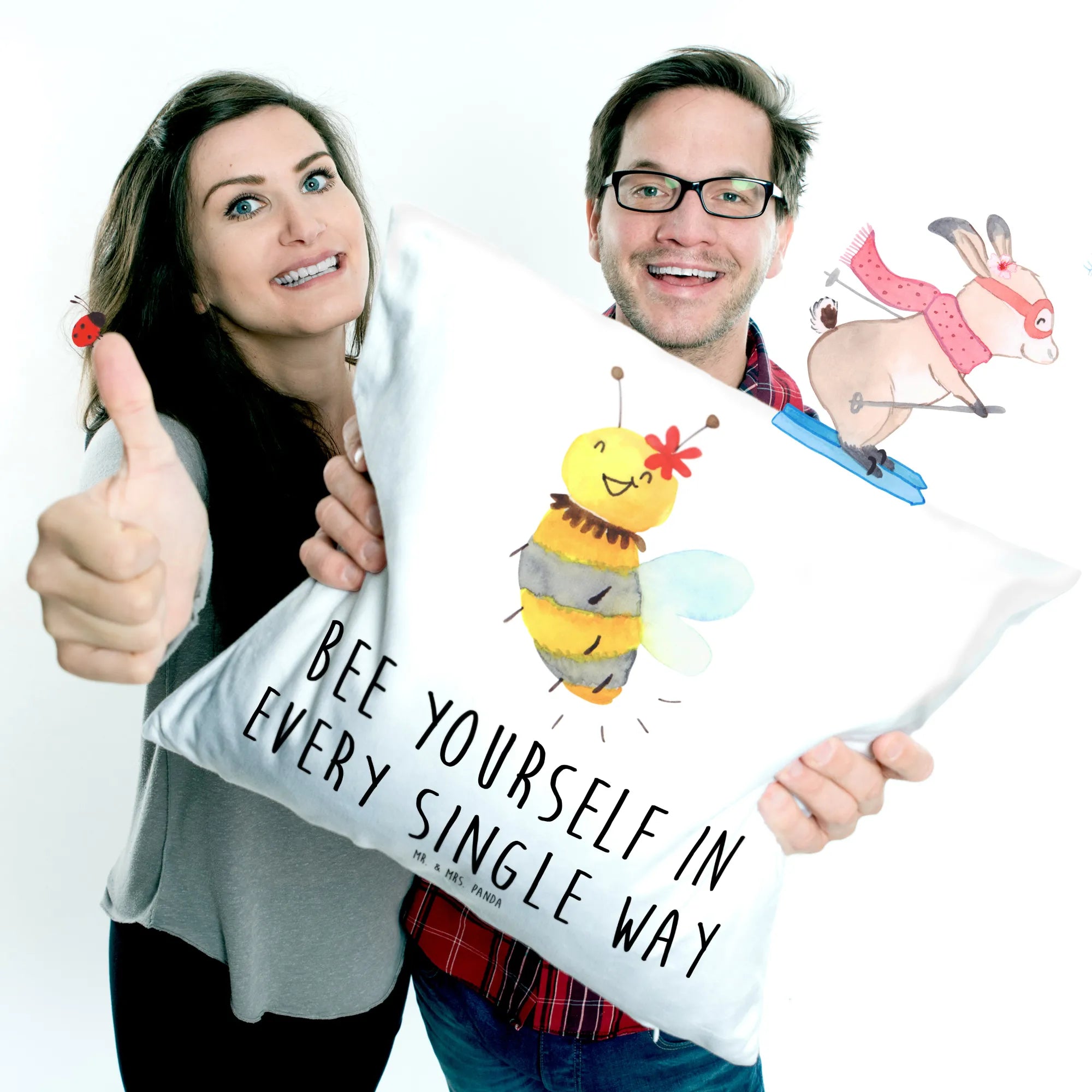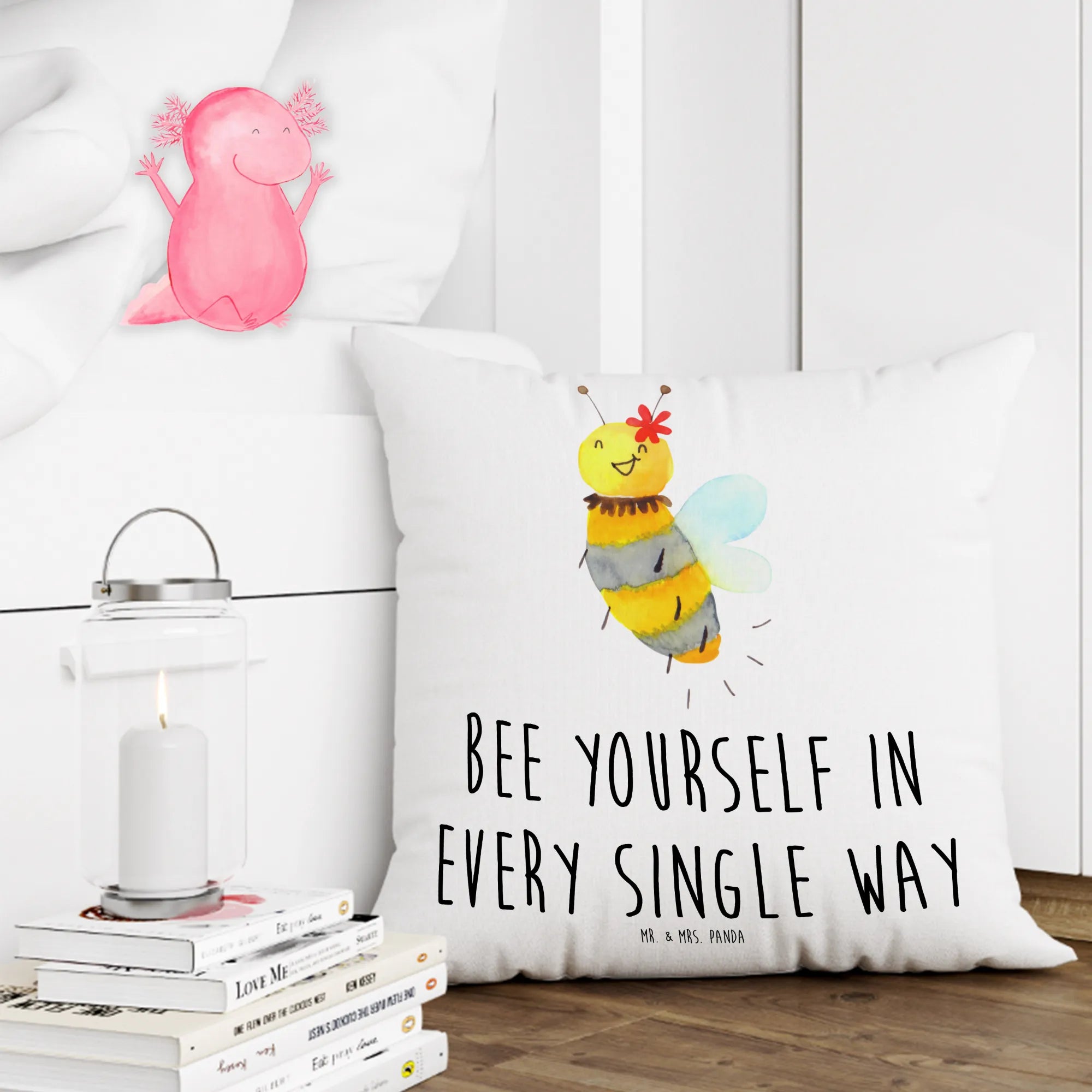 40x40 poduszka pszczoła kwiat - z napisem - Pastelowy żółty