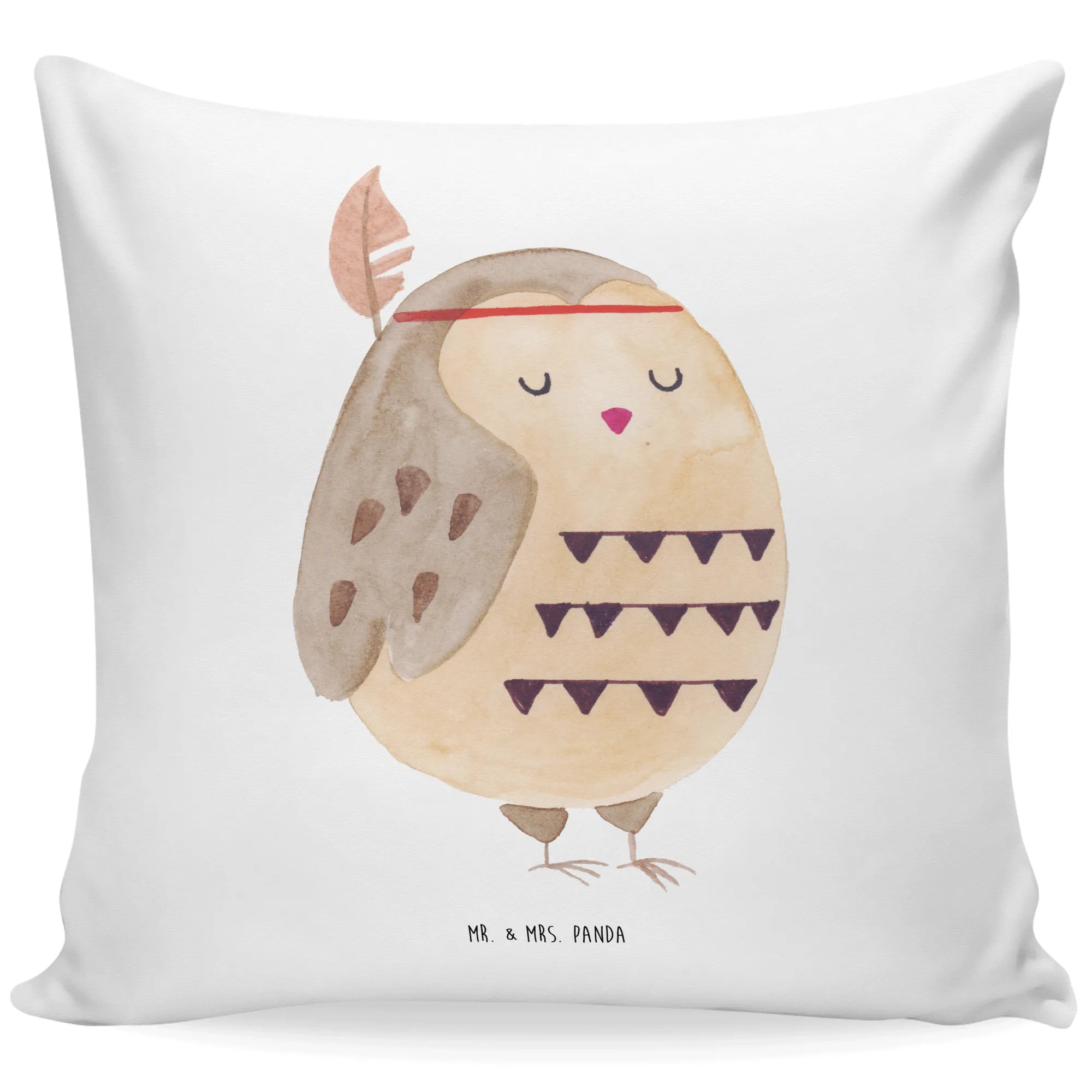 40x40 poduszka sowa Ozdoba z piór - z napisem - pastelowy turkus