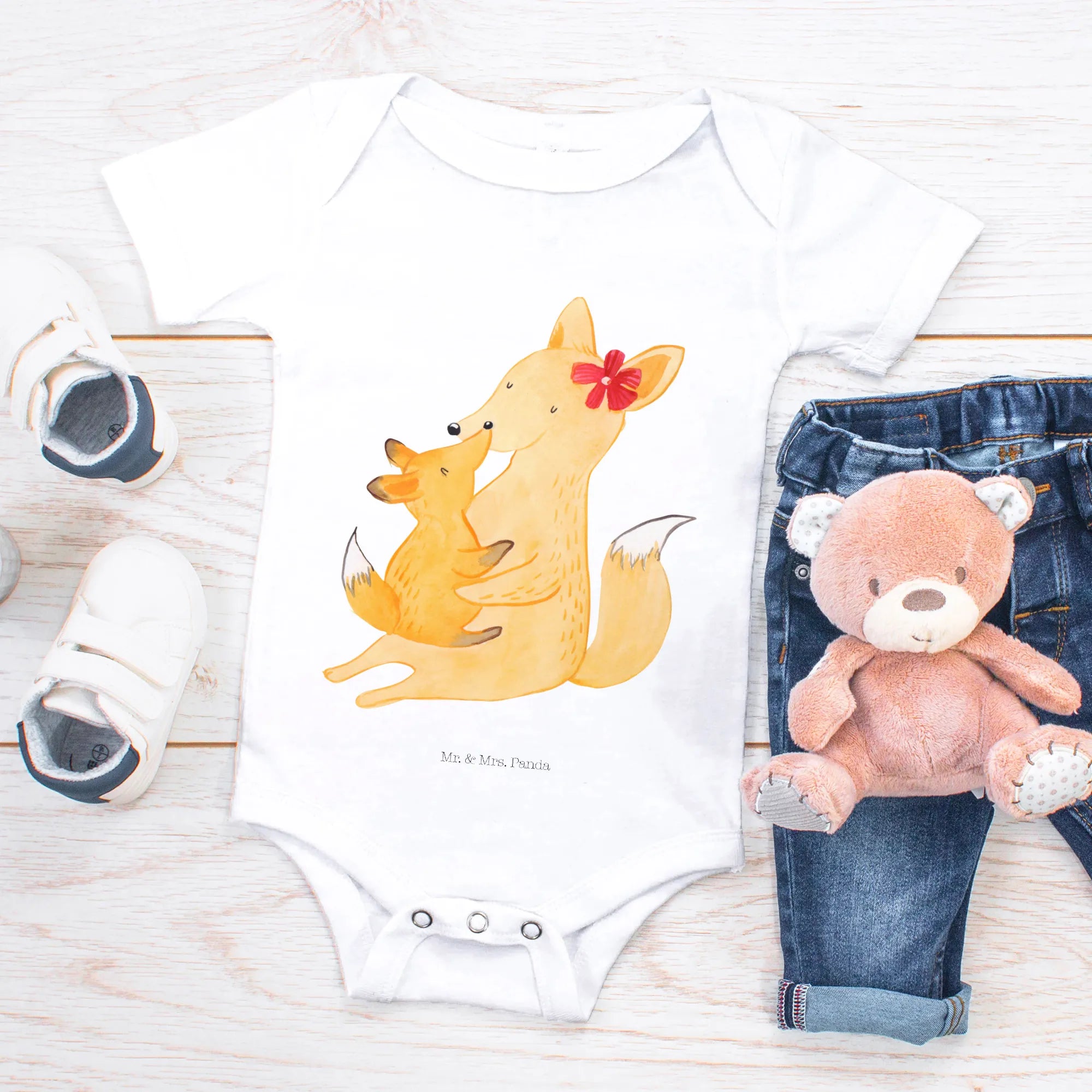 Organiczne body dla niemowląt Lis Mama - 1. - 3. Monat - z napisem