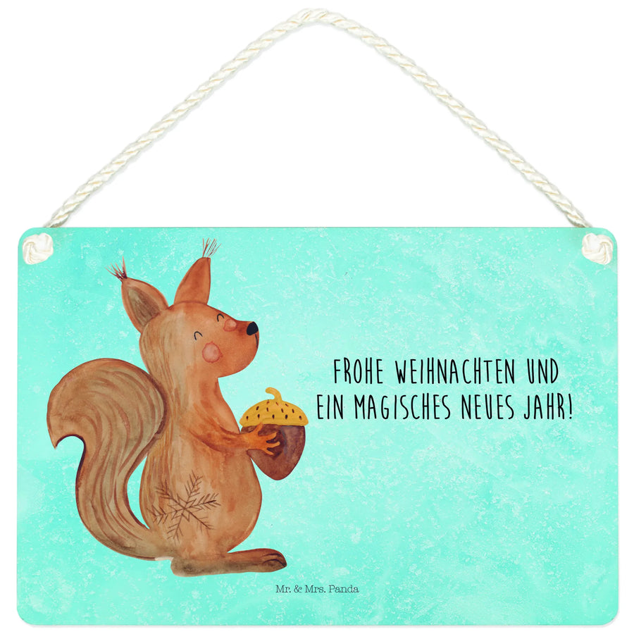Dekoracyjny znak wiewiórka Boże Narodzenie - z napisem - lodowoniebieski
