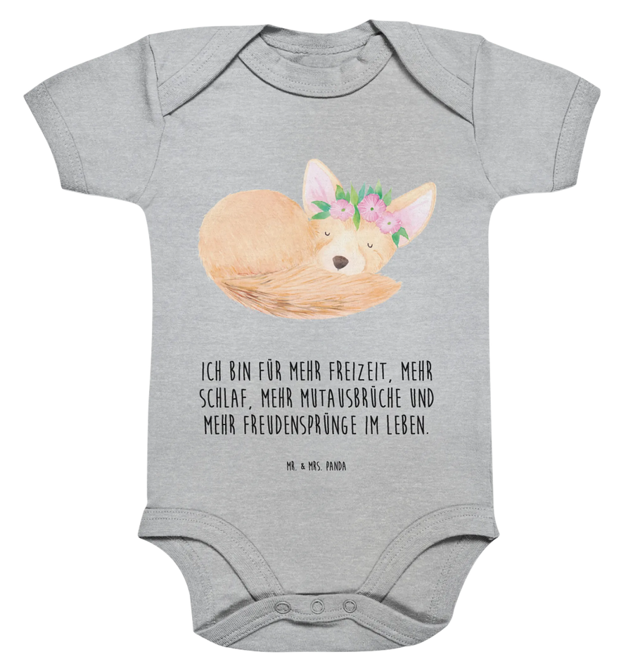 Organiczne body dla niemowląt lis pustynny kwiaty - 1. - 3. miesiąc - z napisem