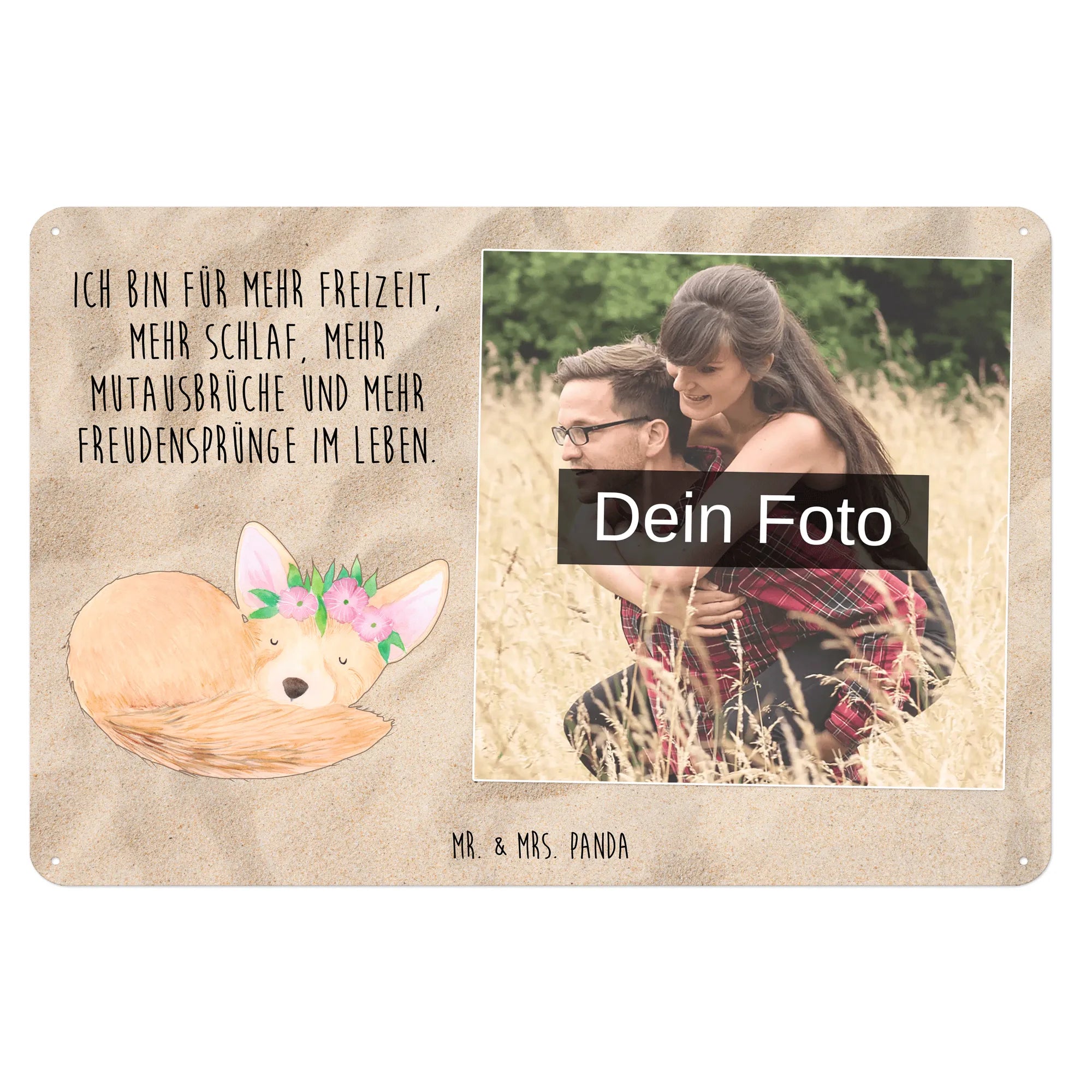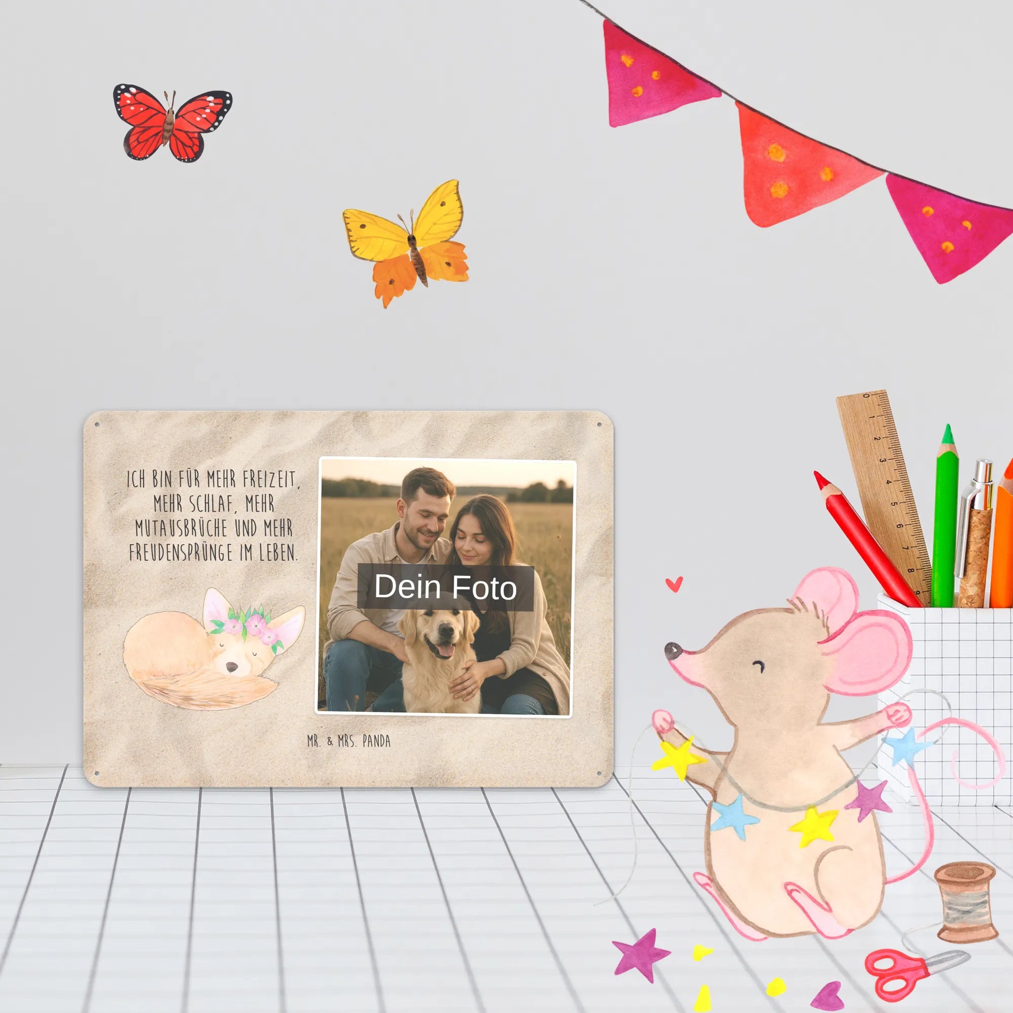 Spersonalizowany metalowy szyld ze zdjęciem lis pustynny kwiaty - DIN A6
