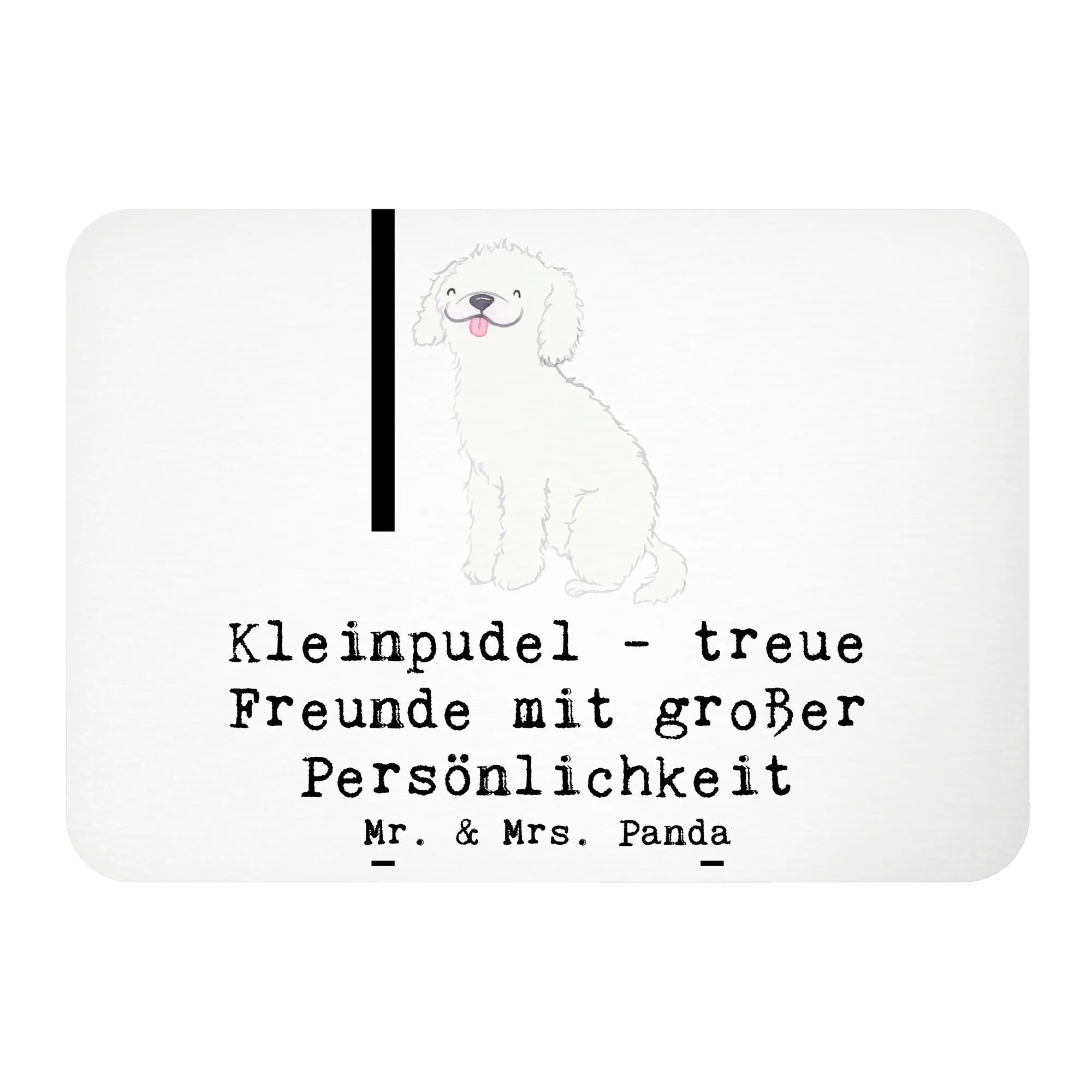 Das süße Motiv des Kleinpudels, liebevoll von Mrs. Panda handgezeichnet, kombiniert mit dem fröhlichen Spruch „Kleinpudel - treue Freunde mit großer Persönlichkeit“, sorgt dafür, dass jeder Blick auf diesen Magneten ein Lächeln hervorruft.