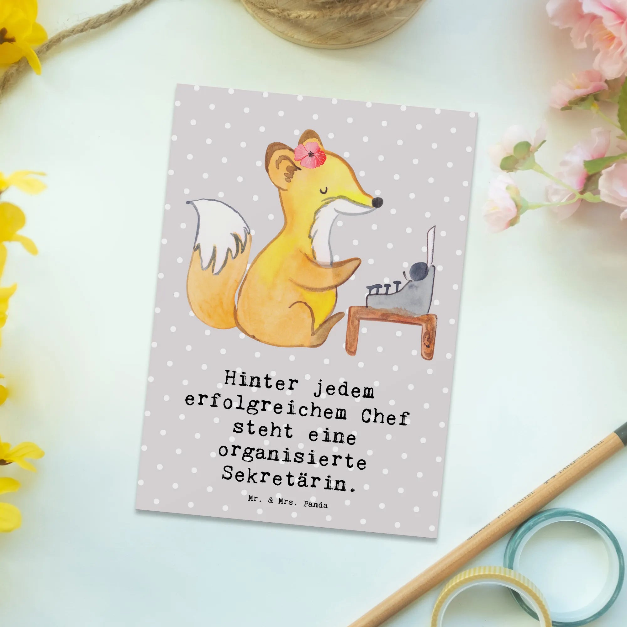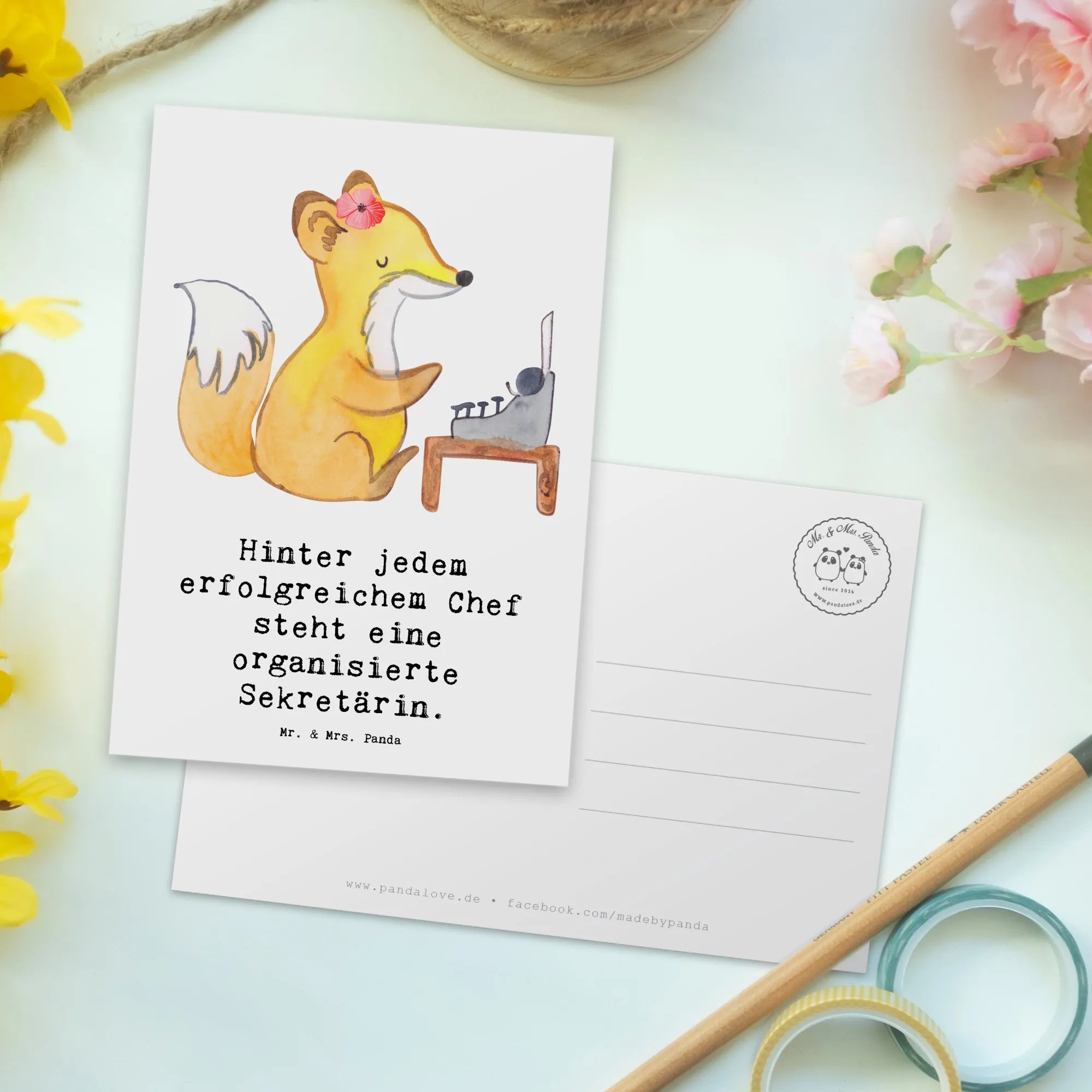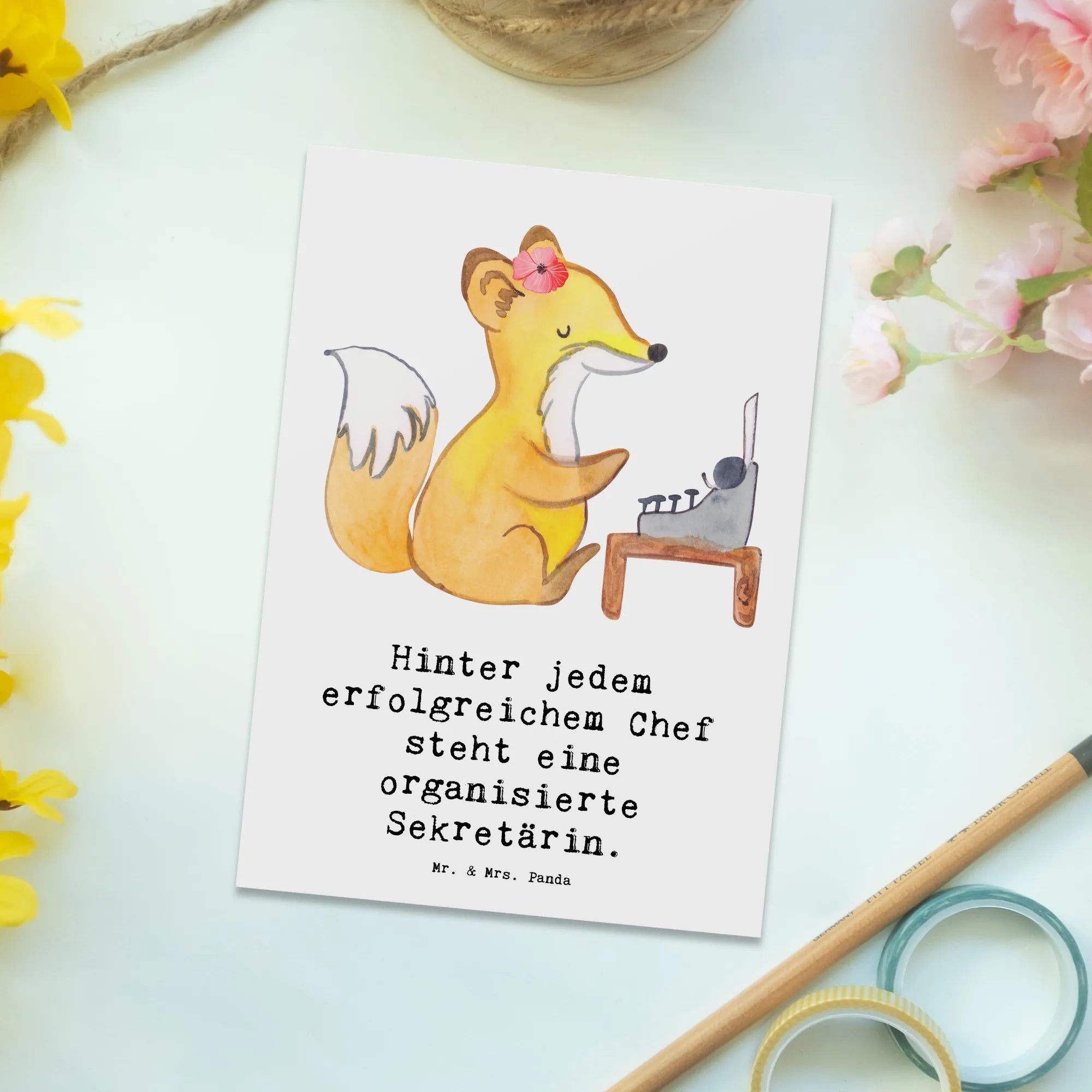 Die Postkarte "Sekretärin" aus der charmanten Berufe Kollektion von Mr. & Mrs. Panda ist das perfekte Geschenk für all diejenigen, die die Organisatoren der Arbeitswelt feiern wollen. Diese einzigartige Postkarte ist mit dem liebevollen Spruch "Hinter jedem erfolgreichem Chef steht eine organisierte Sekretärin" verziert. Der witzige Slogan zieht die Aufmerksamkeit auf sich und vermittelt eine besondere Wertschätzung für die oft übersehenen Helden im Büroalltag.