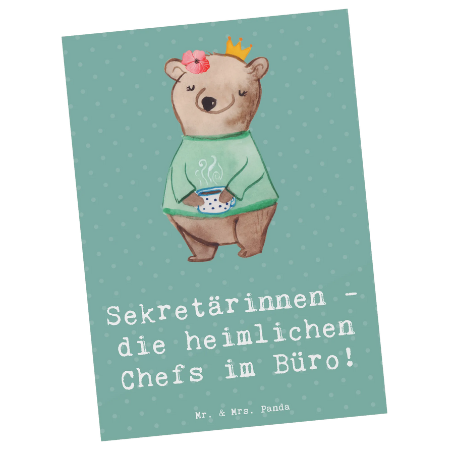 Diese Postkarte aus der Berufe-Kollektion von Mr. & Mrs. Panda ist ein kleines Dankeschön mit großem Charme. Mit dem frechen Spruch „Sekretärinnen - die heimlichen Chefs im Büro!“ und einem handgezeichneten Aquarellmotiv von Mrs. Panda bringt sie genau das zum Ausdruck, was viele im Büro denken: Diese Menschen halten den Laden zusammen!