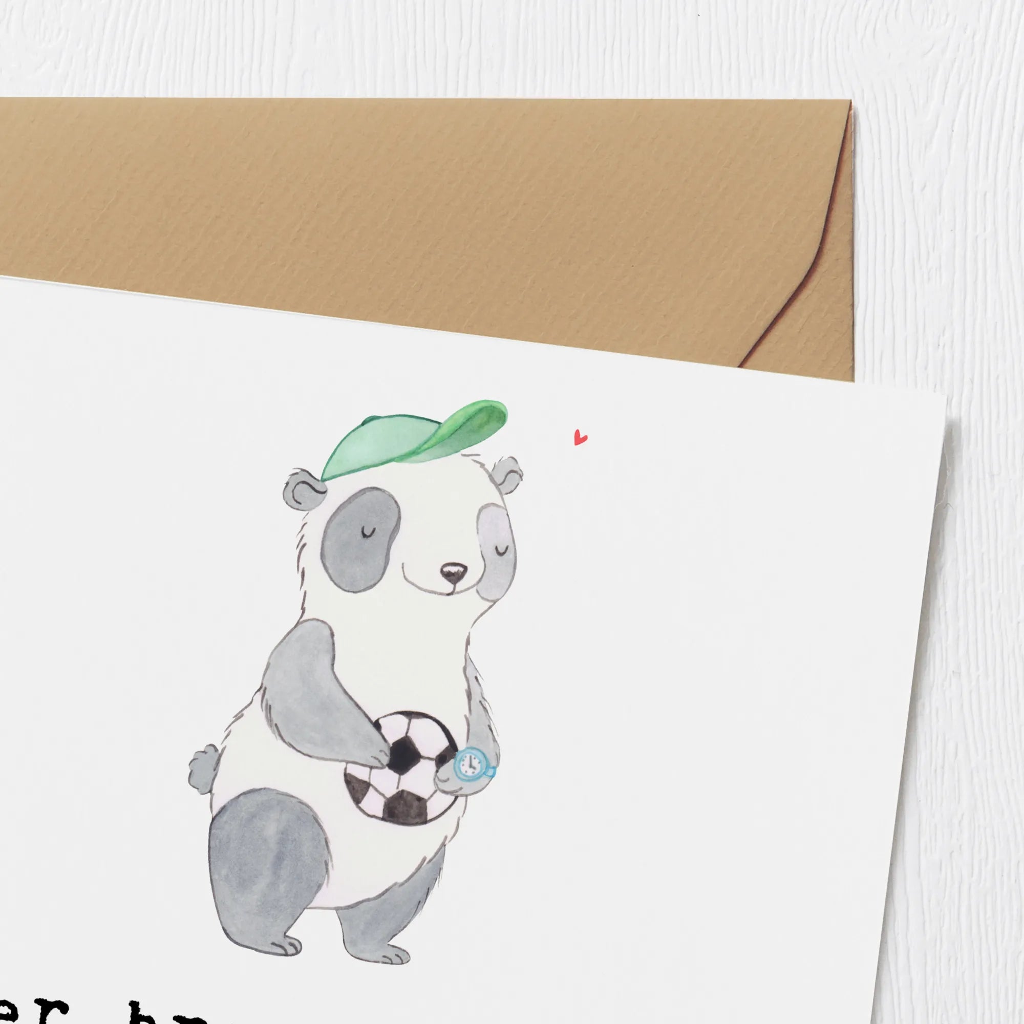 Die Deluxe Karte mit dem Motiv "Fußballtrainer" aus der Kollektion "Berufe" von Mr. & Mrs. Panda ist das perfekte Geschenk für jeden Fußballbegeisterten! Wenn du nach einer kreativen Möglichkeit suchst, um einem Trainer zu danken oder ihm zur nächsten Herausforderung viel Erfolg zu wünschen, dann ist diese hochwertige Klappkarte genau das Richtige.