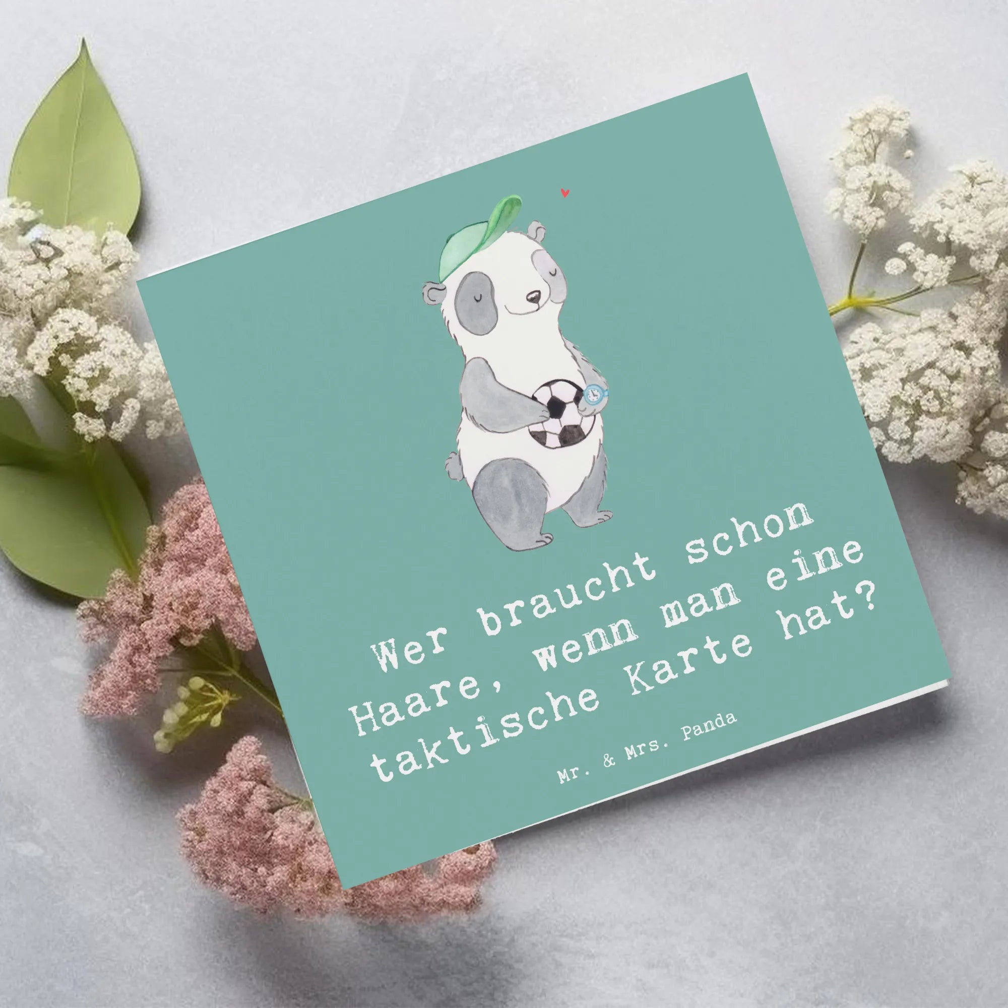 Die Deluxe Karte Fußballtrainer von Mr. & Mrs. Panda ist das perfekte Geschenk für Coaches, Trainer und Fußballenthusiasten! Diese wunderschöne, hochwertige quadratische Karte mit dem humorvollen Spruch 'Wer braucht schon Haare, wenn man eine taktische Karte hat?' bringt nicht nur ein Lächeln auf die Gesichter, sondern ist auch ein toller Begleiter für jede Gelegenheit.