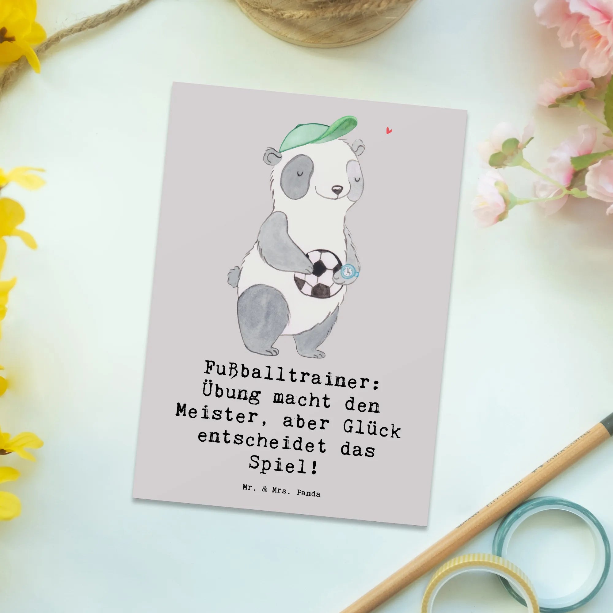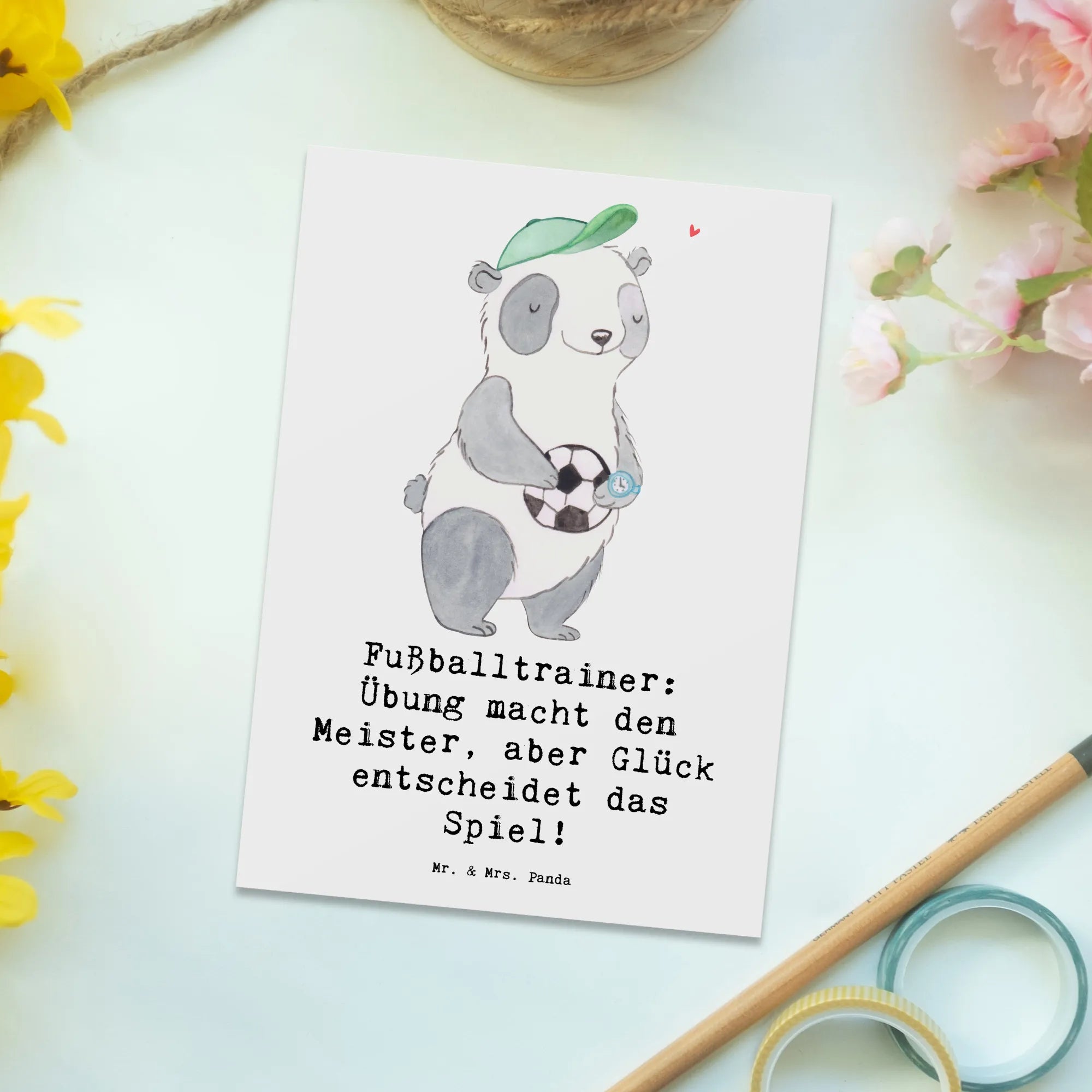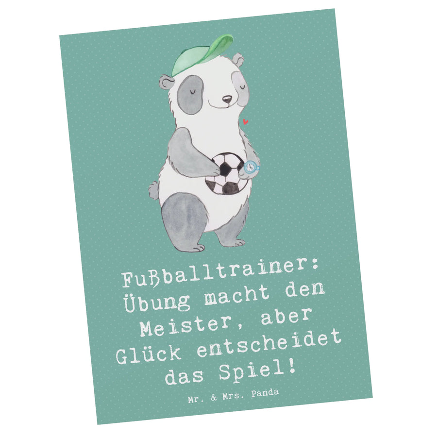 Entdecke die bezaubernde Postkarte für alle Fußballtrainer! Mit dem liebevollen Motiv 'Fußballtrainer: Übung macht den Meister, aber Glück entscheidet das Spiel!' aus der einzigartigen Berufe Kollektion von Mr. & Mrs. Panda ist diese Karte das perfekte Geschenk, um Wertschätzung und Dankbarkeit zu zeigen. Ob zum Geburtstag, zur Berufsjubiläumsfeier oder einfach als kleine Aufmerksamkeit – mit dieser Karte machst Du jedem Fußballtrainer eine große Freude.