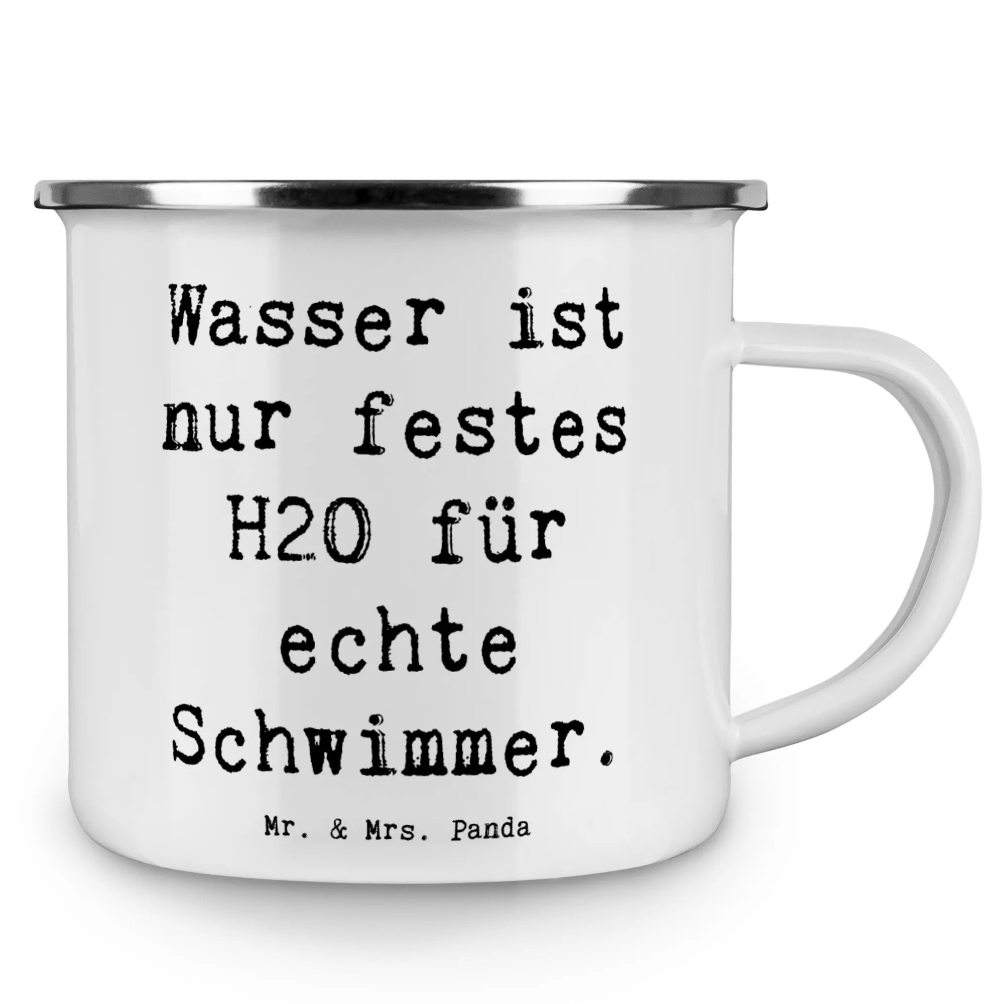 Die Camping Emaille Tasse mit dem liebevollen Motiv 'Schwimmen' von Mr. & Mrs. Panda ist das perfekte Geschenk für alle Sportbegeisterten und Naturliebhaber. Diese Tasse begeistert durch ihr einzigartiges Design und einem tollen Spruch: 'Wasser ist nur festes H2O für echte Schwimmer.' Mit einem Fassungsvermögen von 300 ml ist sie ideal für heiße und kalte Getränke, egal ob beim Camping, Wandern oder beim entspannten Beisammensein am Lagerfeuer.